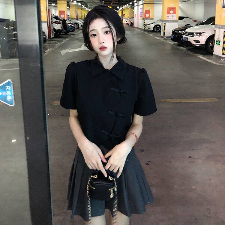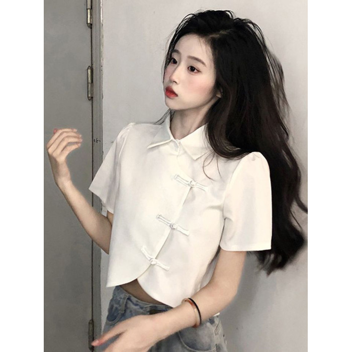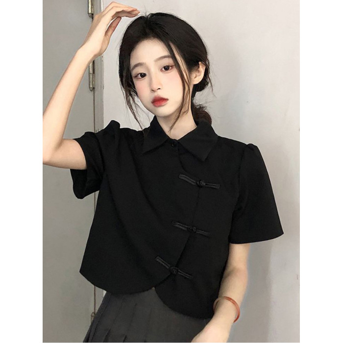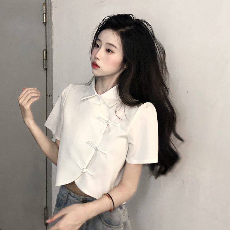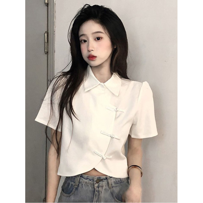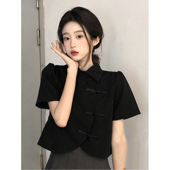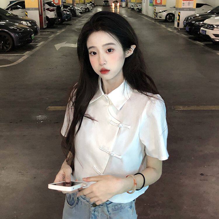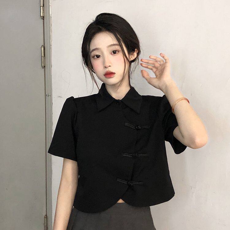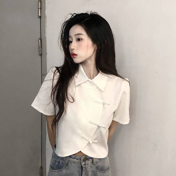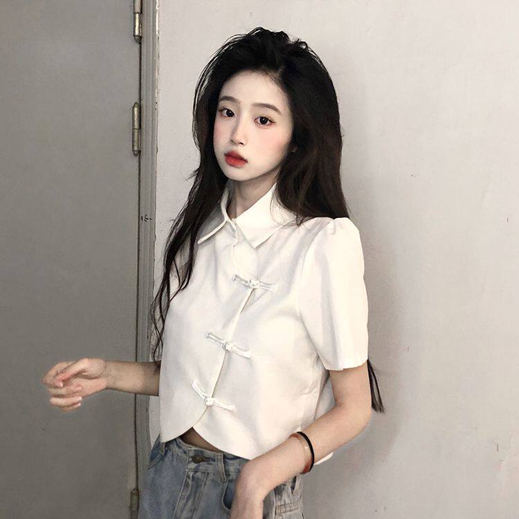 新中式改良版旗袍短款上衣夏季2025新款不規則法式短袖純色襯衫潮