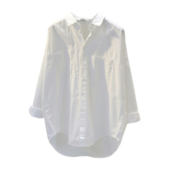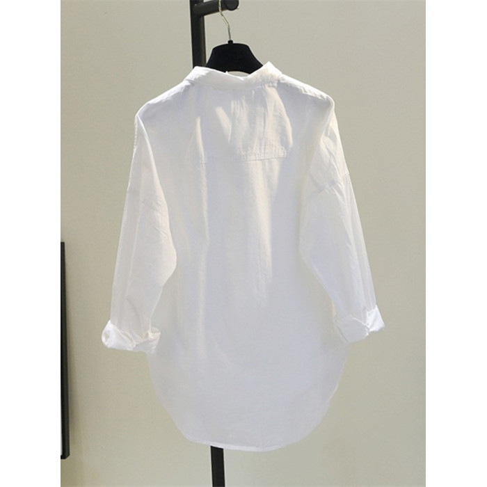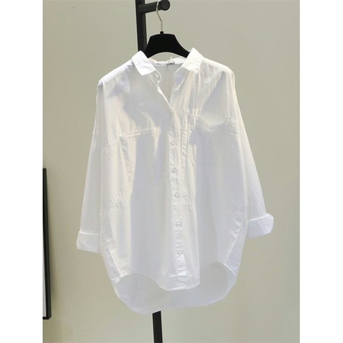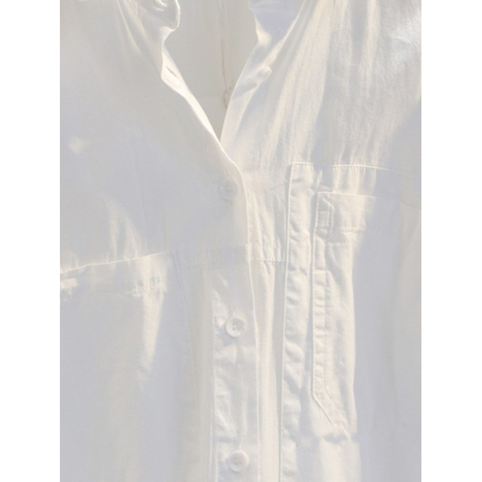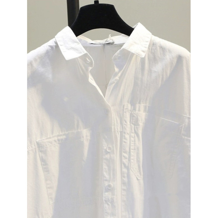 出口意大利原單撤櫃餘單2025白色純棉薄款襯衫女韓範上衣