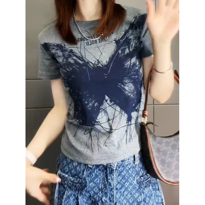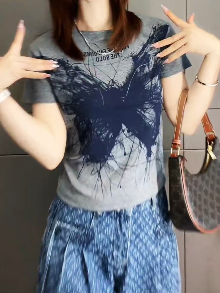 今年新款2026夏專櫃時尚防曬服女短袖印花蝴蝶寬鬆顯瘦上衣韓都