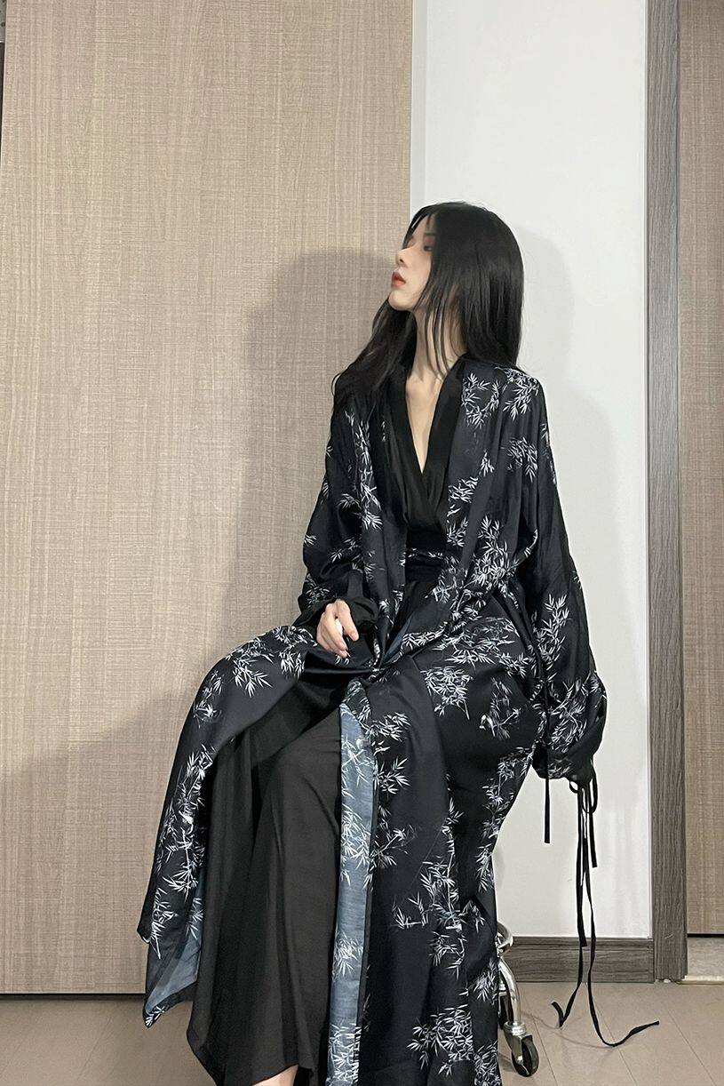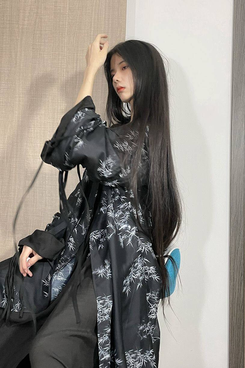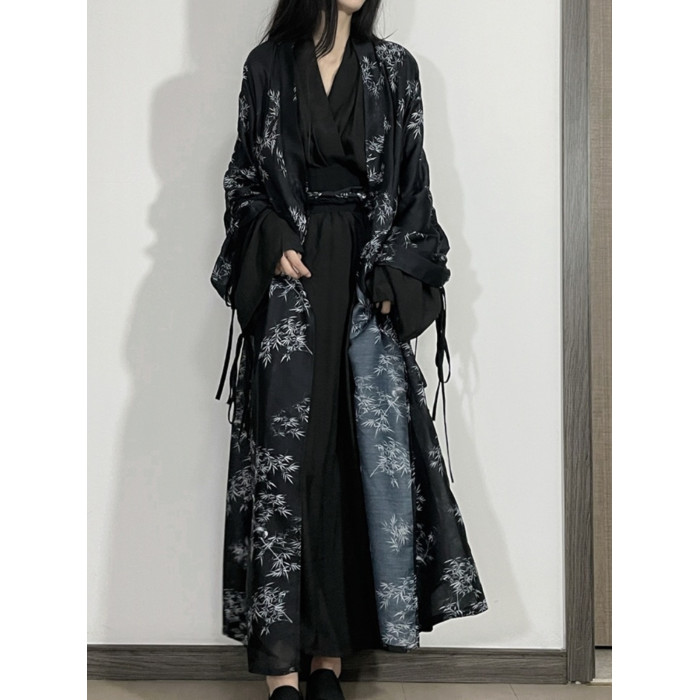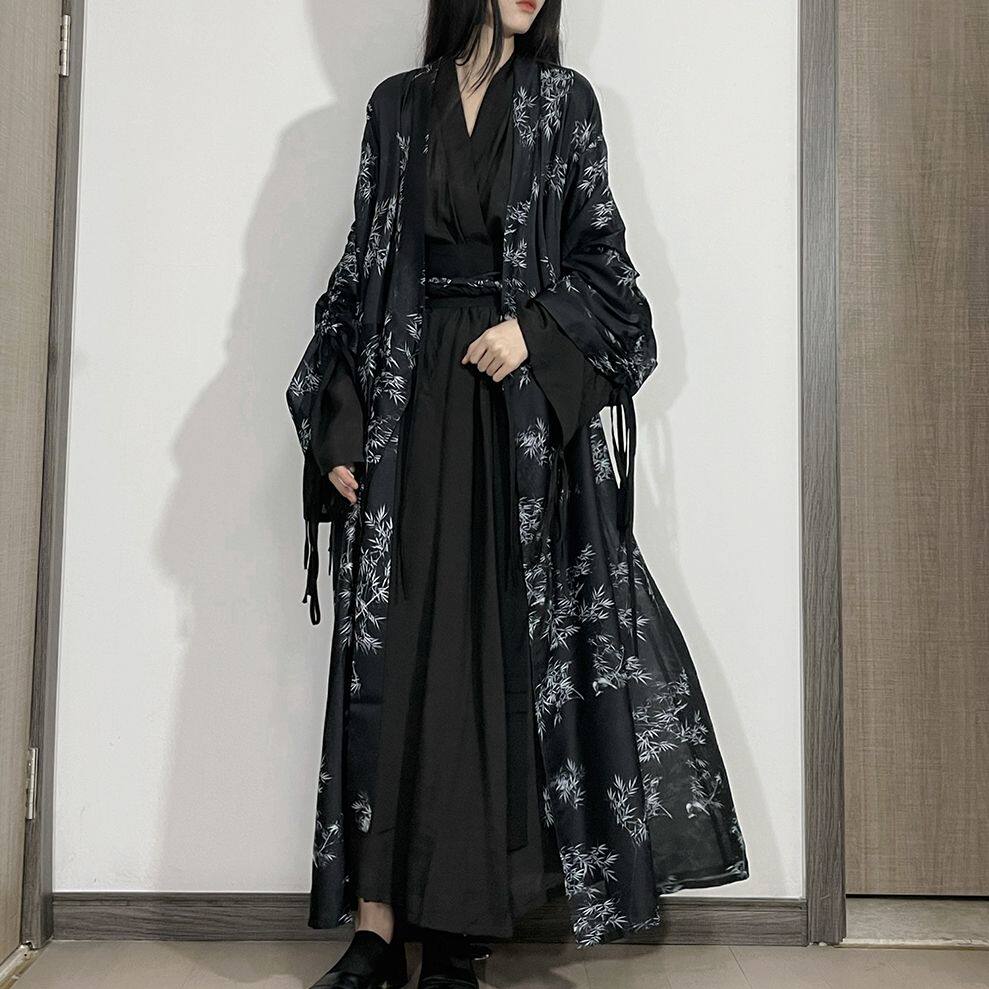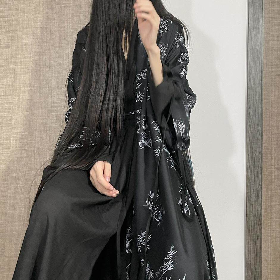 春秋款新中式套裝魏晉風漢服國風印花裙外套文藝外搭古風潑墨暗黑