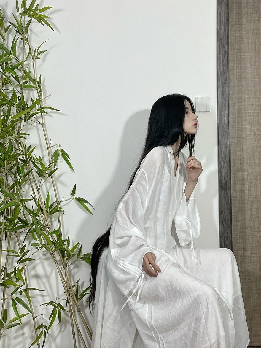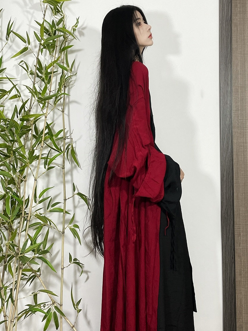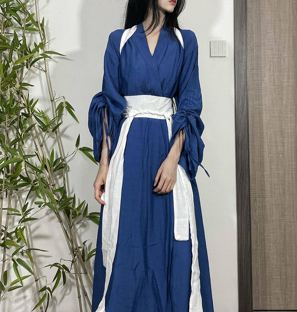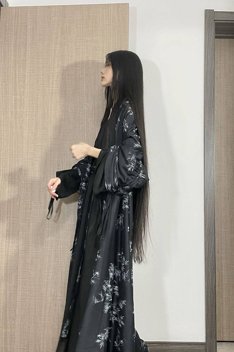 春秋款新中式套裝魏晉風漢服國風印花裙外套文藝外搭古風潑墨暗黑