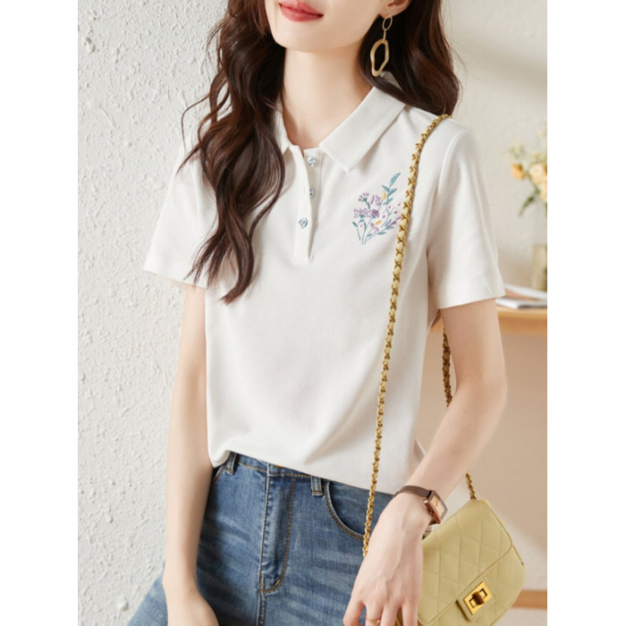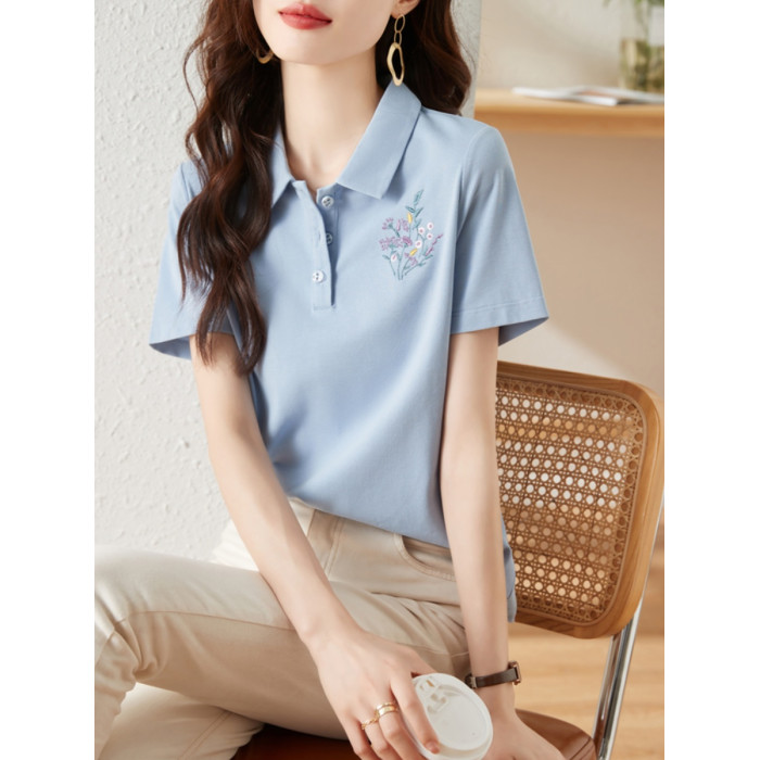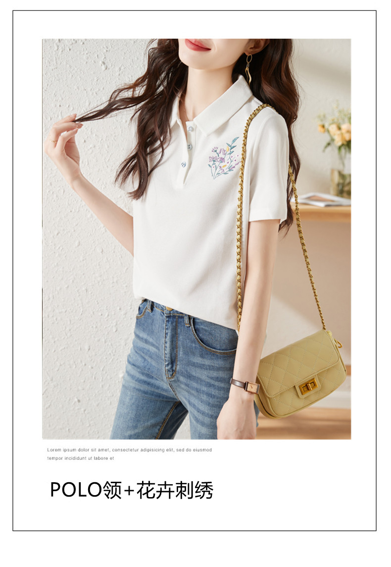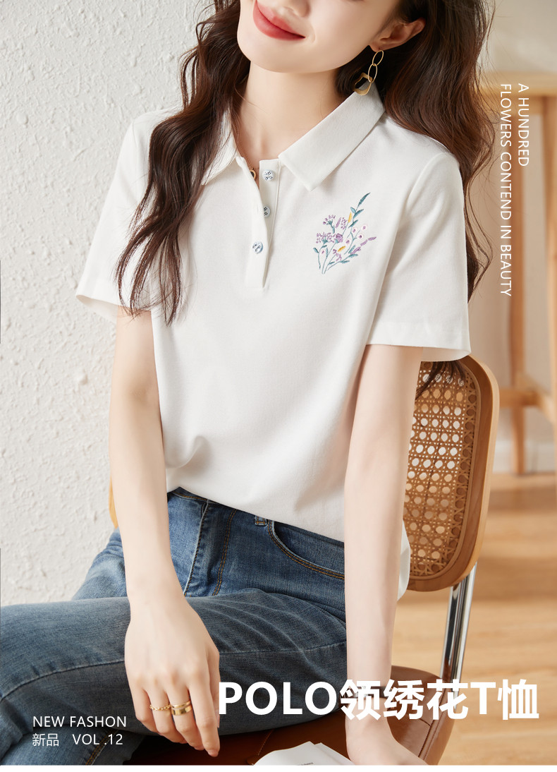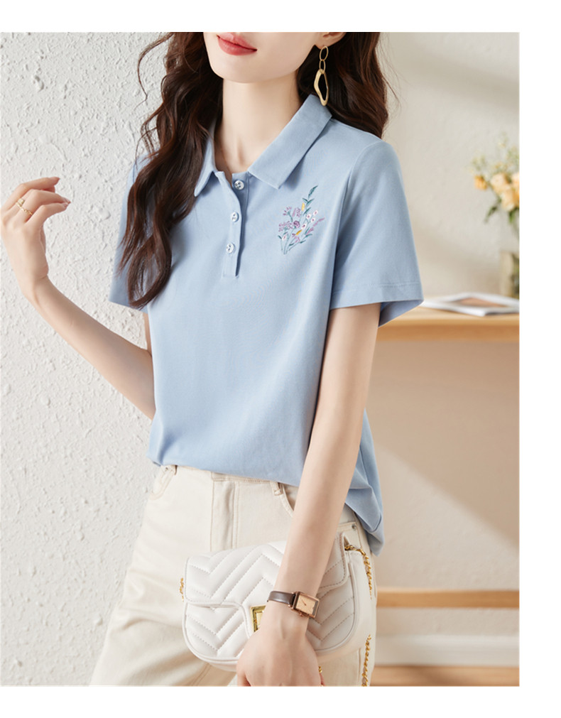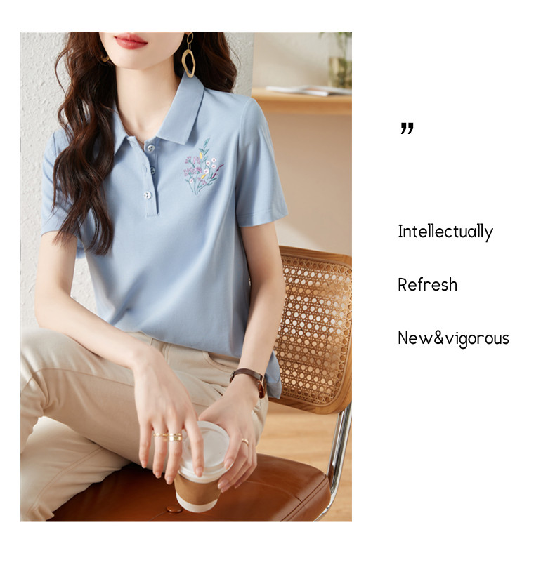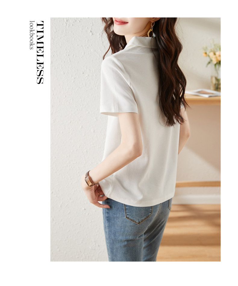 九月墨陌2025夏新款polo領短袖T恤女寬鬆顯瘦上衣設計感小衆體恤
