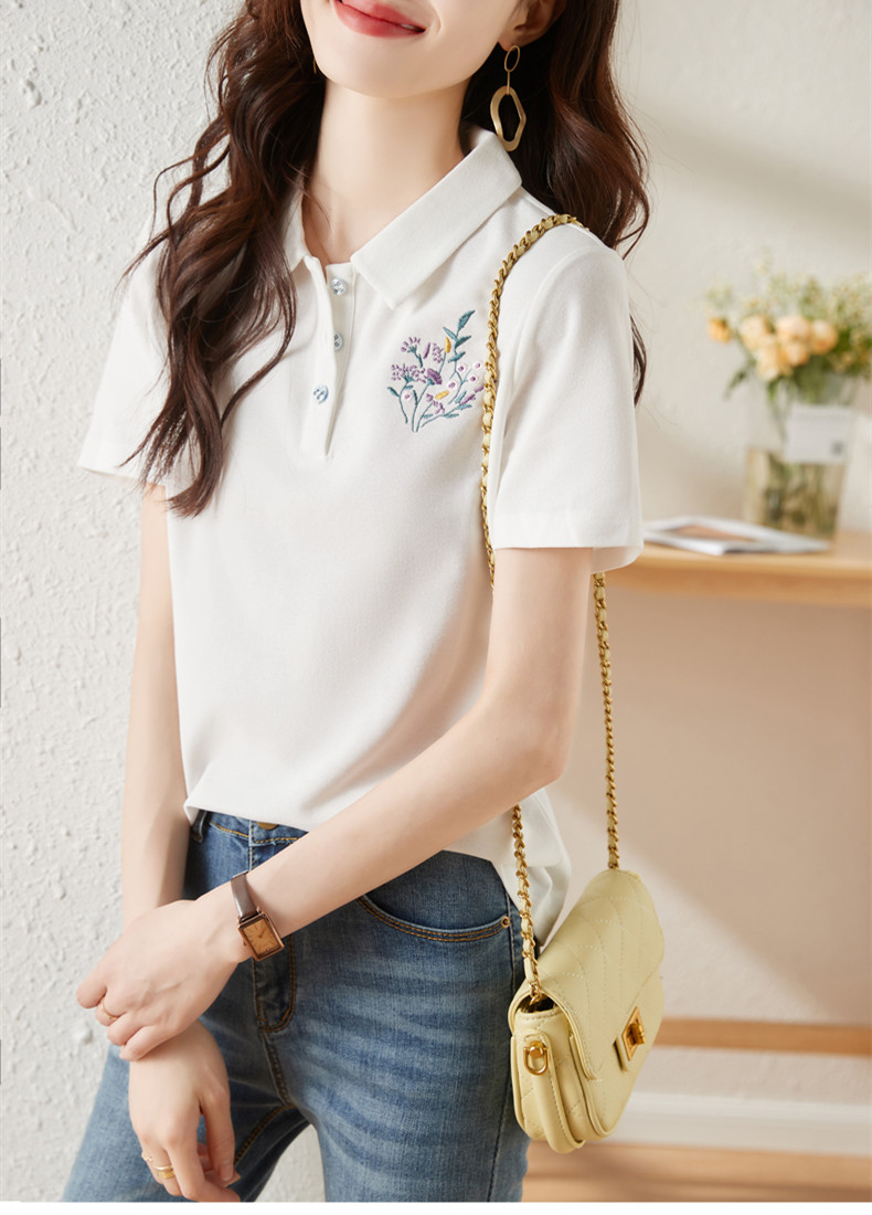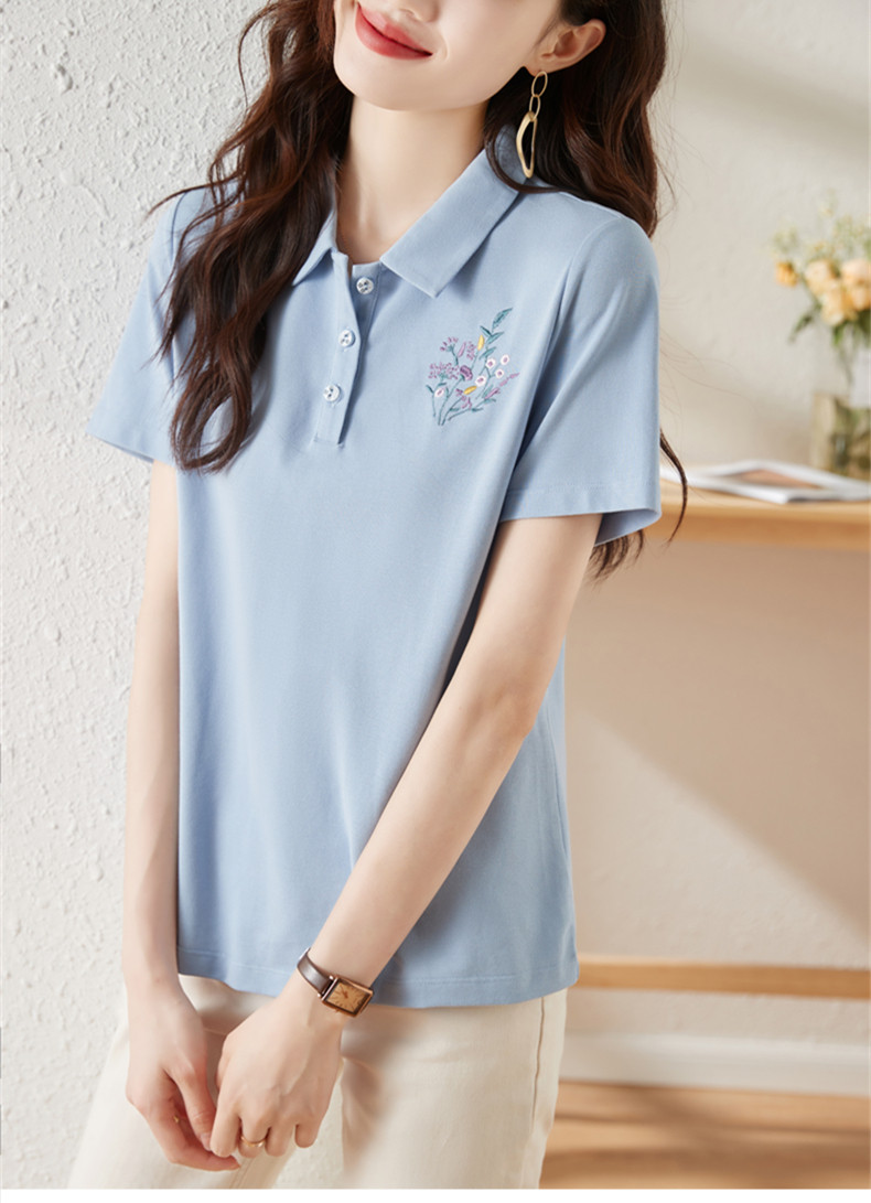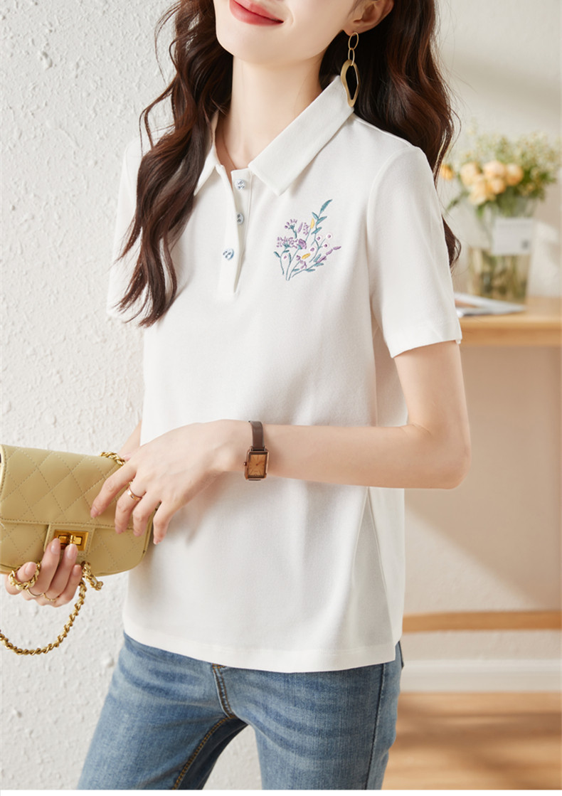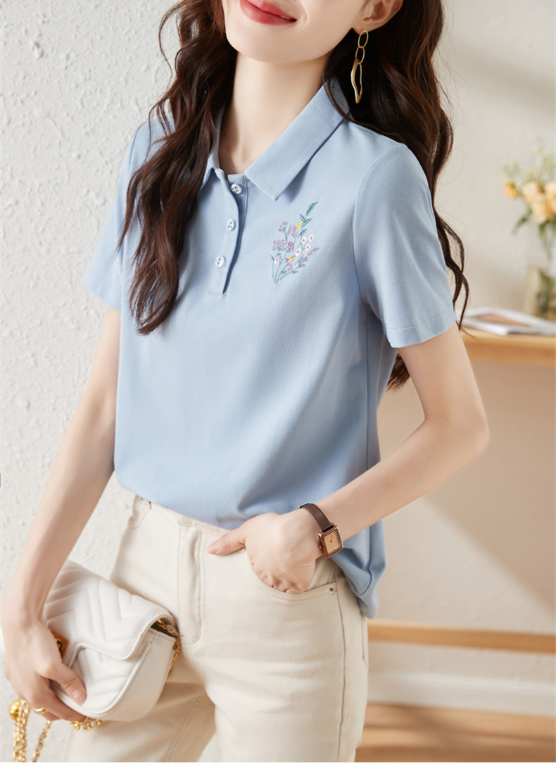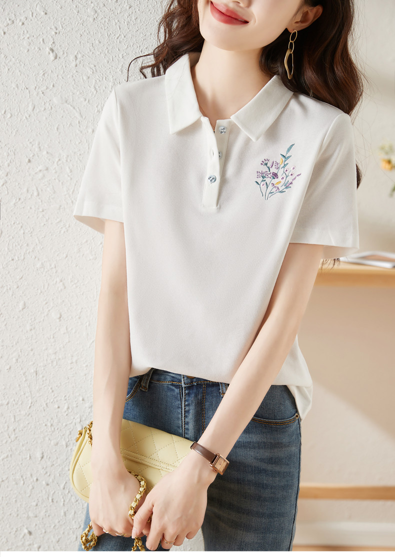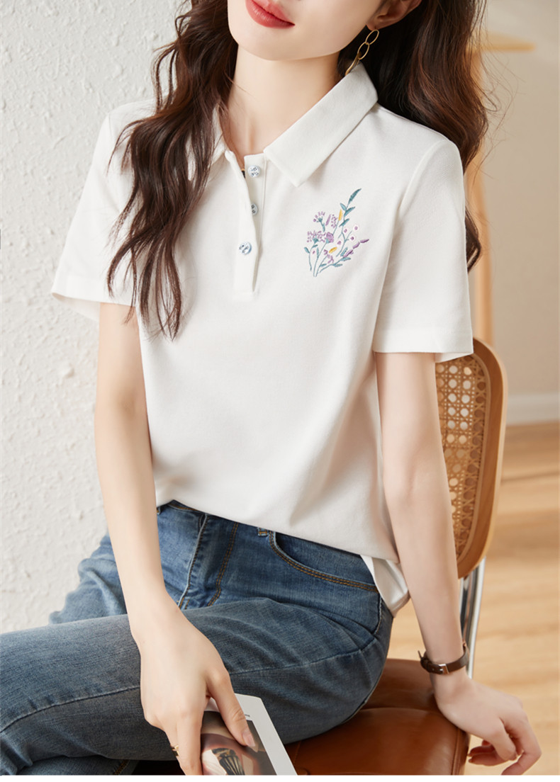 九月墨陌2025夏新款polo領短袖T恤女寬鬆顯瘦上衣設計感小衆體恤