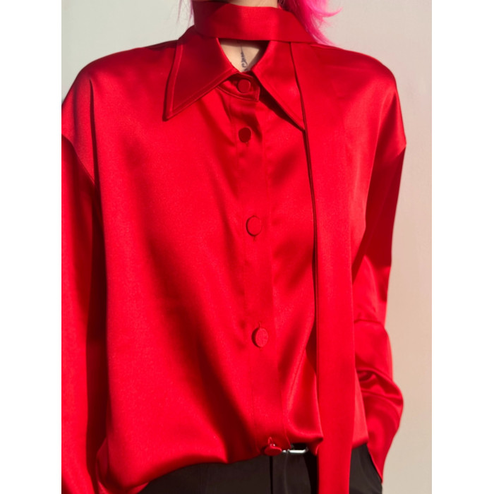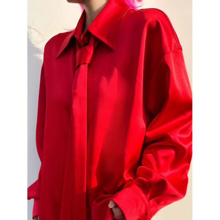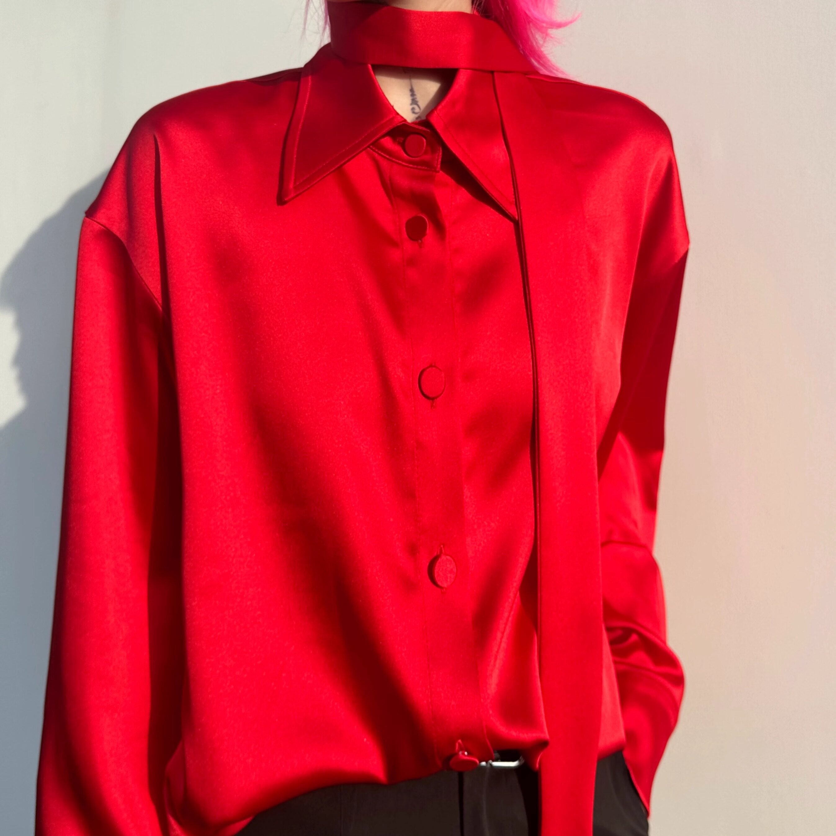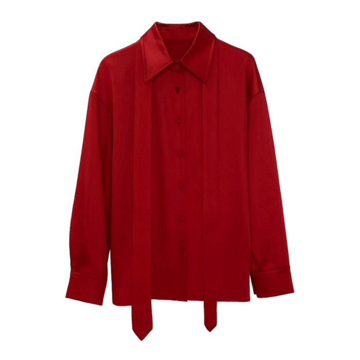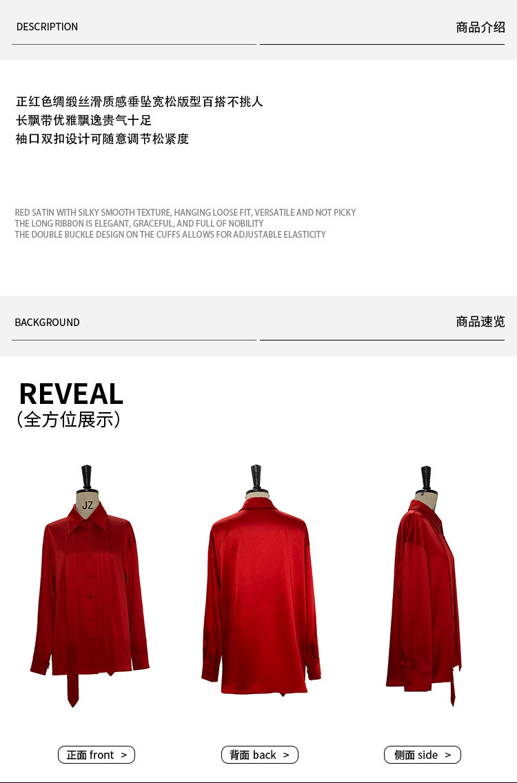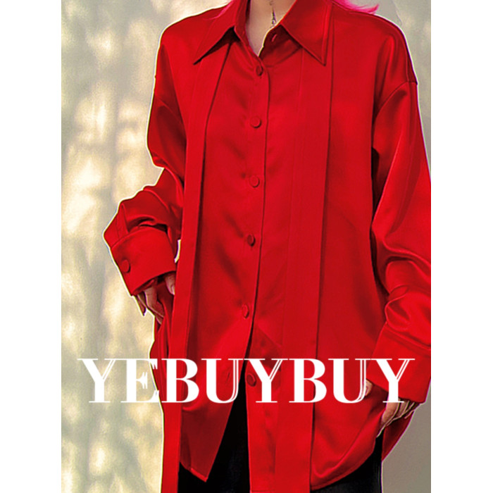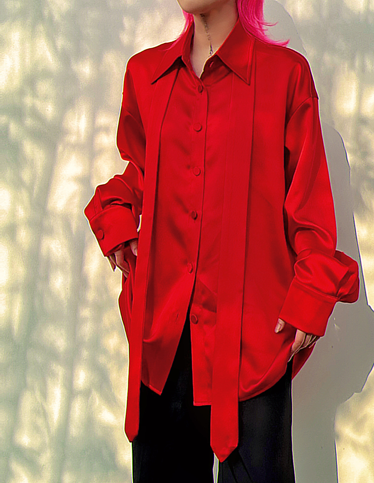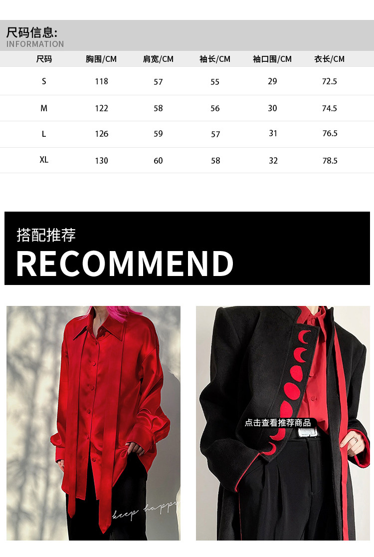 野白白春正紅色飄帶設計感痞帥襯衣霓虹狂歡本命年長袖襯衫韓版