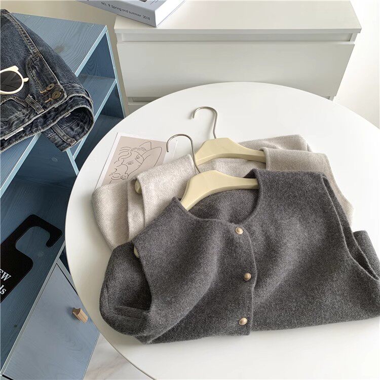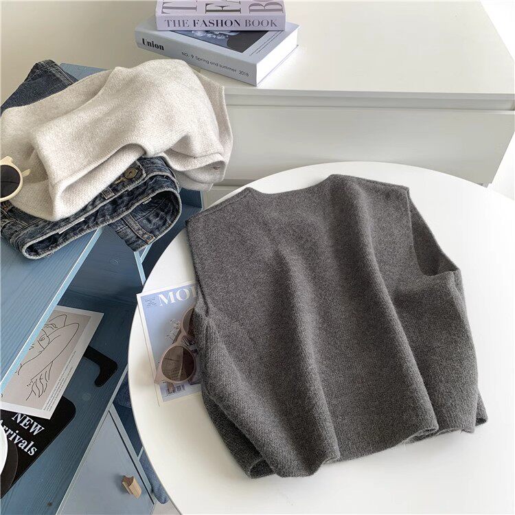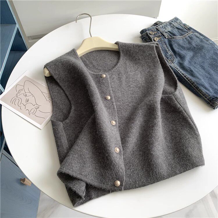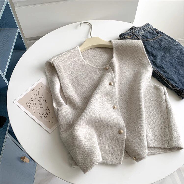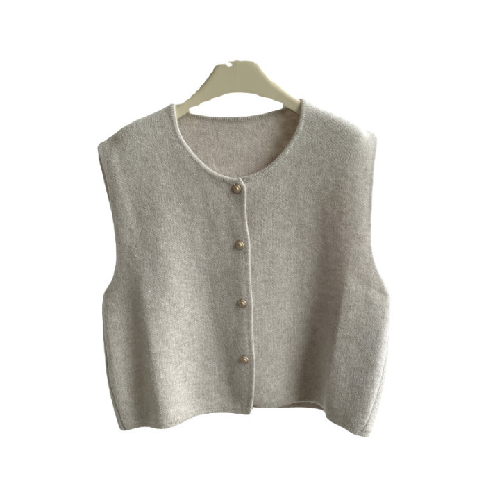 隨性溫柔系單排釦小金釦子圓領顯瘦針織馬甲背心女寬鬆坎肩上衣女
