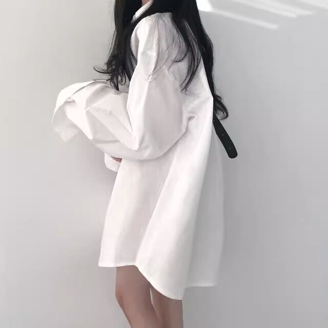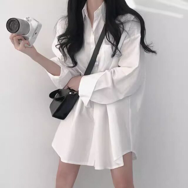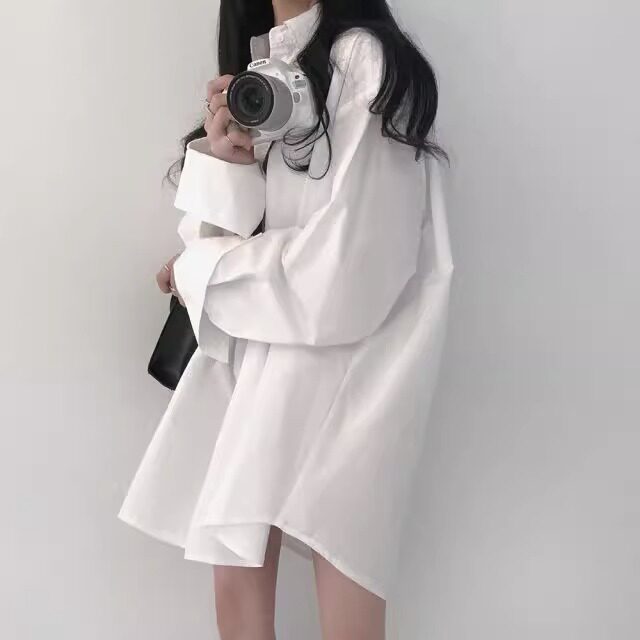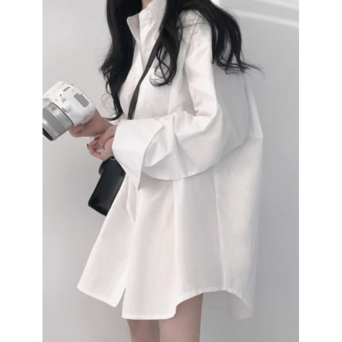加絨白色襯衫女設計感小衆寬鬆百搭加厚上衣中長款慵懶風襯衣外套
