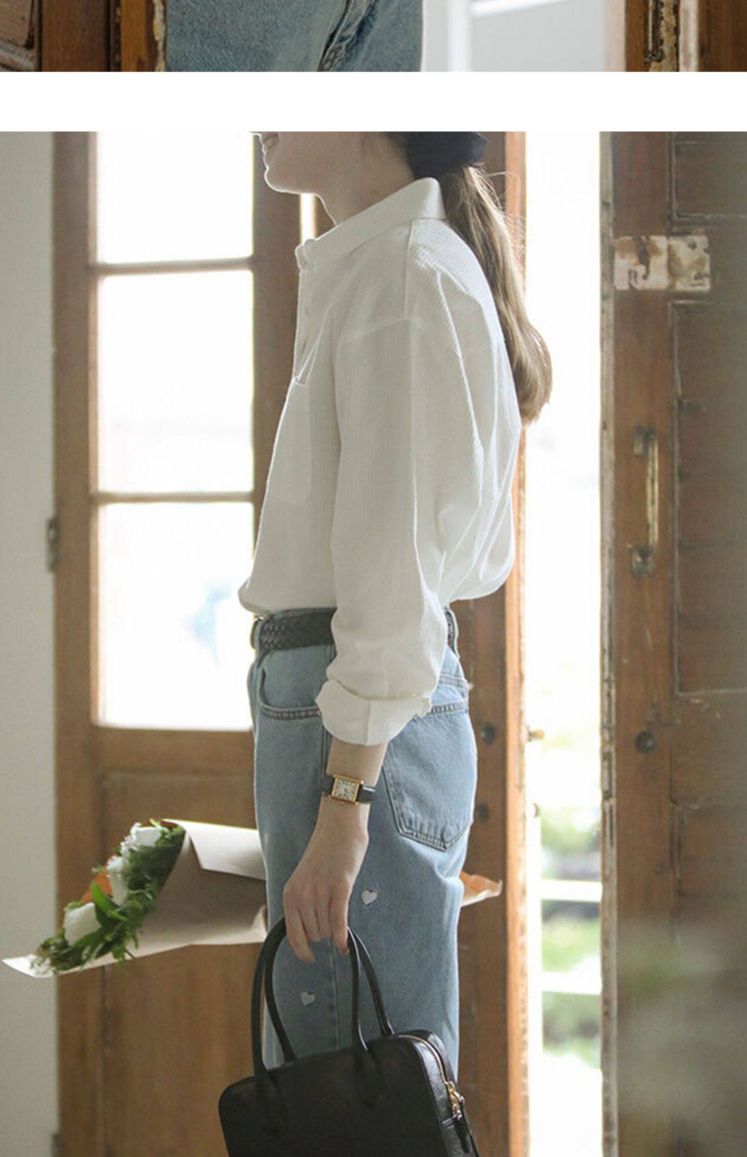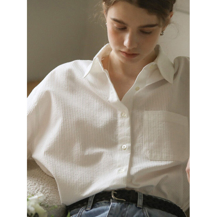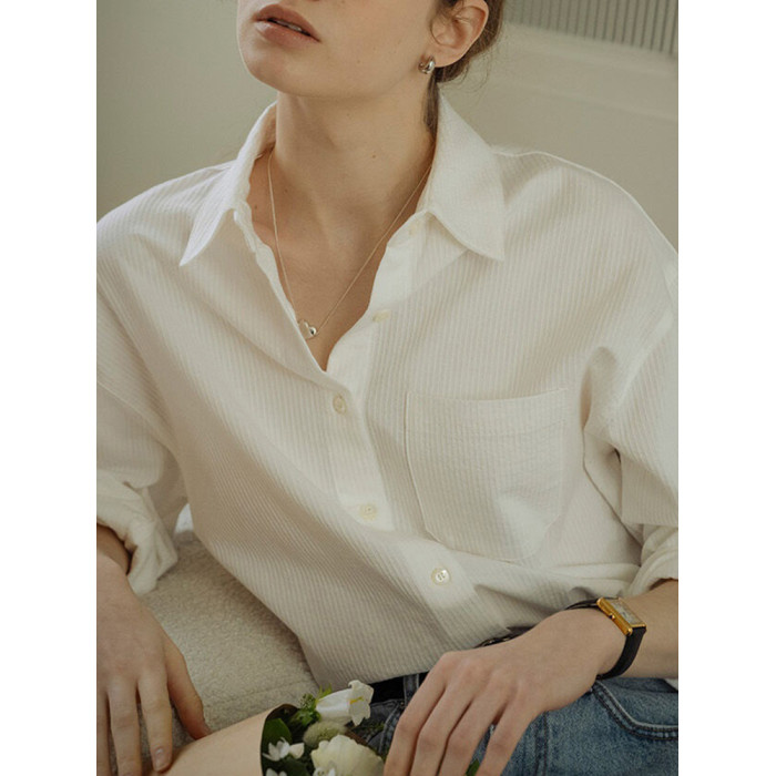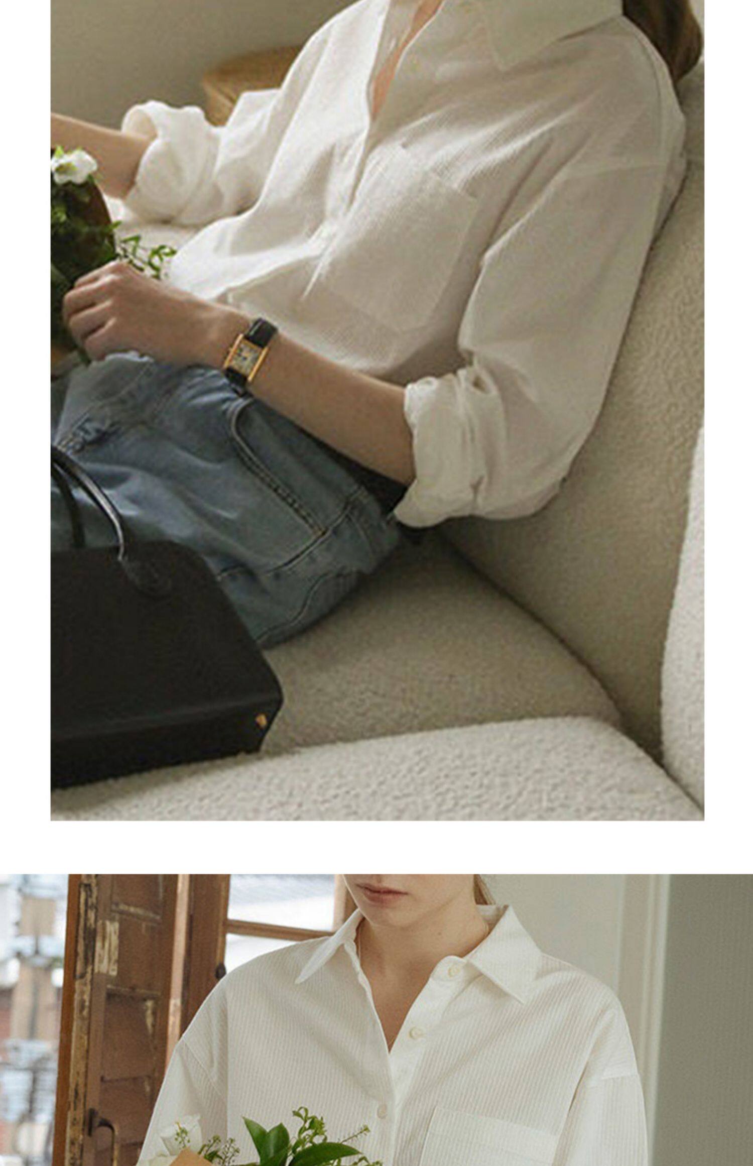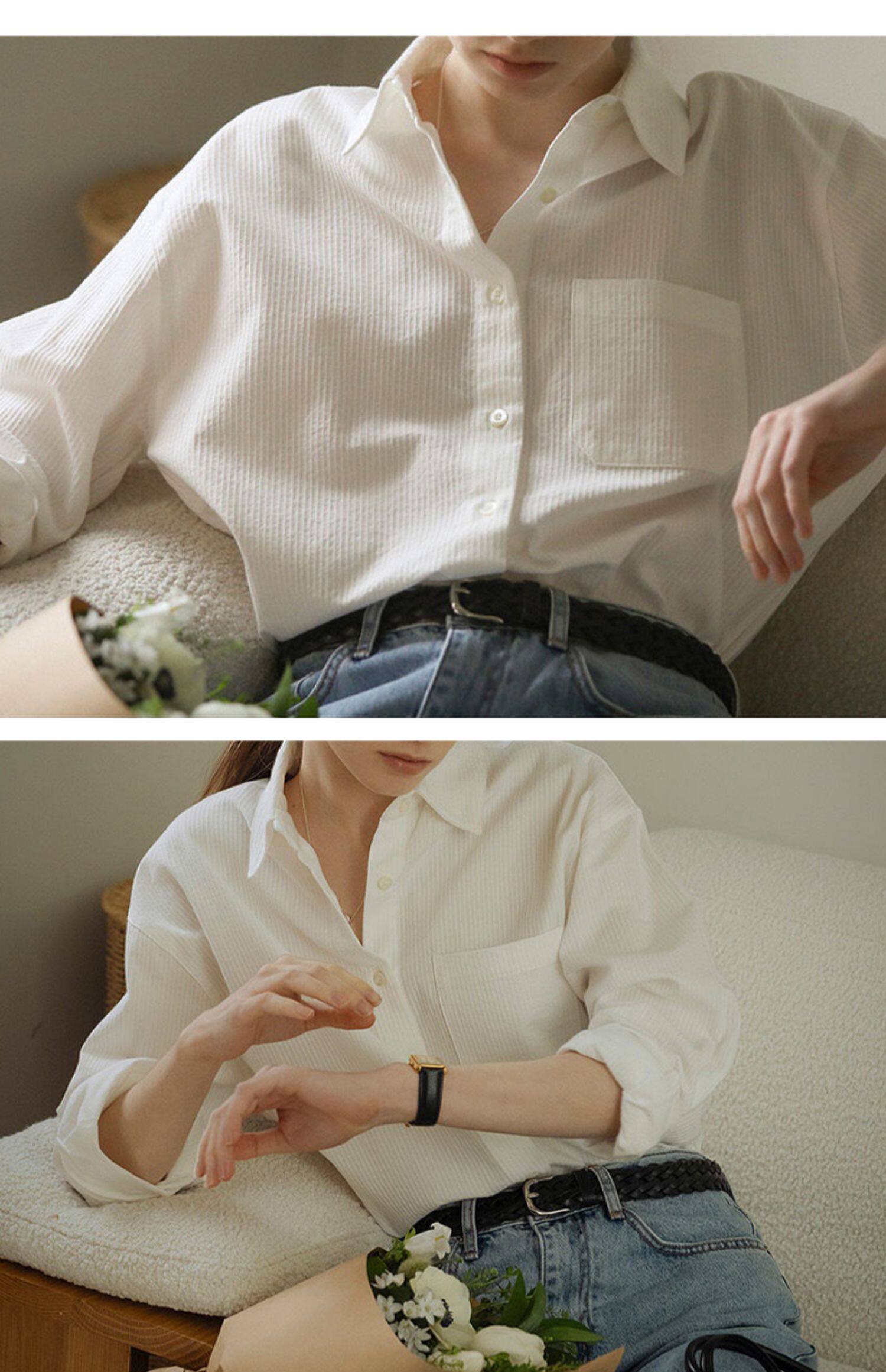 純棉白色襯衫女春秋法式上衣職業通勤白襯衣寬鬆柔軟開衫簡約百搭
