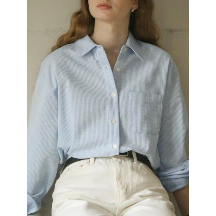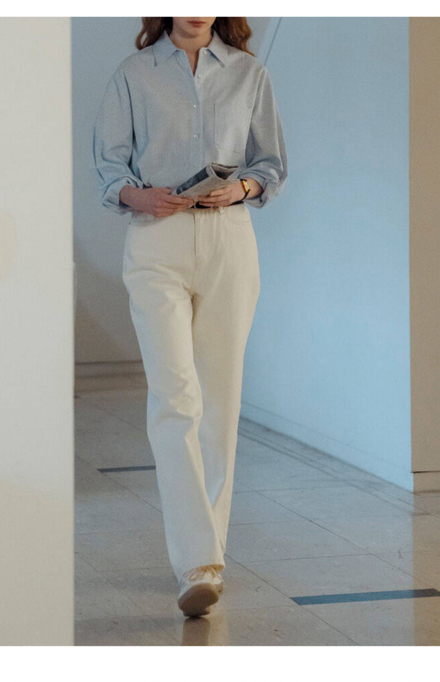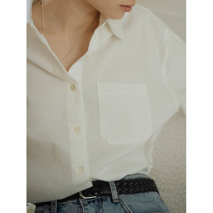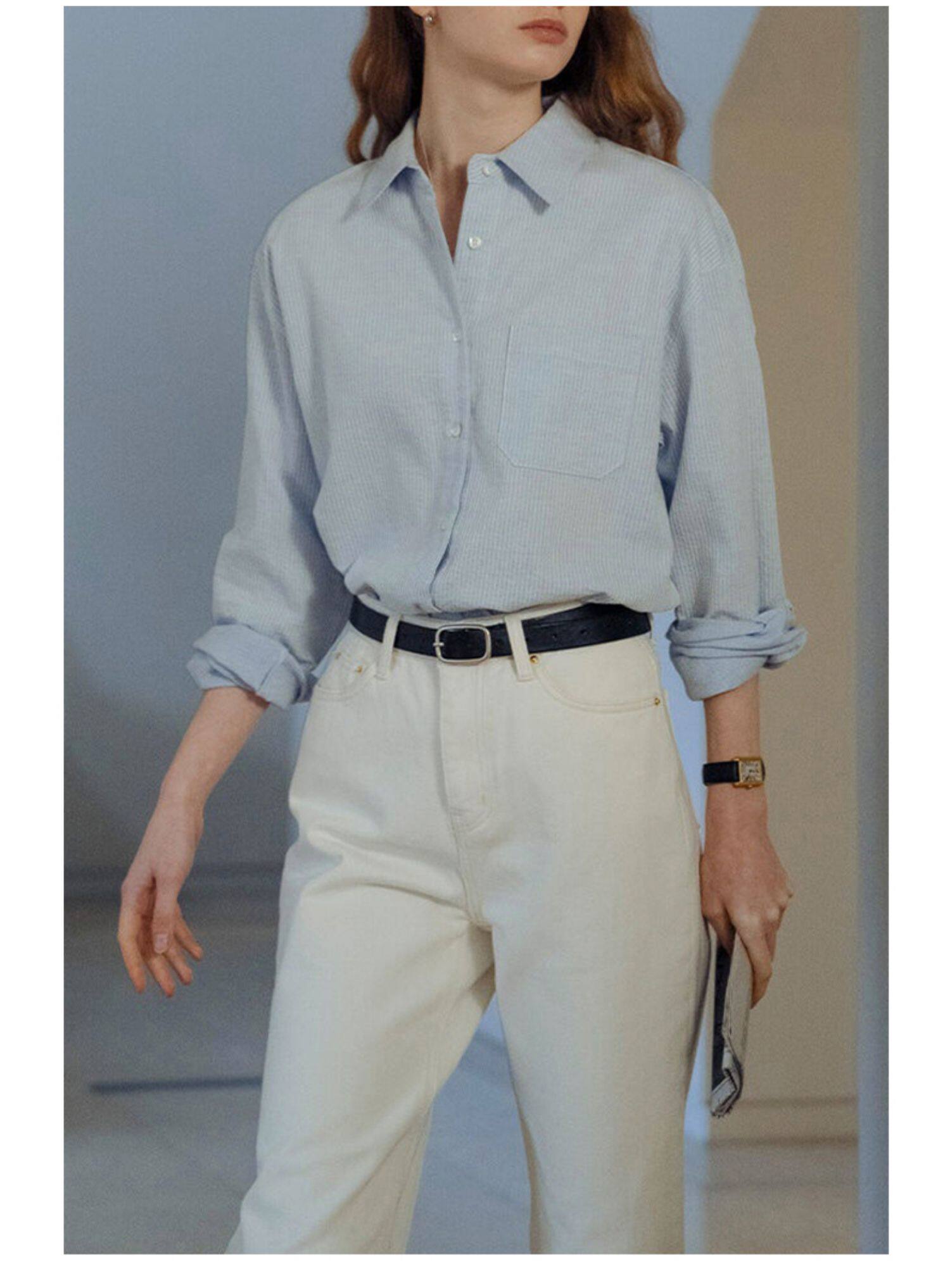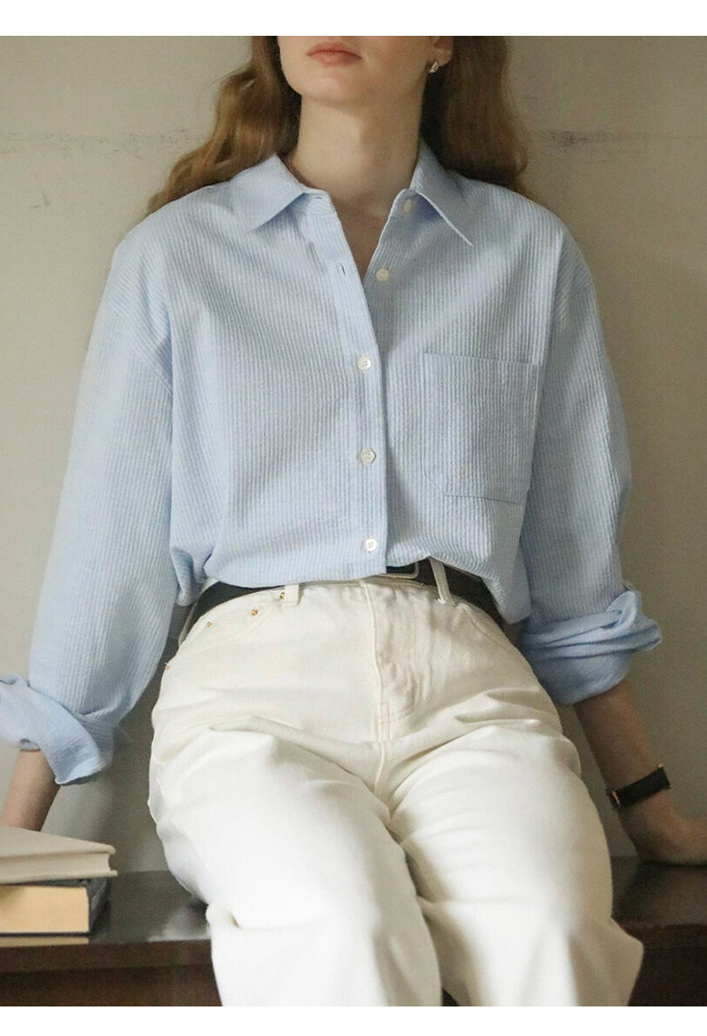 純棉白色襯衫女春秋法式上衣職業通勤白襯衣寬鬆柔軟開衫簡約百搭
