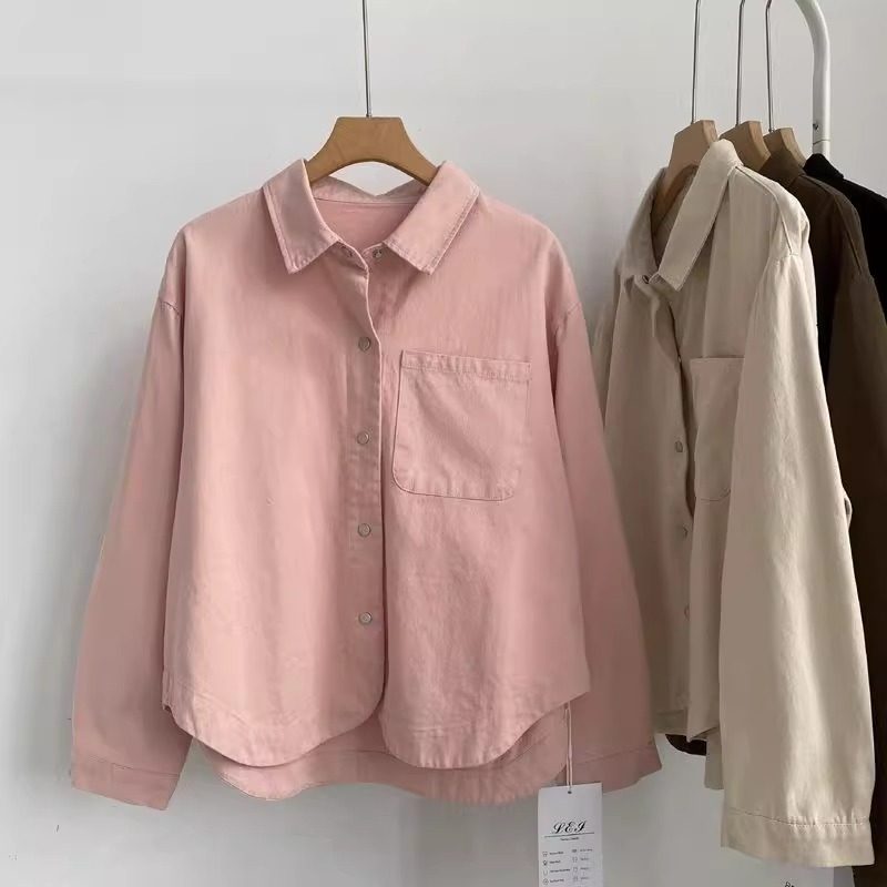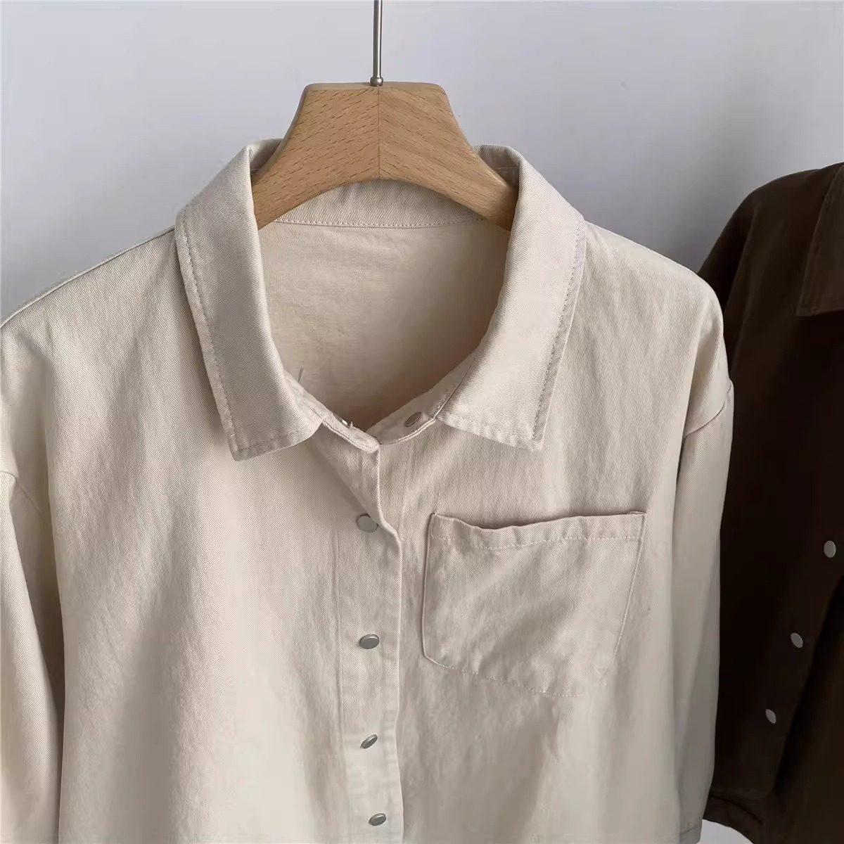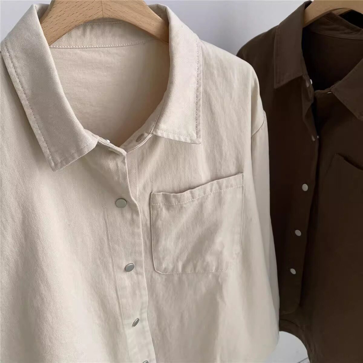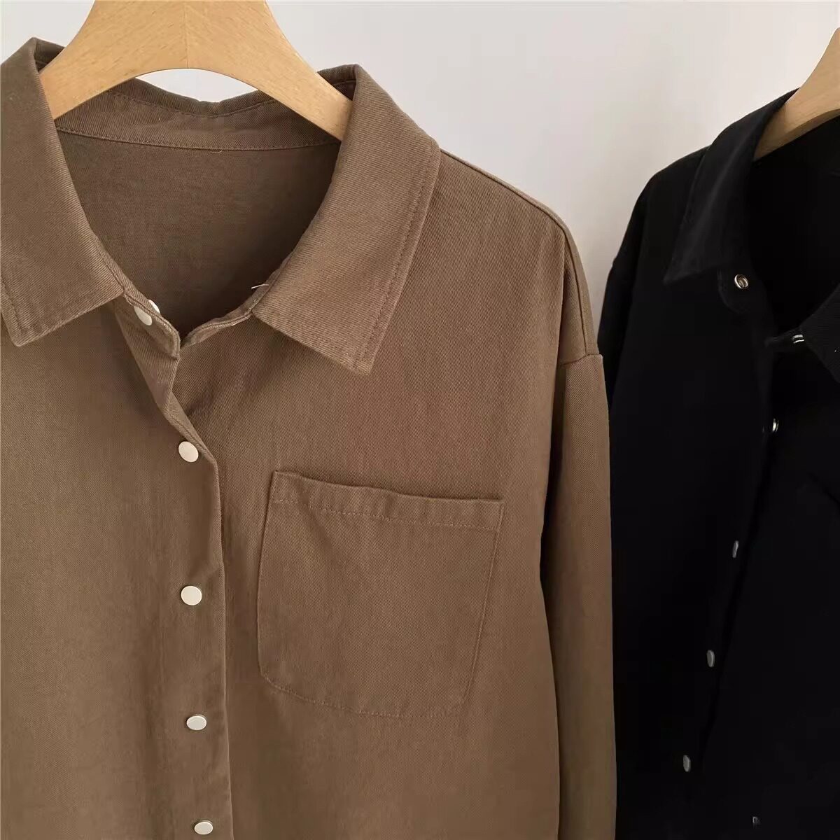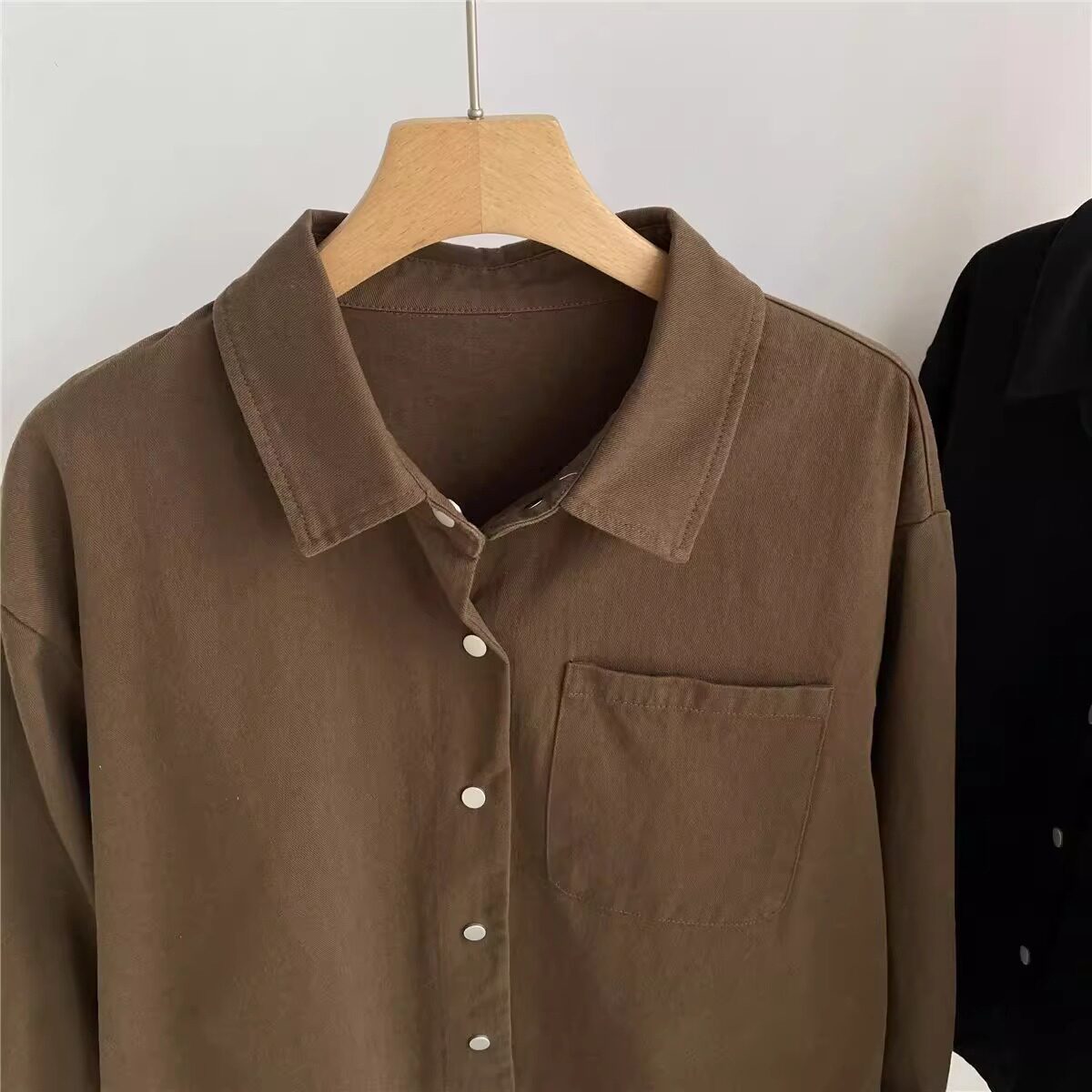 簡約大氣百搭復古polo繙領長袖襯衫2025新款女單排釦開衫外套上衣