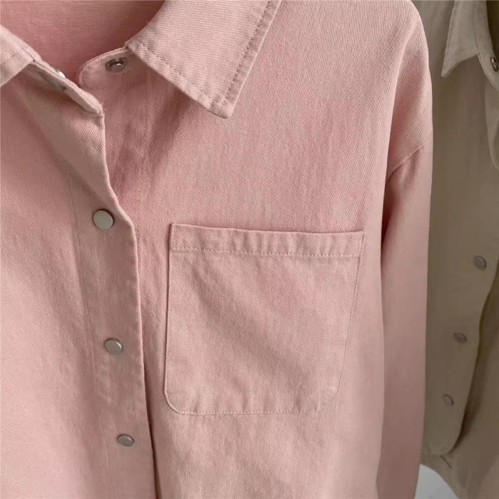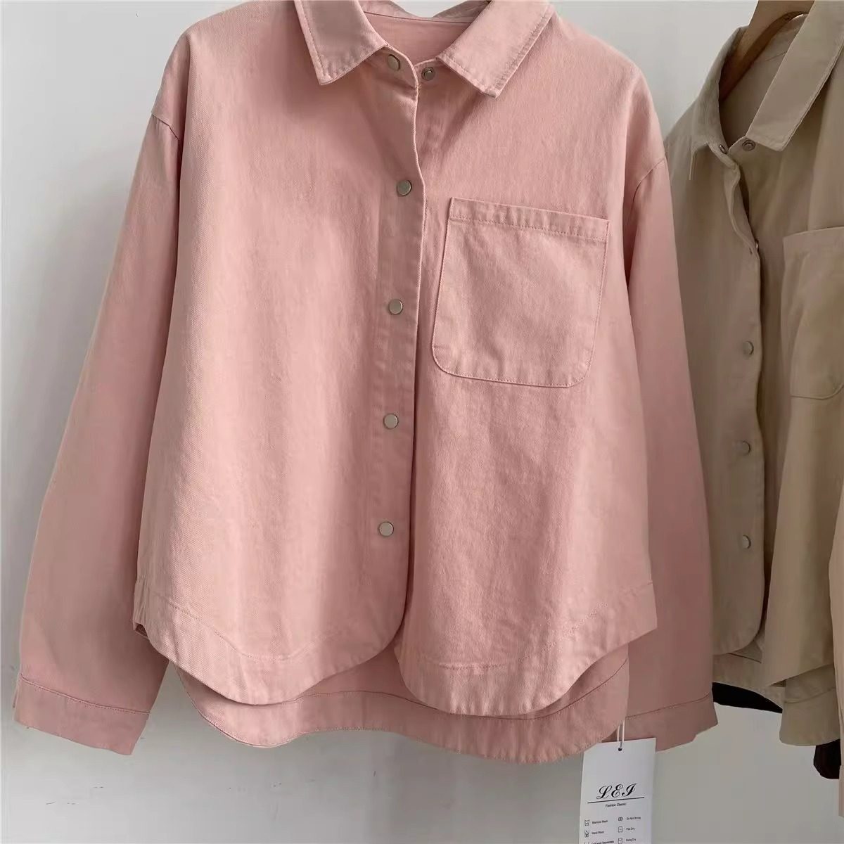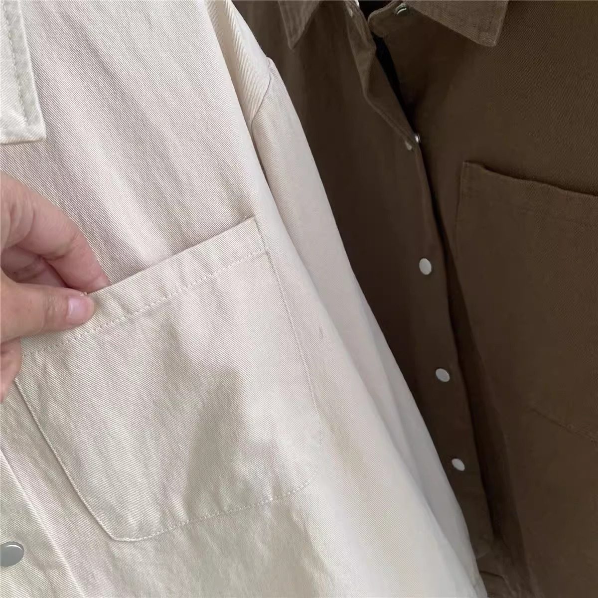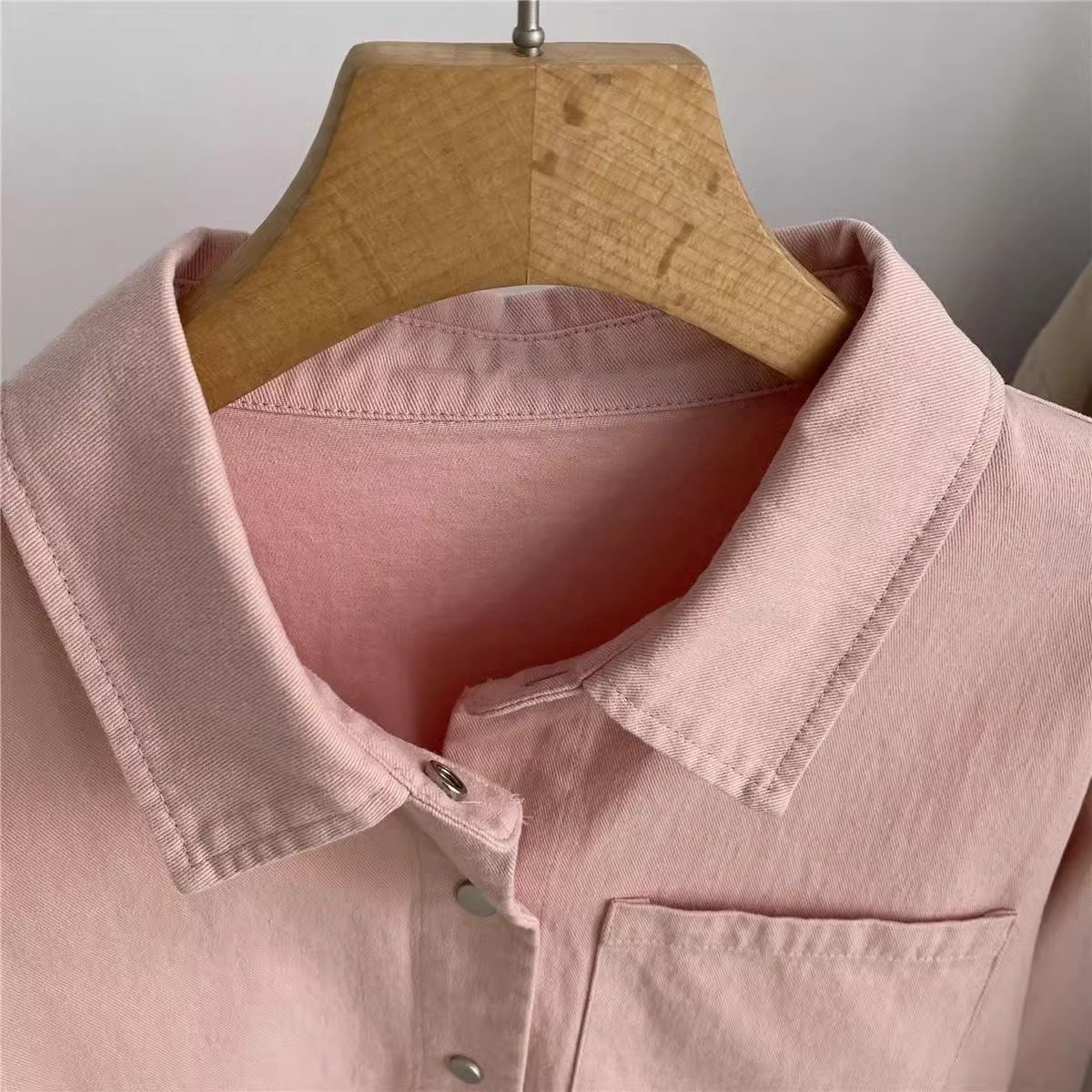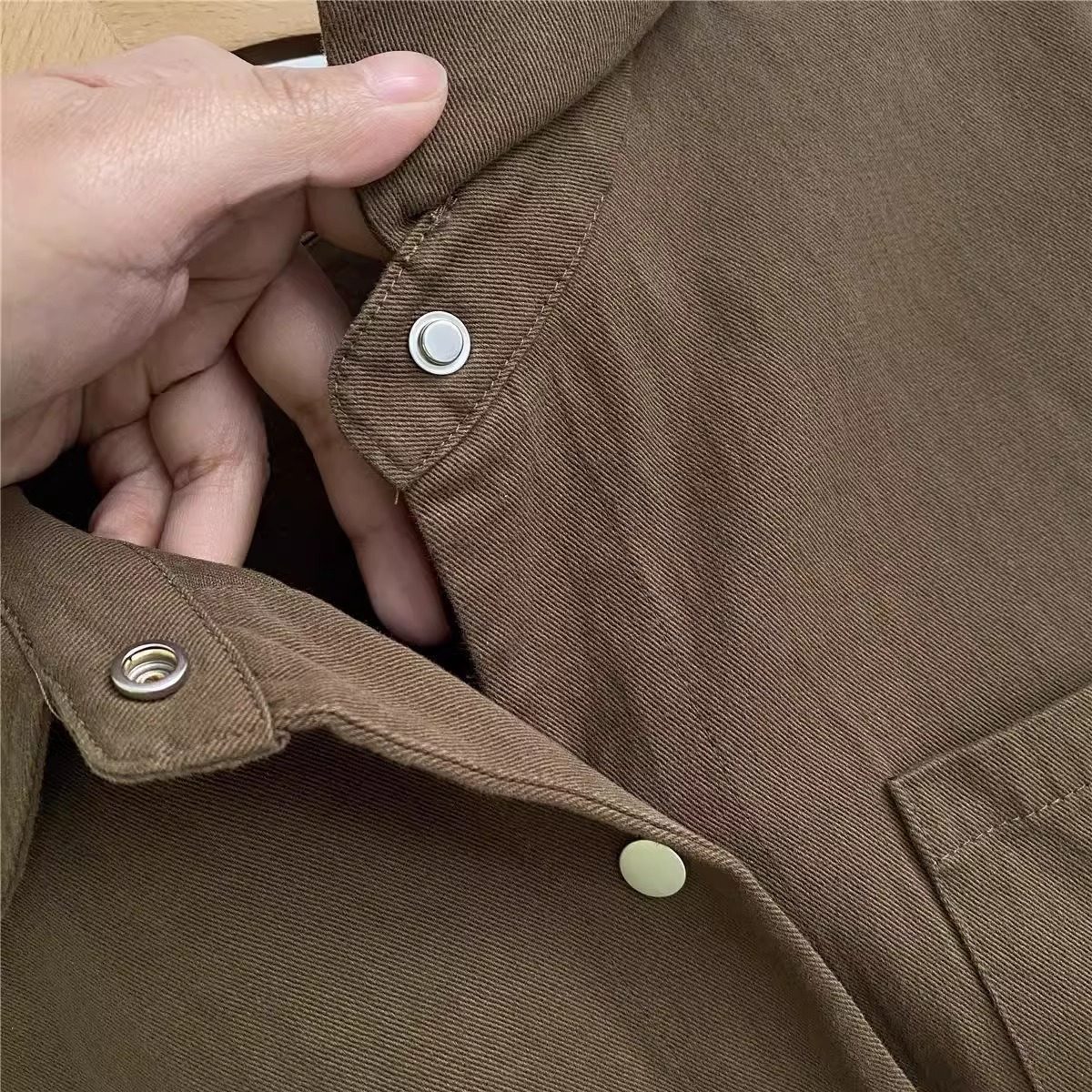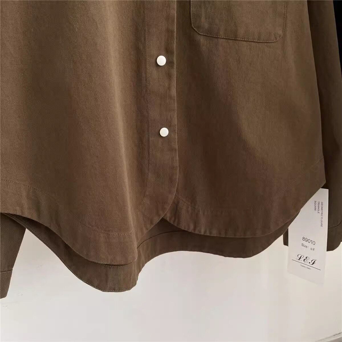 簡約大氣百搭復古polo繙領長袖襯衫2025新款女單排釦開衫外套上衣