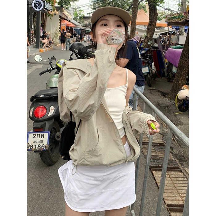 防曬衣女短款薄外套2025夏季新款防紫外線透氣戶外百搭連帽防曬服