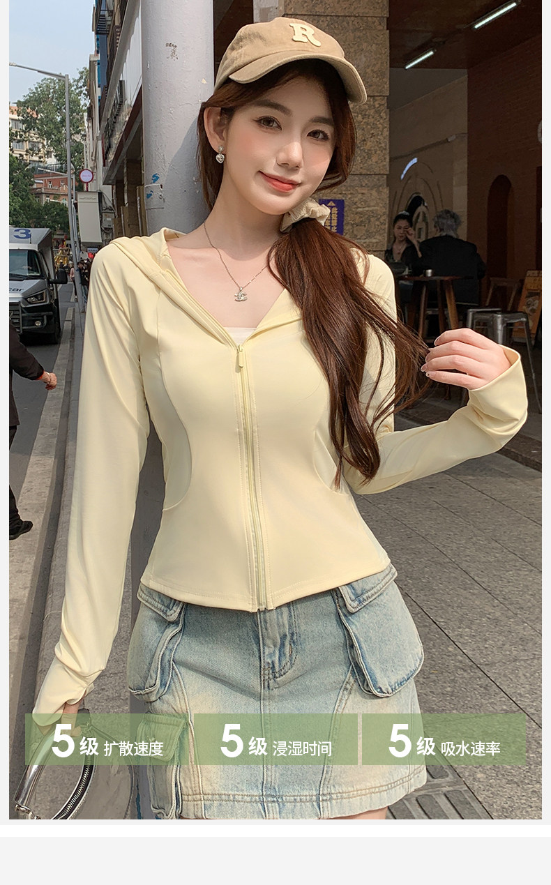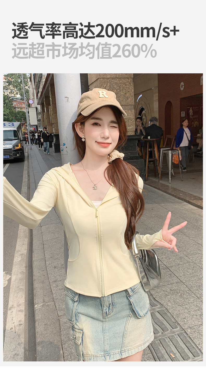 鵞黃色連帽防曬衣女夏季2026新款防紫外線防曬服修身冰絲開衫外套