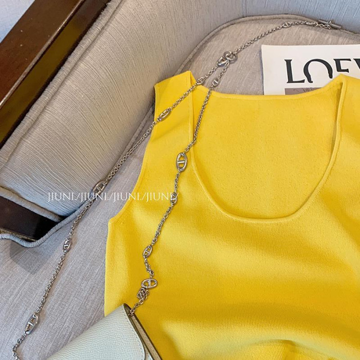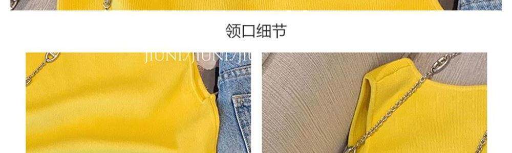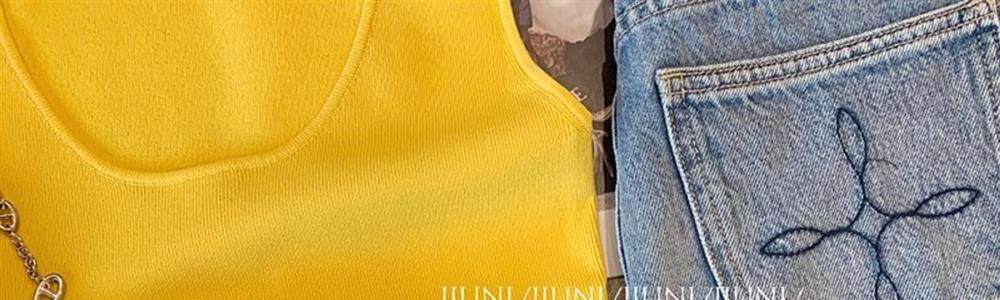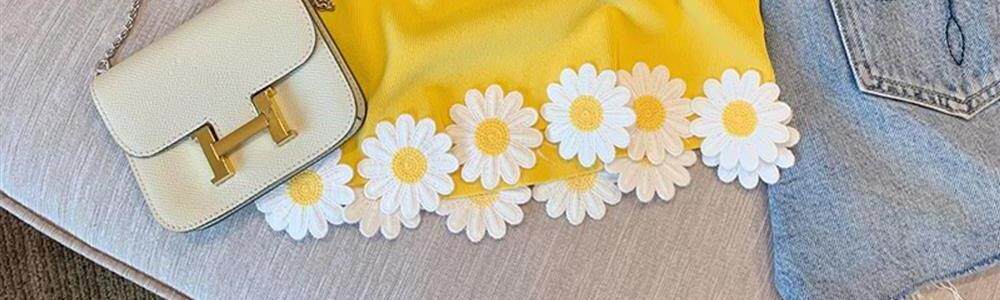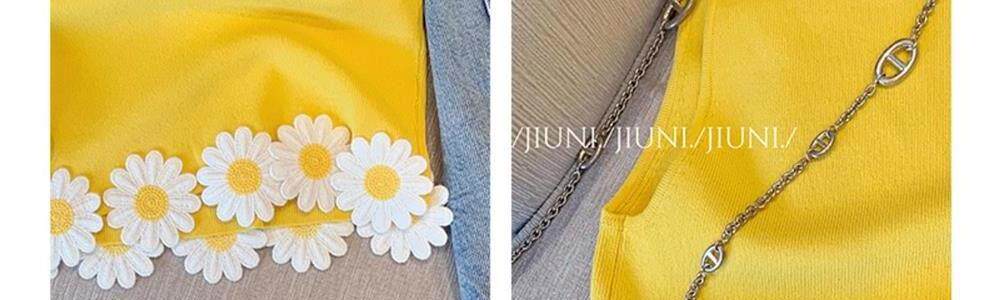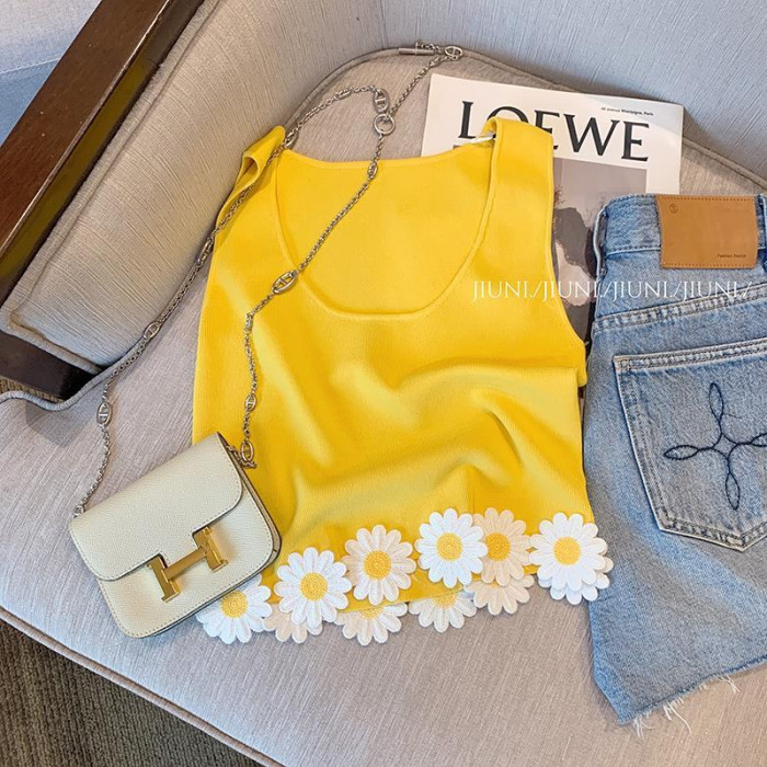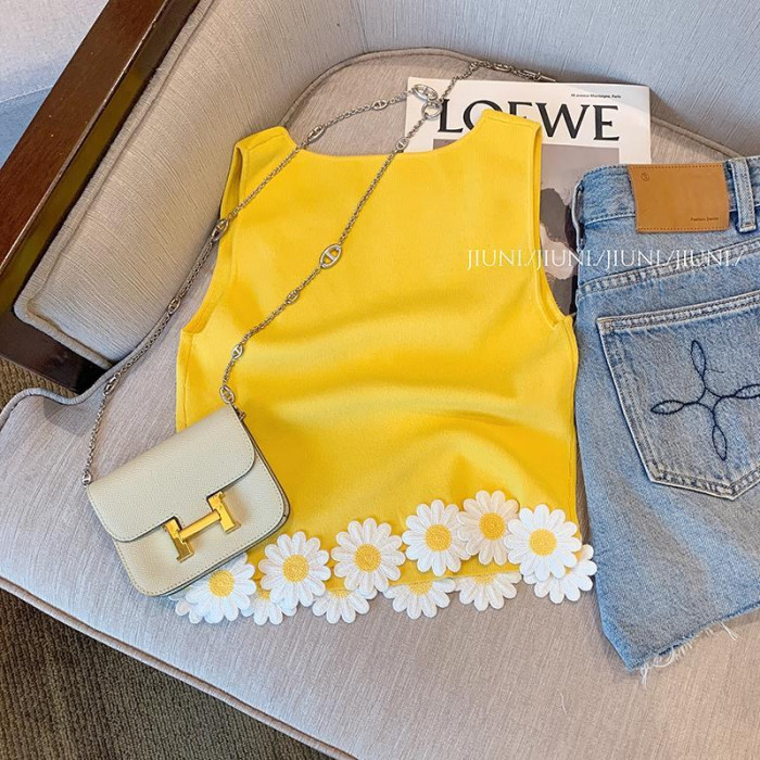 專櫃撤廻剪標黃色花朵貼布拼接吊帶背心女夏款外穿辣妹氣質小上衣
