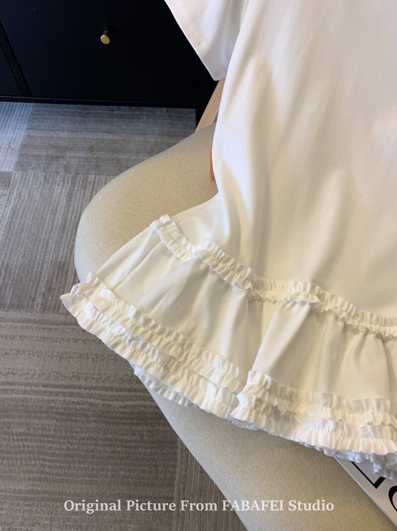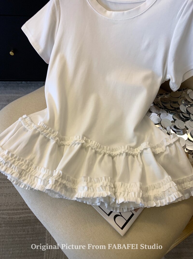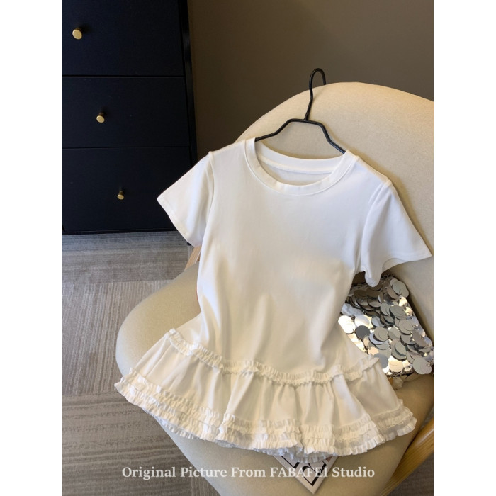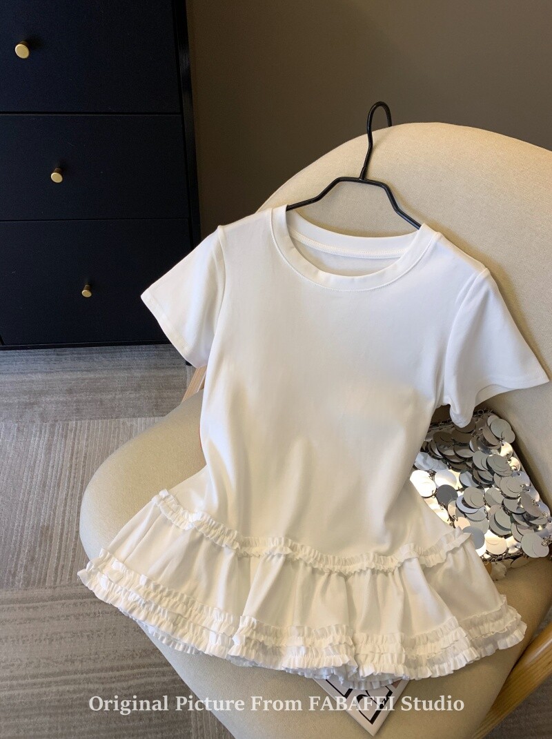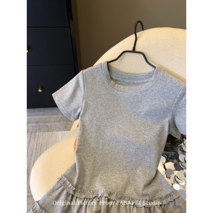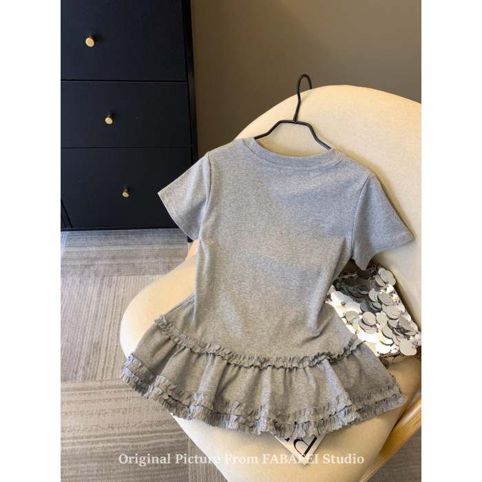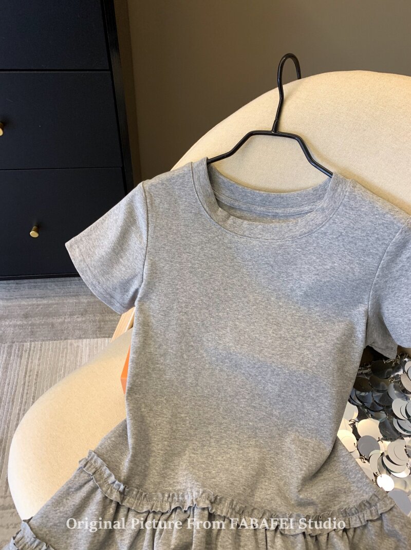 自畱爆款推薦~灰色下擺木耳邊短袖t恤女夏2026韓版遮肚子裙擺上衣