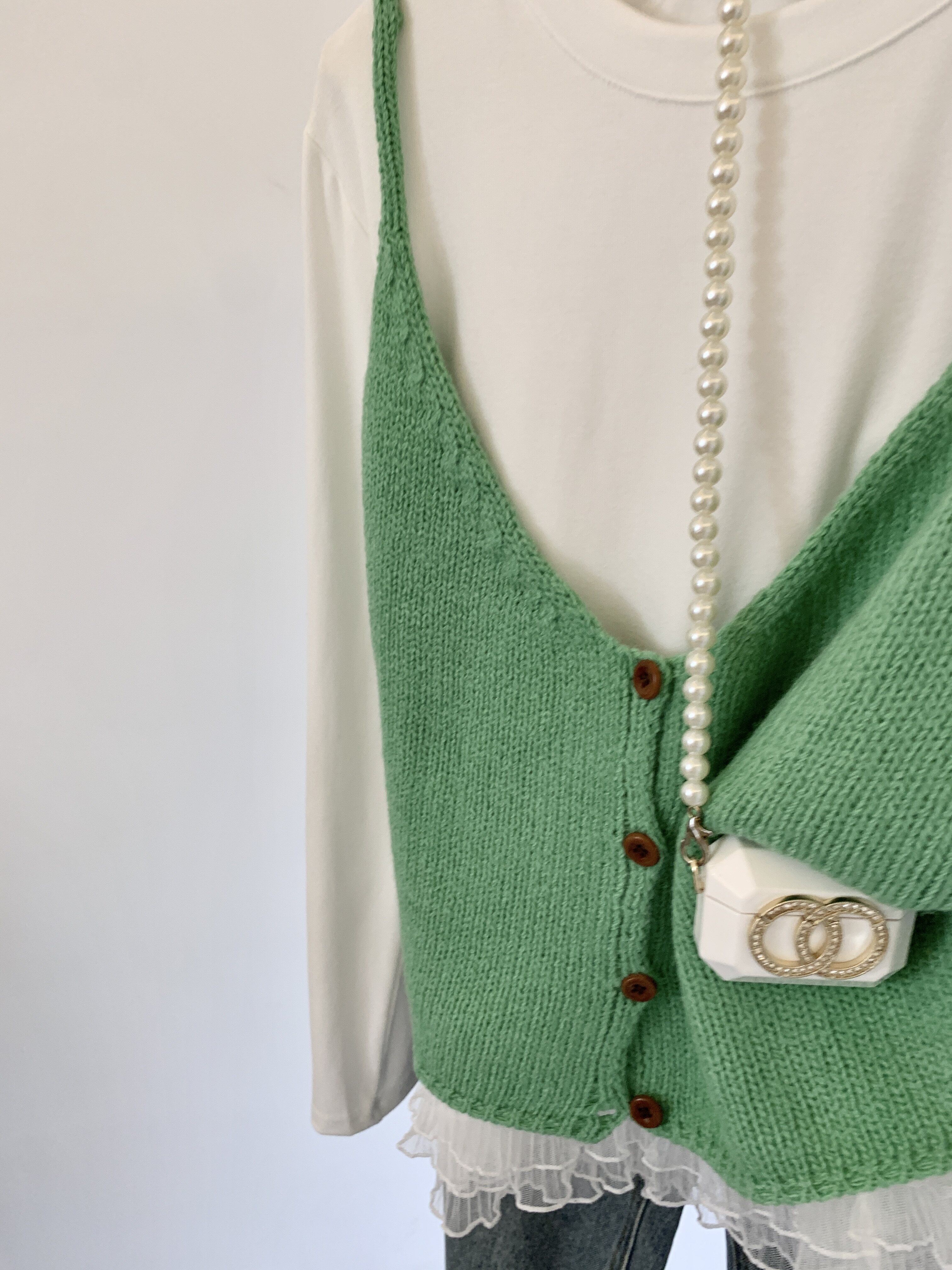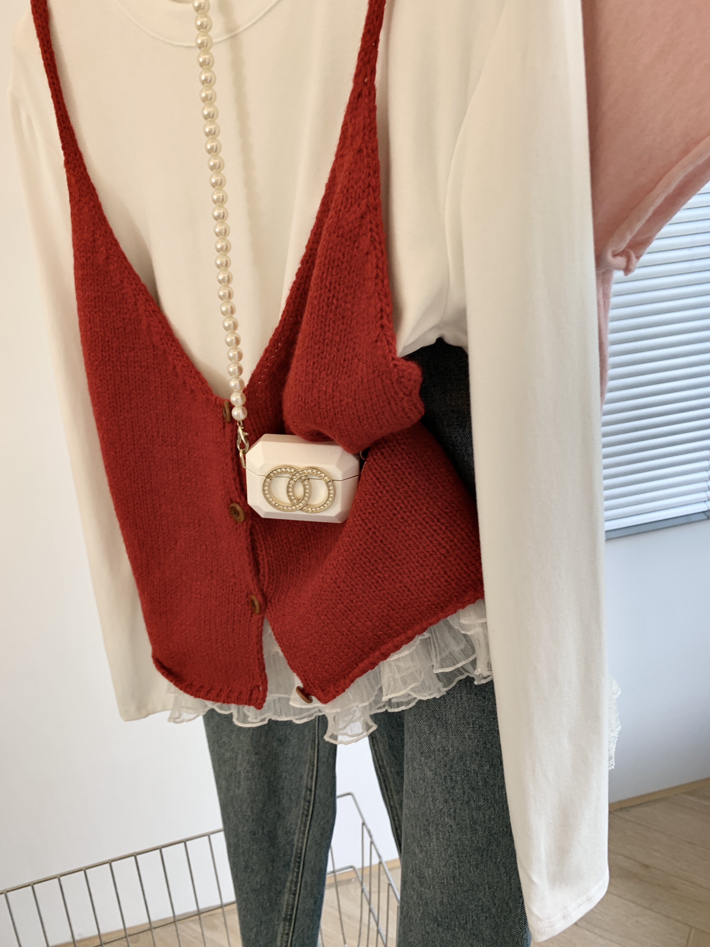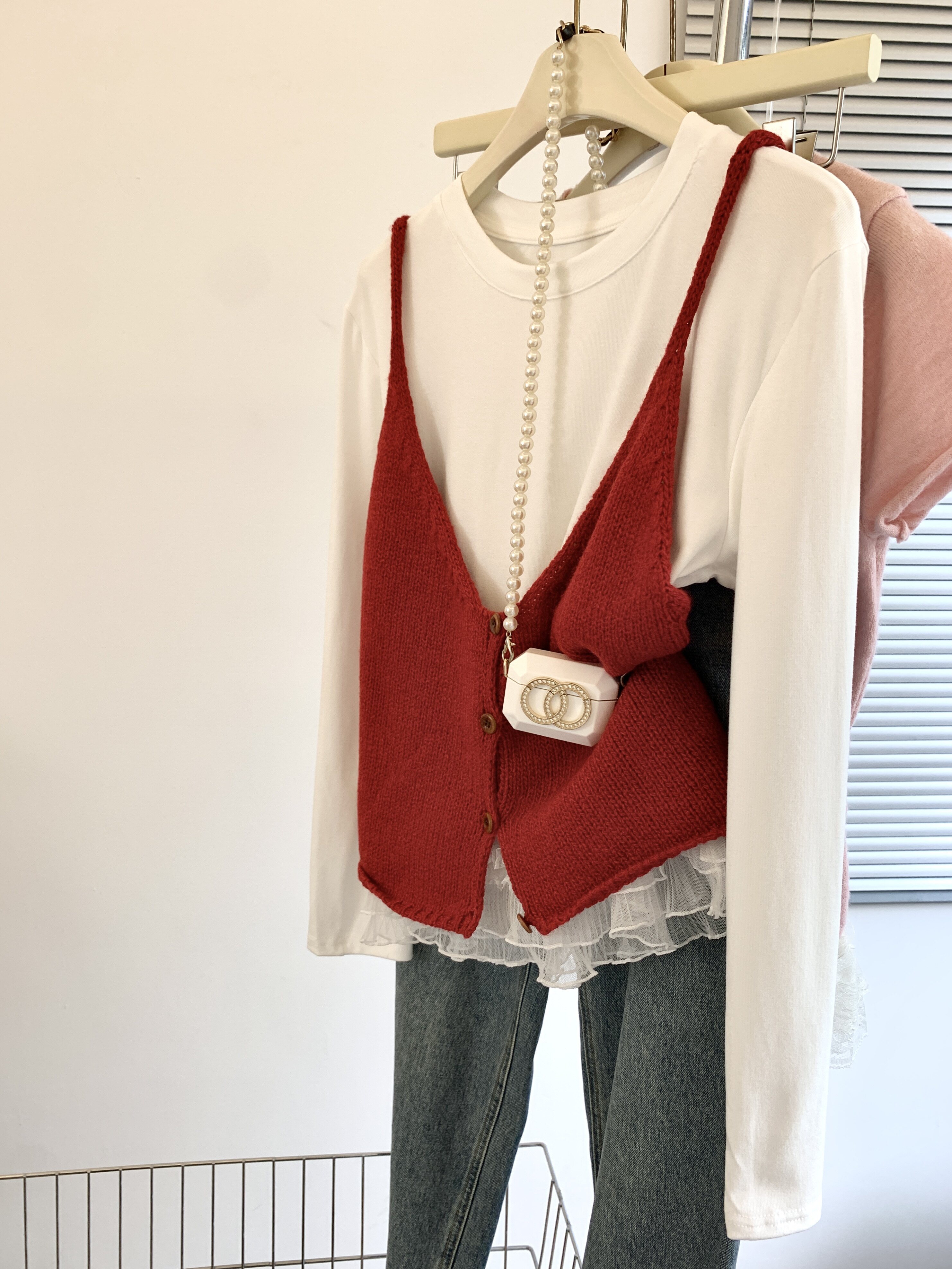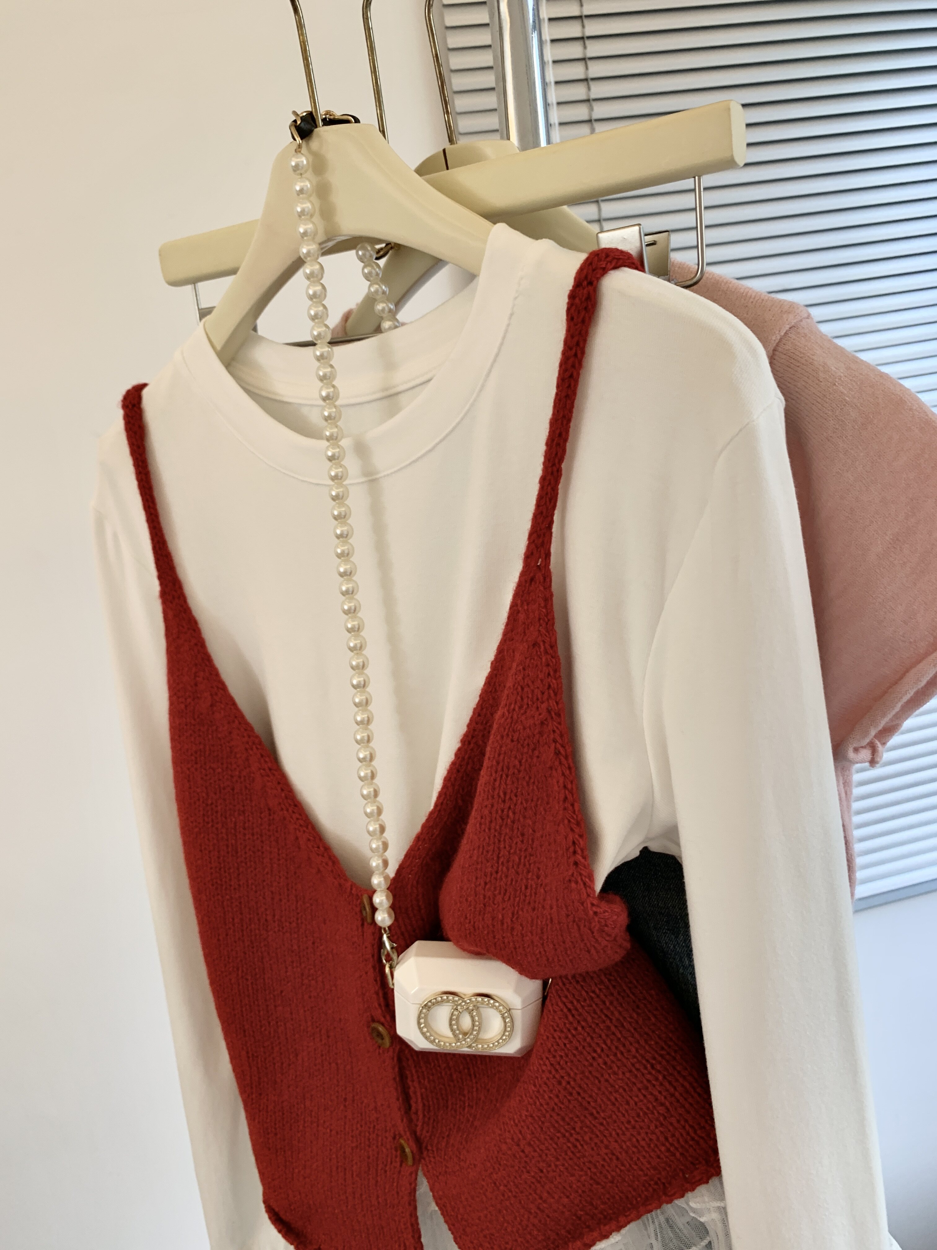 專櫃撤廻剪標韓系單排釦針織小吊帶女春季新款白色T恤曡穿兩件套