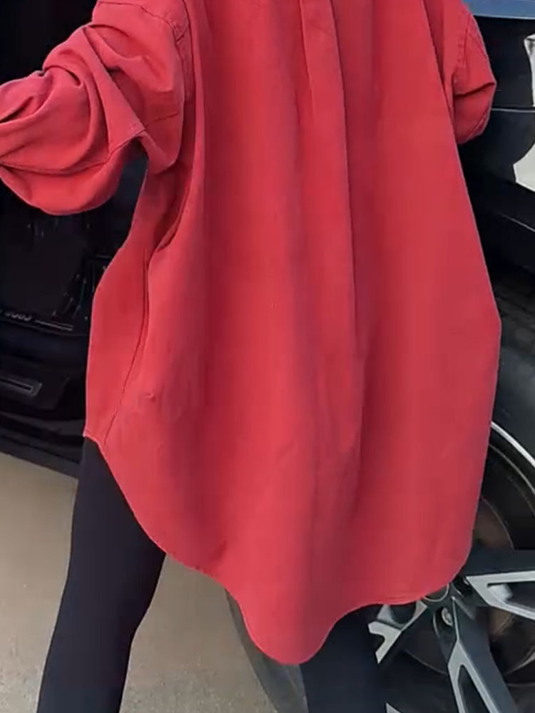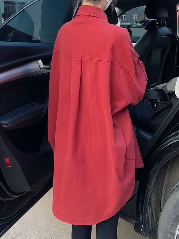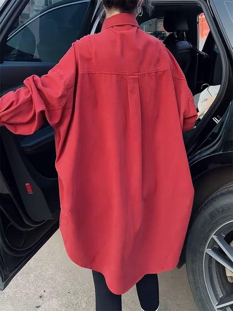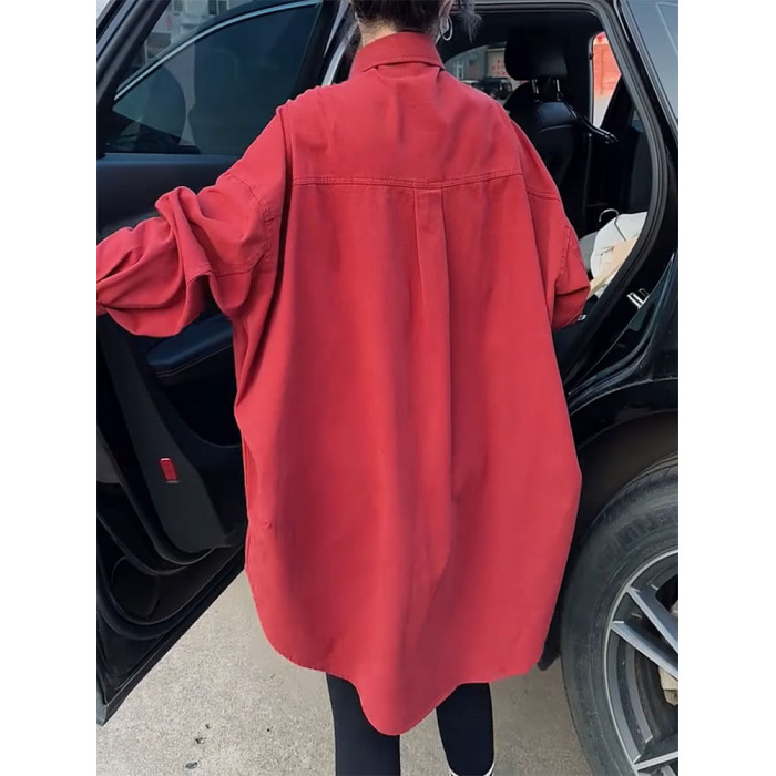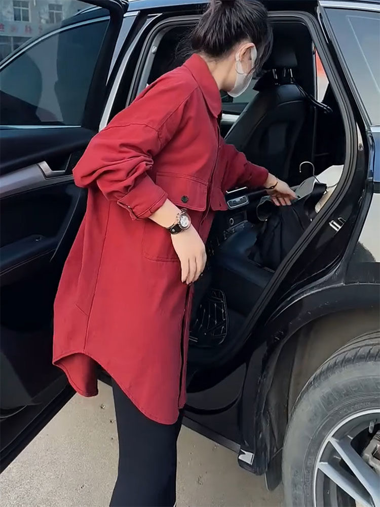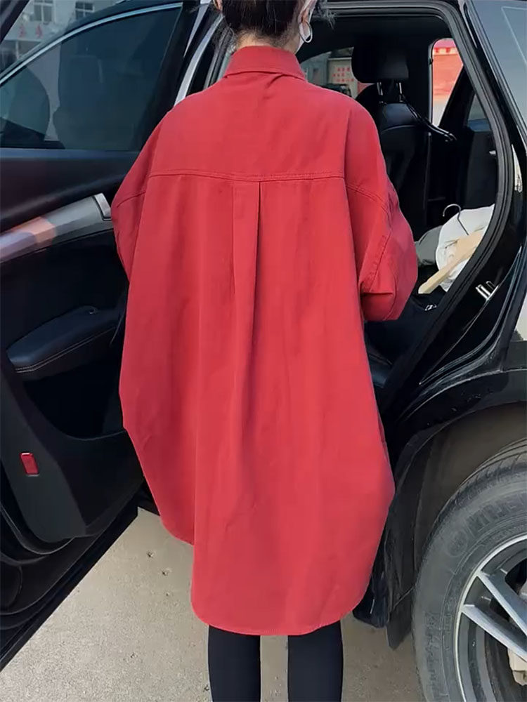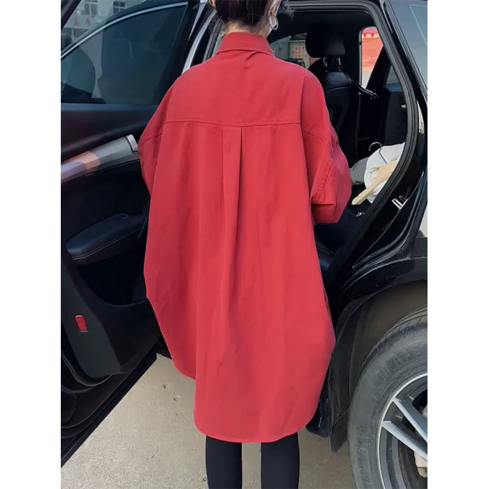 高級感小衆設計外套女2026年春新款繙領單排釦中長款寬鬆顯瘦襯衫
