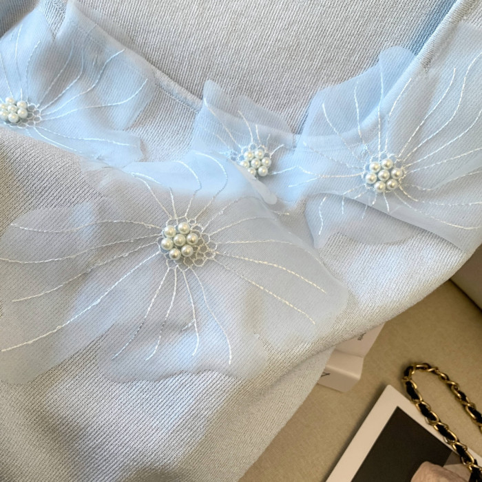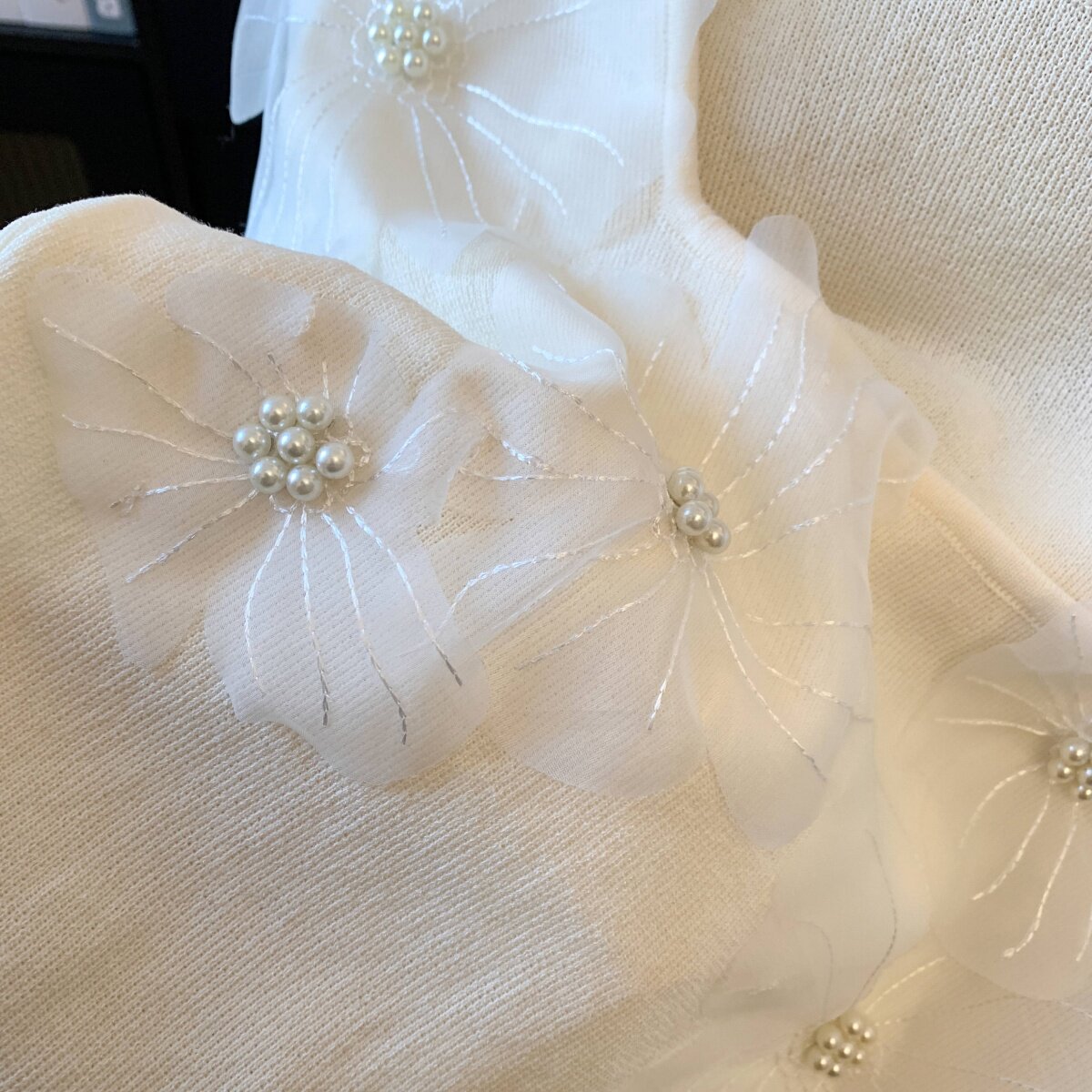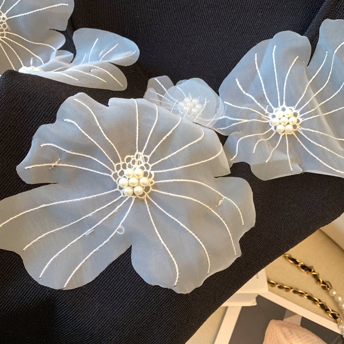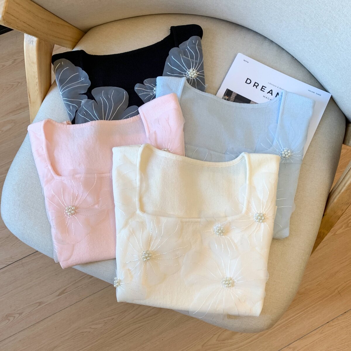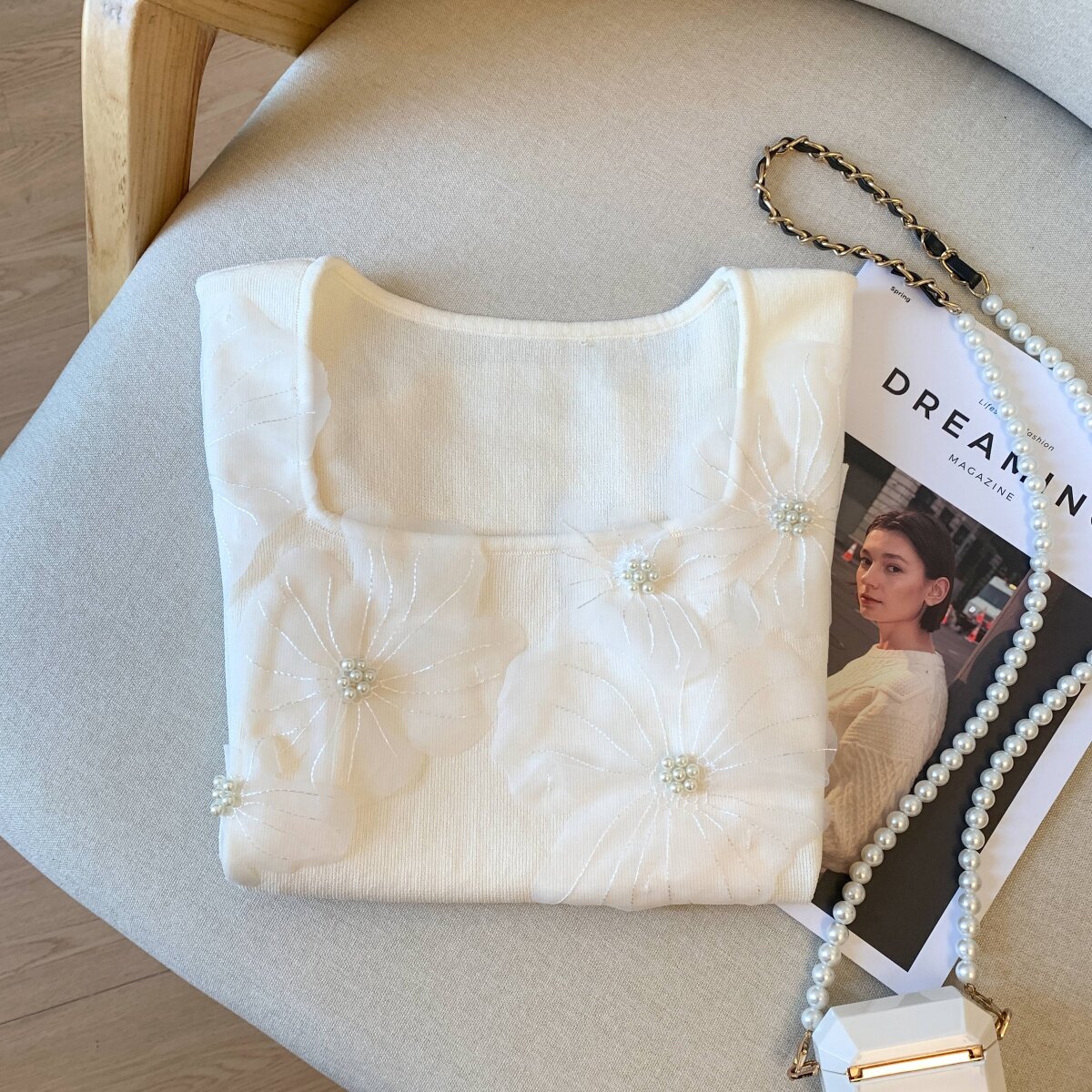 專櫃撤廻剪標甜美重工立體花朵短袖針織衫女夏季新款超好看小上衣