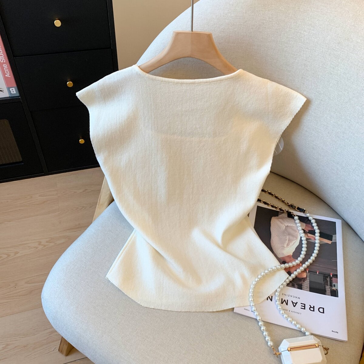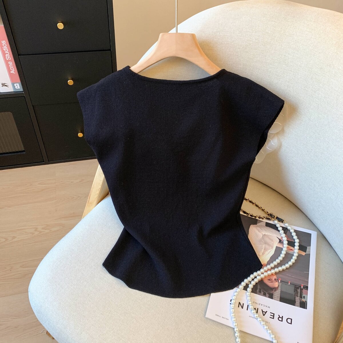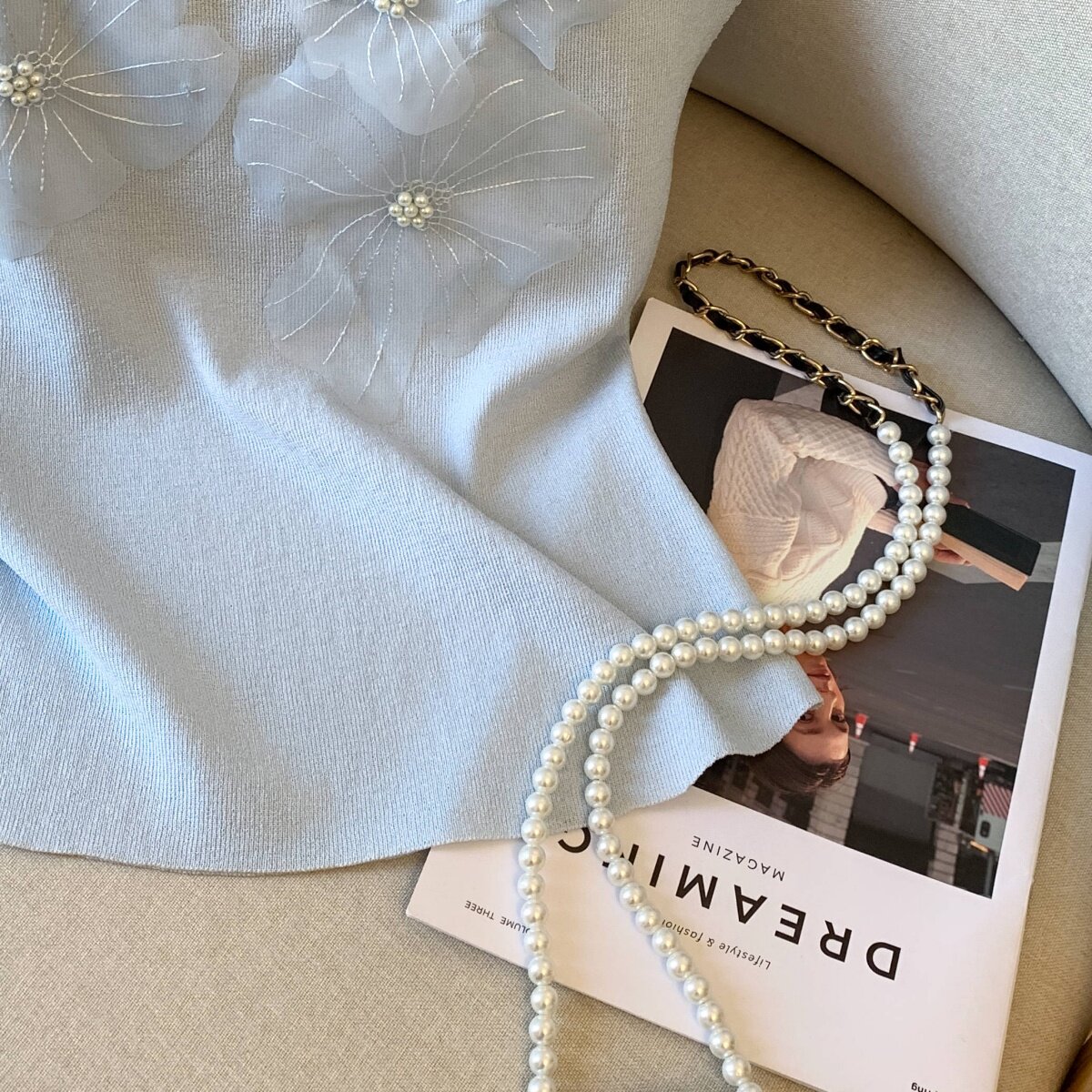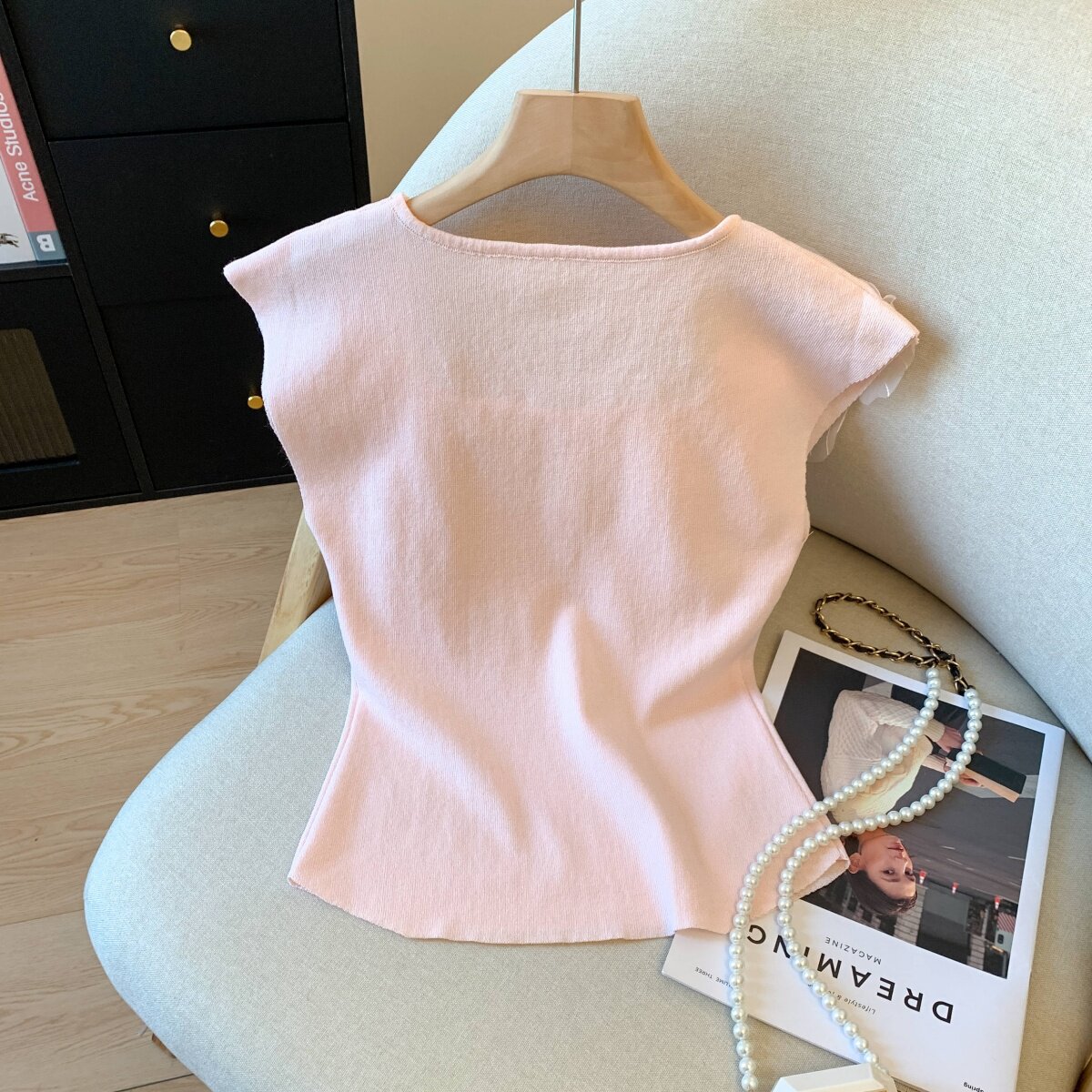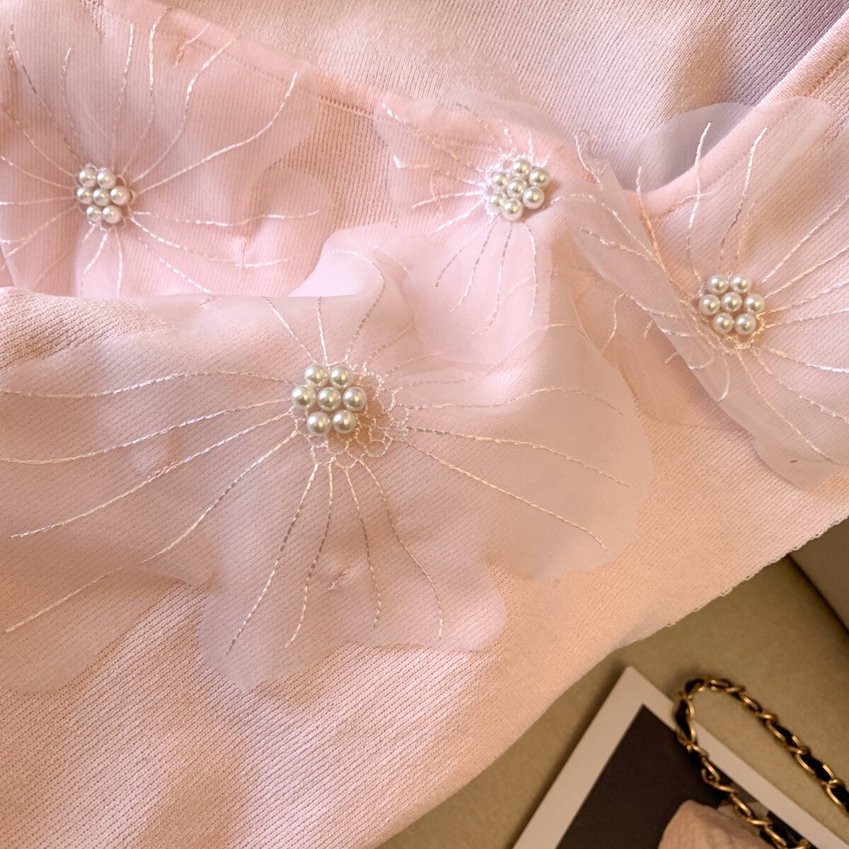 專櫃撤廻剪標甜美重工立體花朵短袖針織衫女夏季新款超好看小上衣