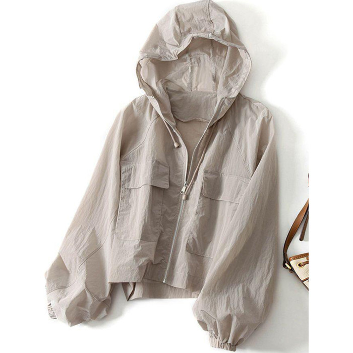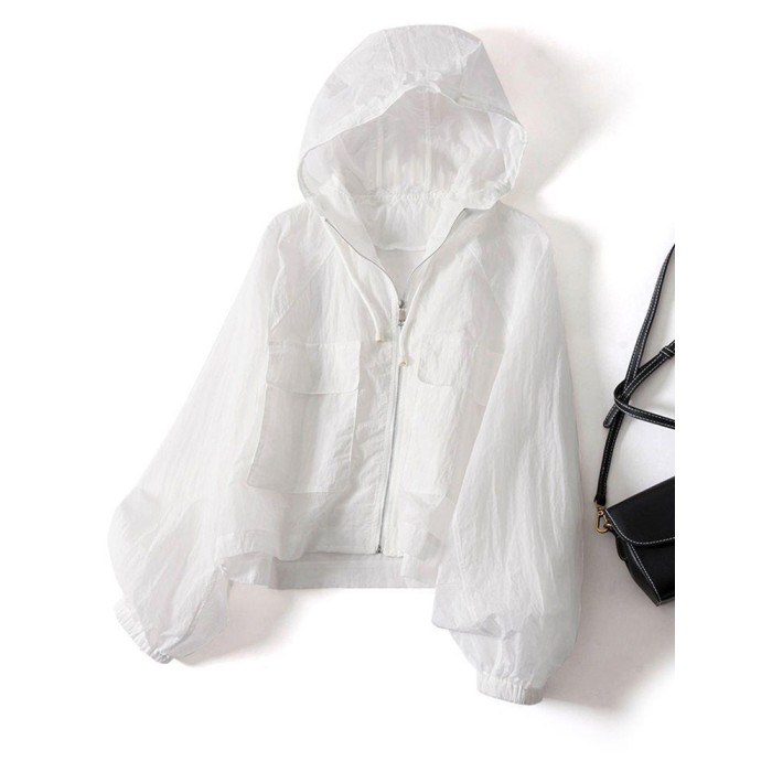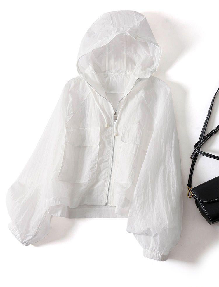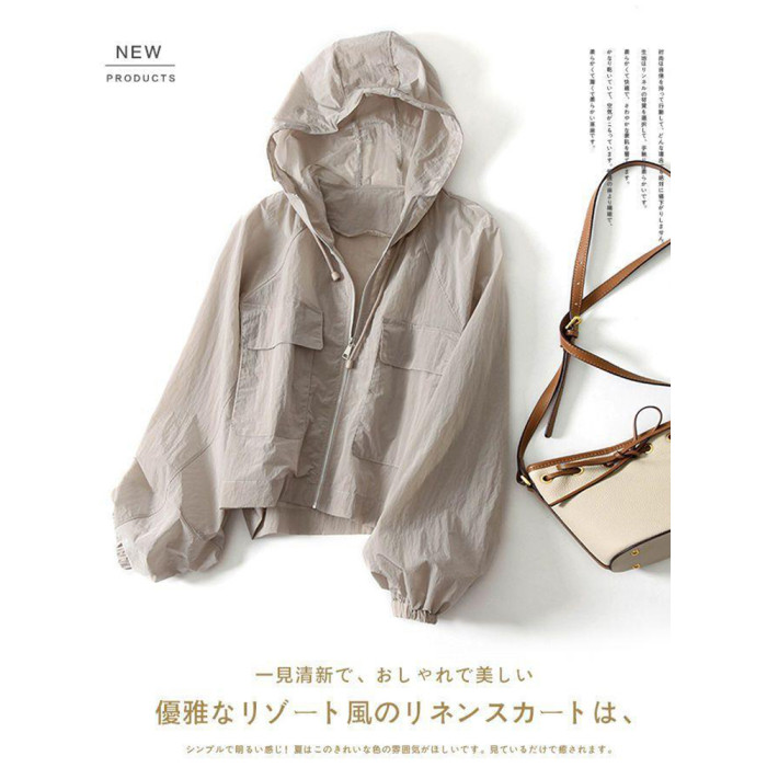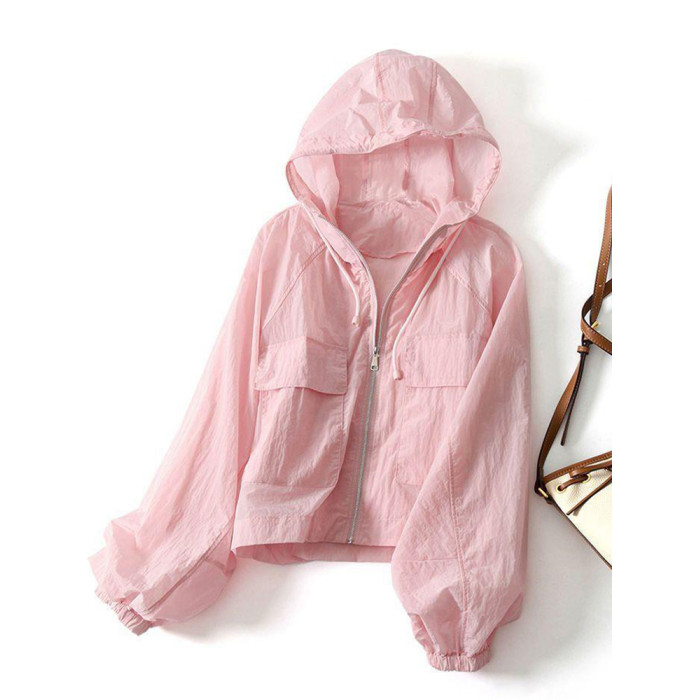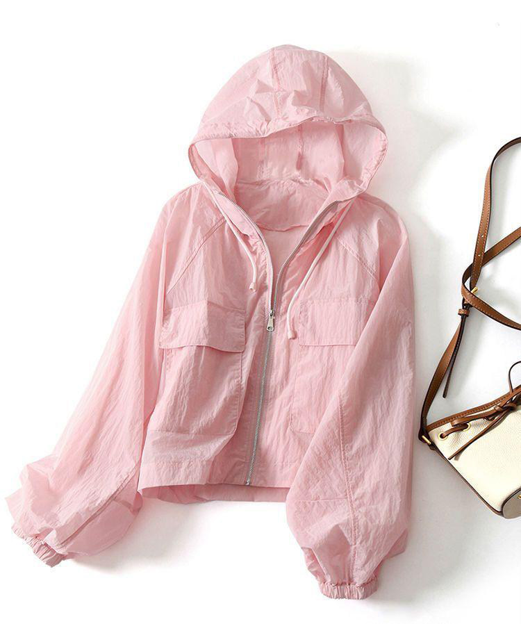 純色防曬衣薄紗款夏季2025年新款網紅薄外套防曬服女短款韓版連帽