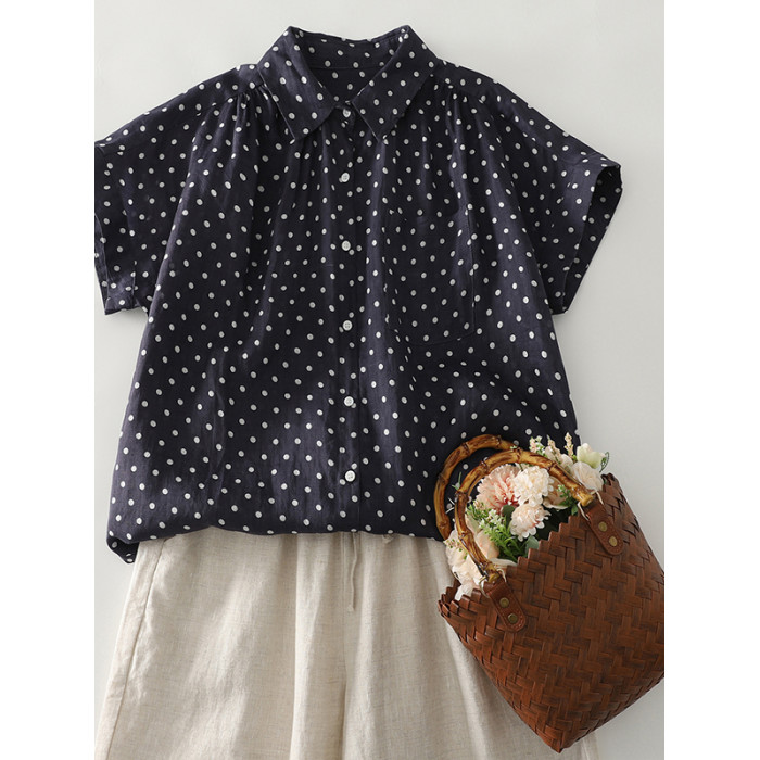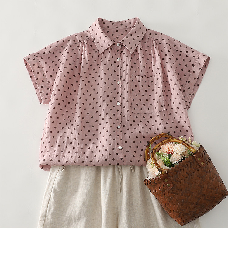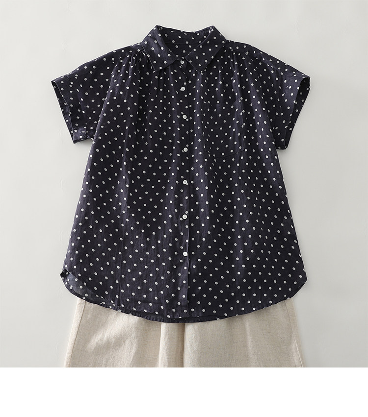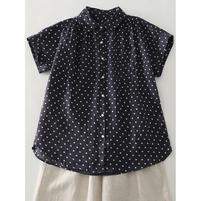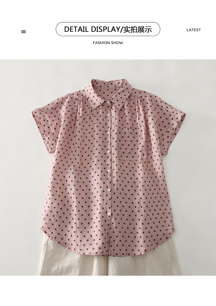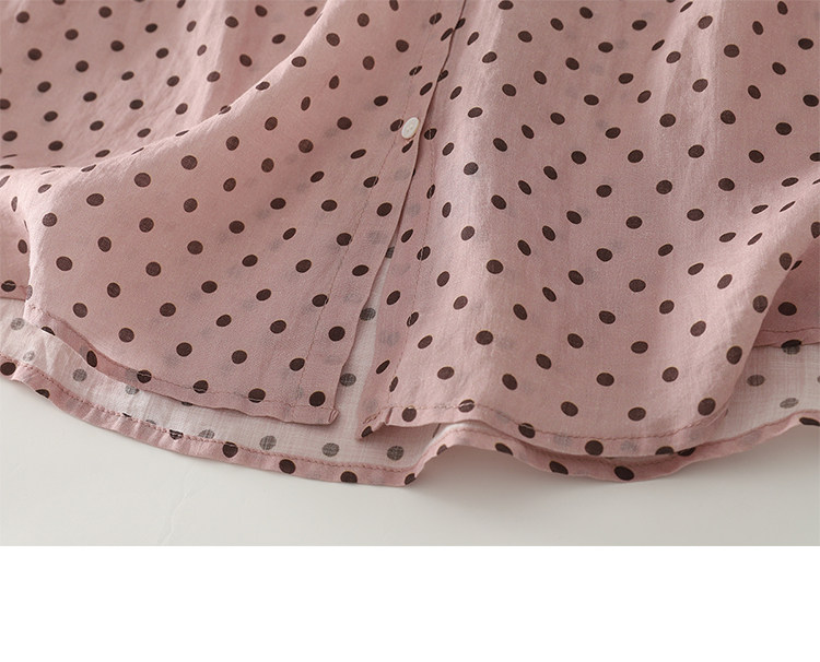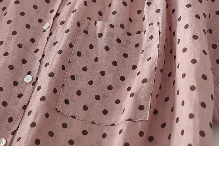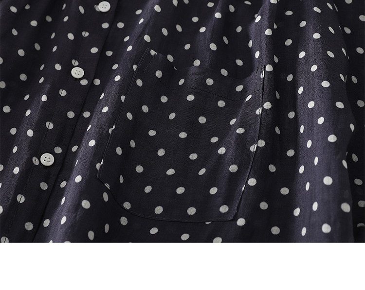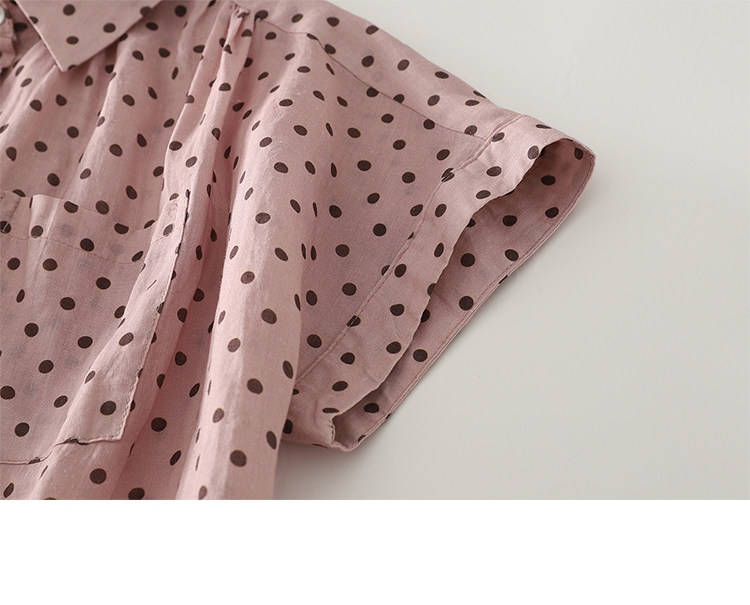 出口日單外單夏季棉麻波點短袖襯衫休閒顯瘦單排釦口袋上衣女