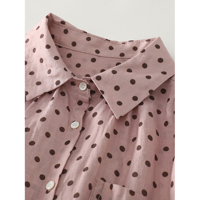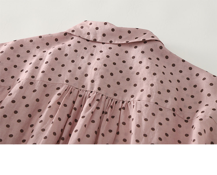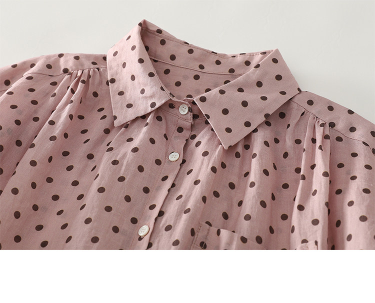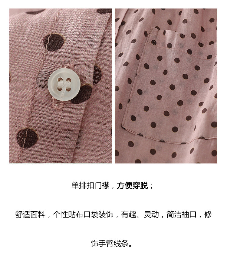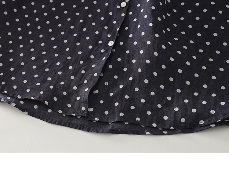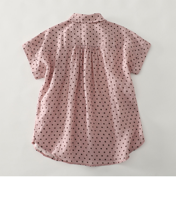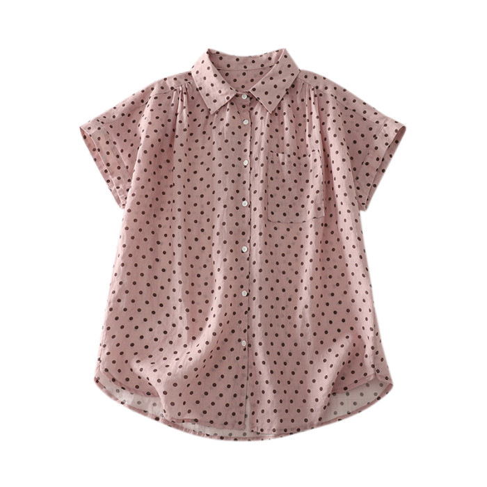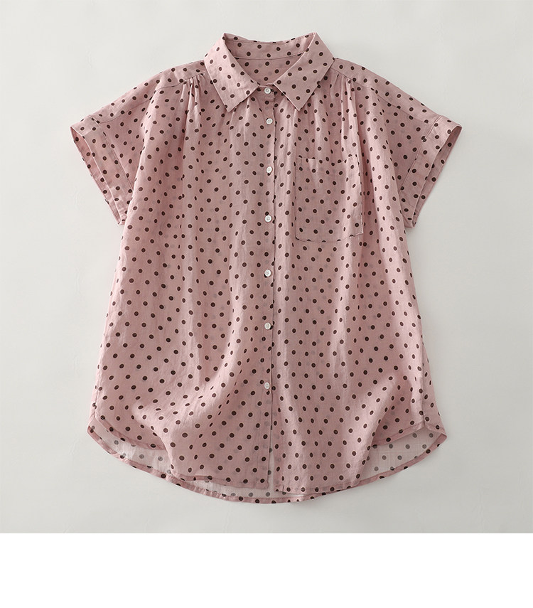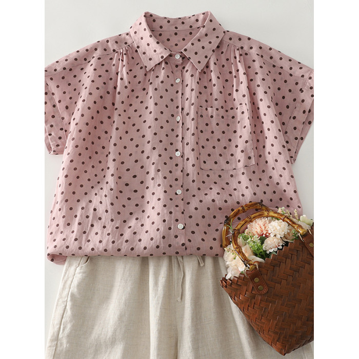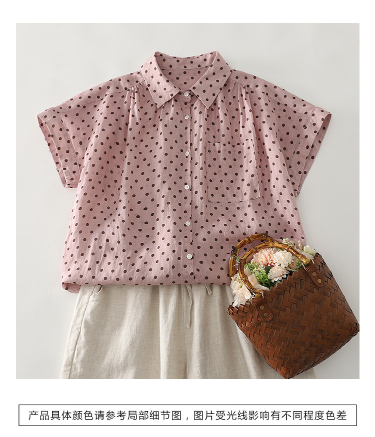 出口日單外單夏季棉麻波點短袖襯衫休閒顯瘦單排釦口袋上衣女