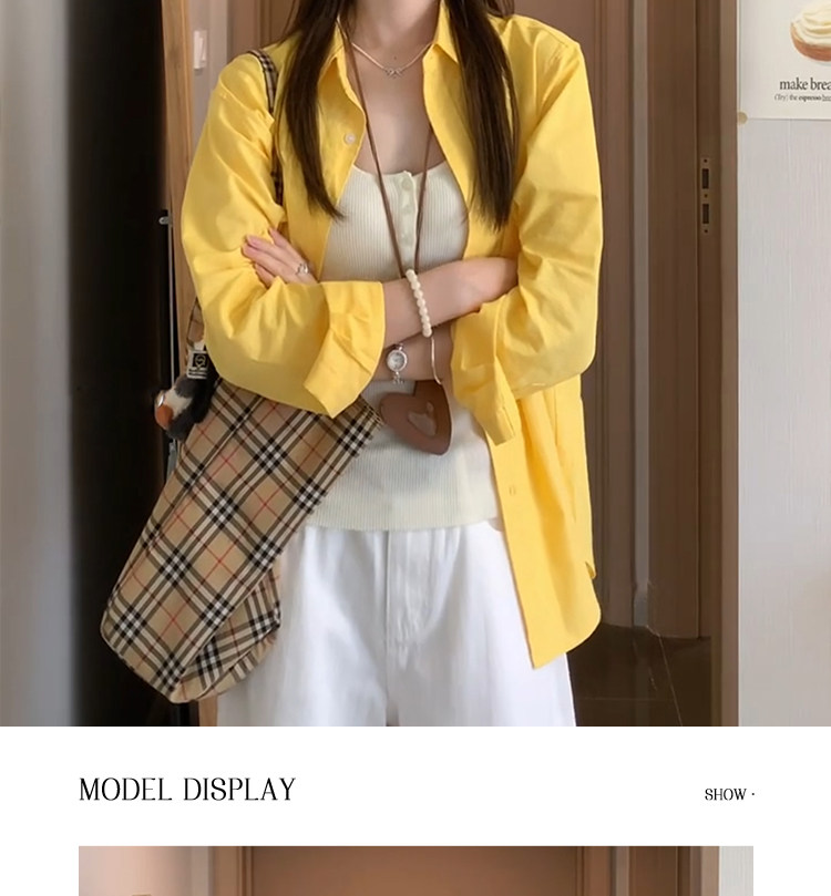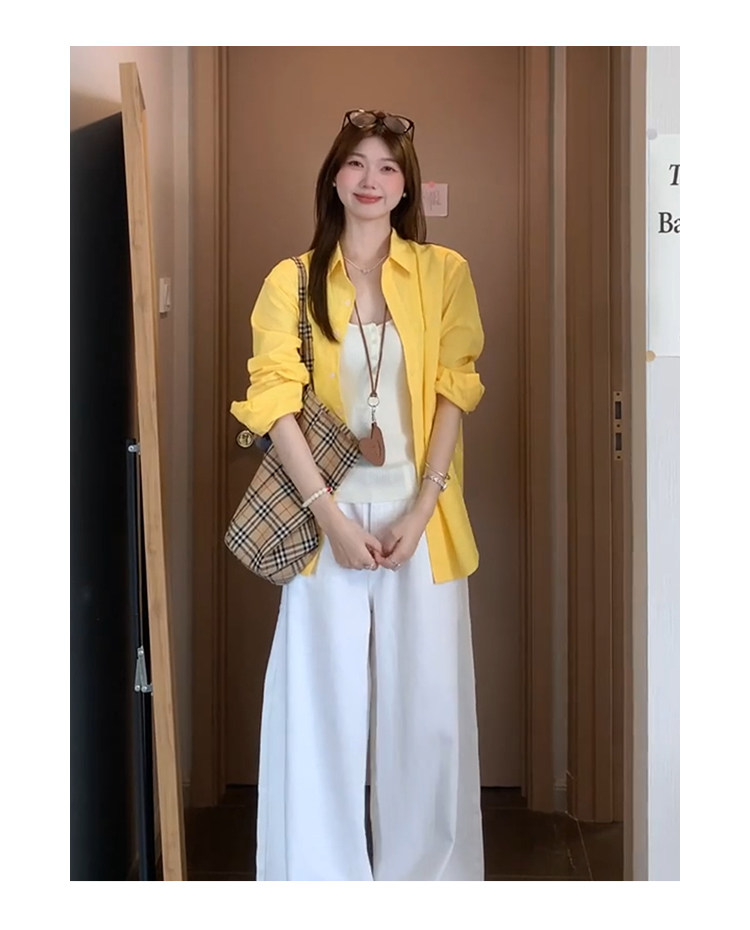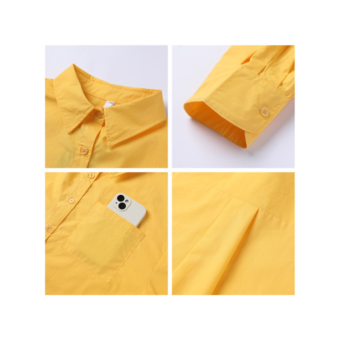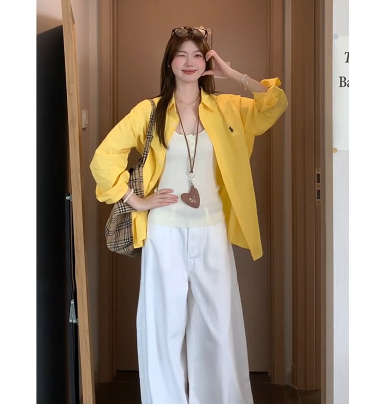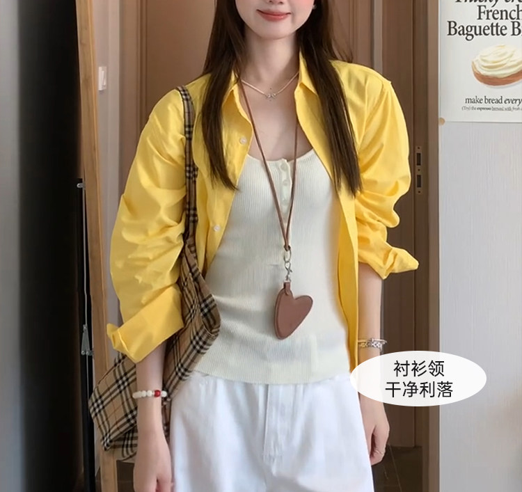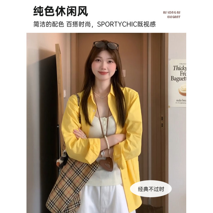 黃色防曬襯衫女新款秋冬季外套寬鬆慵懶襯衣純棉長袖開衫薄款上衣