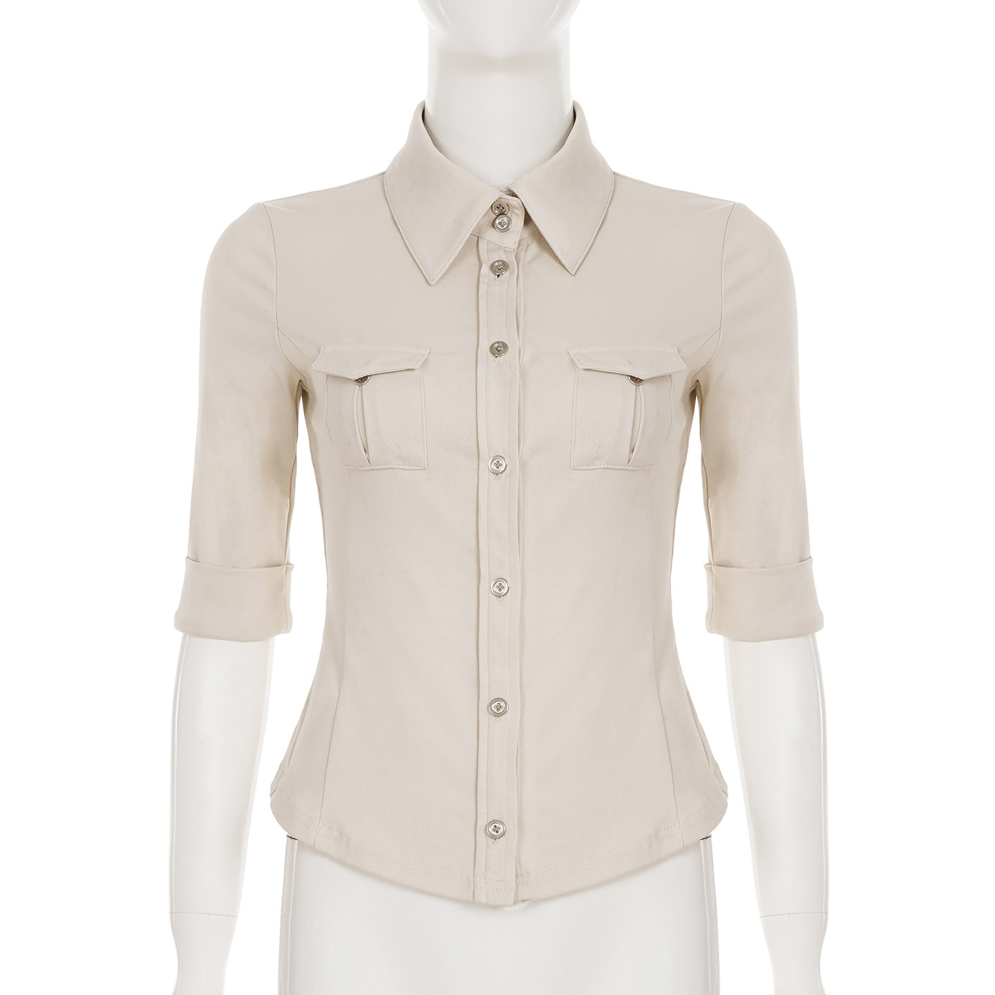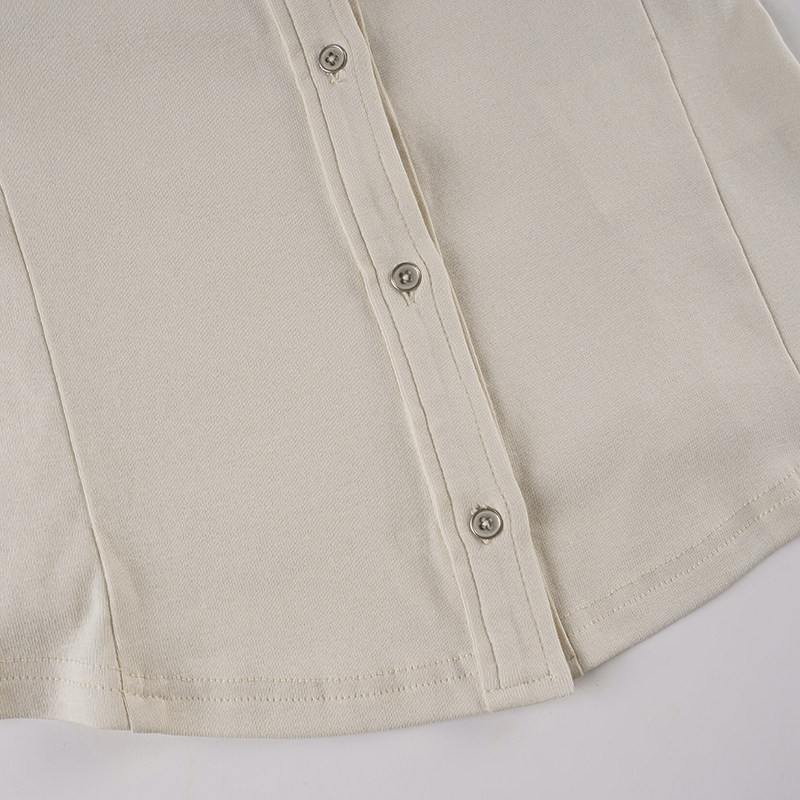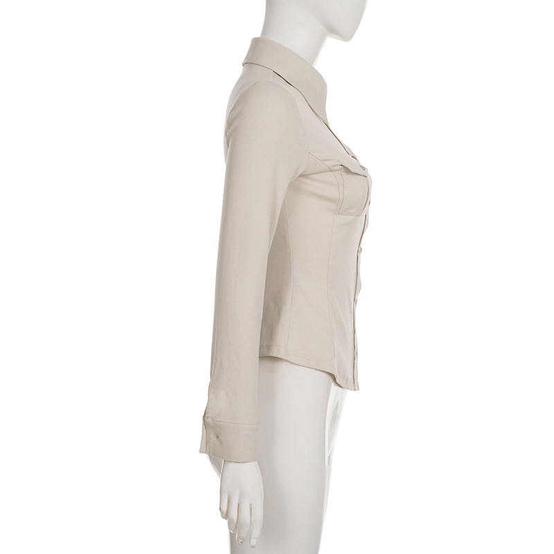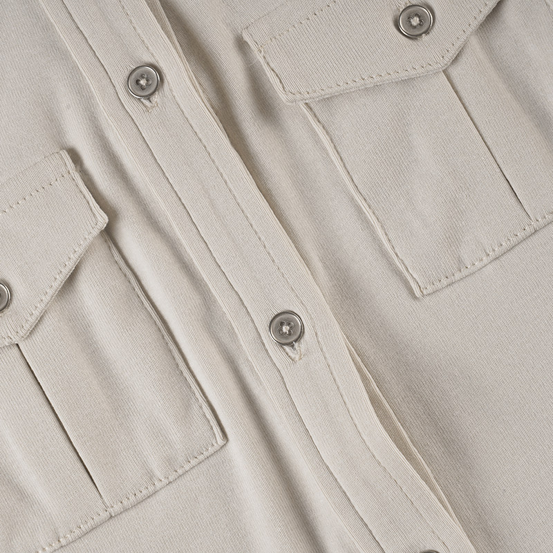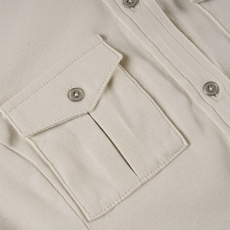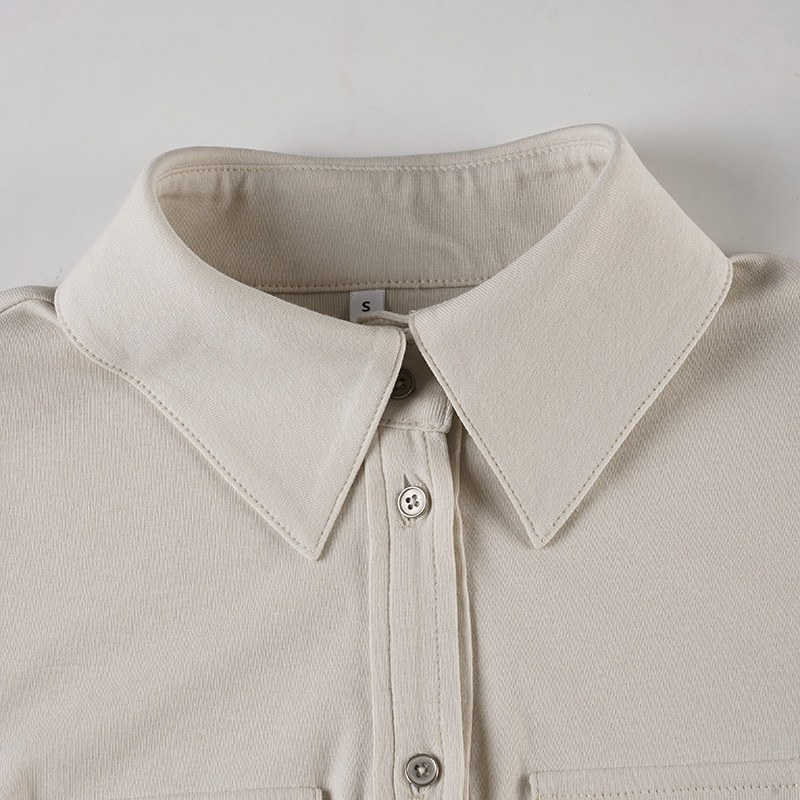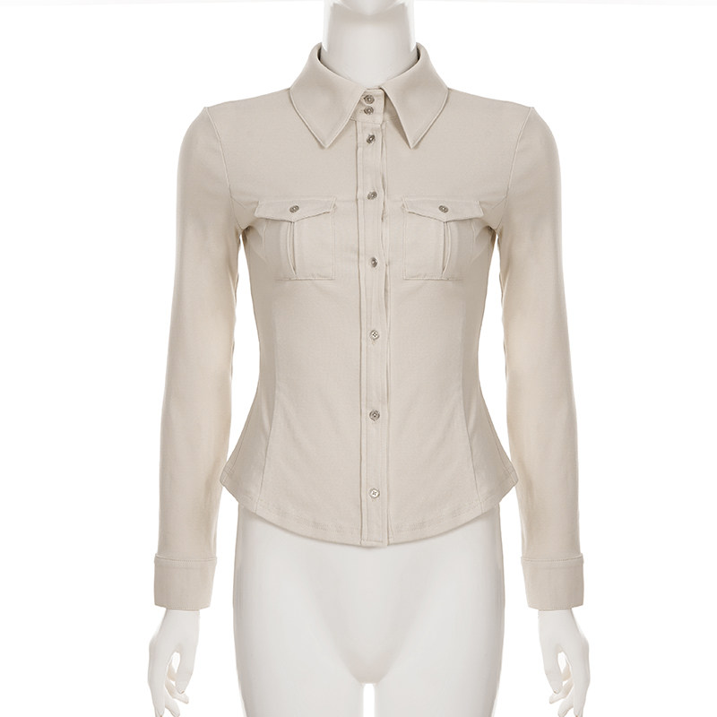 ROCKMORE【酷帥街頭】米白色繙領單排釦口袋工裝襯衫辣妹修身上衣