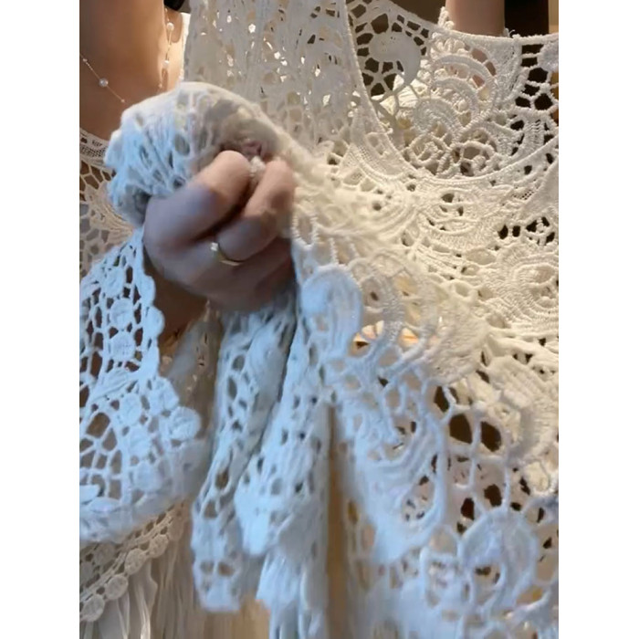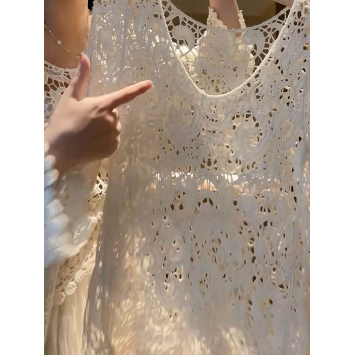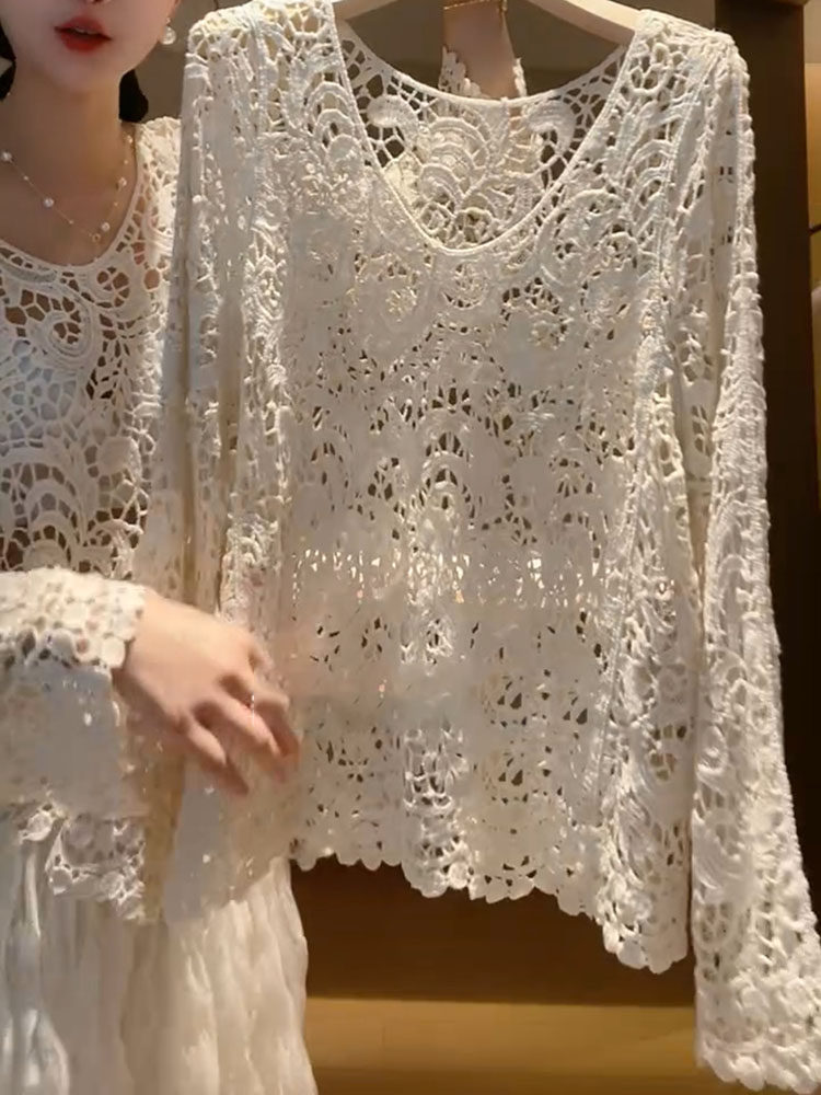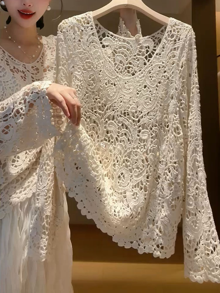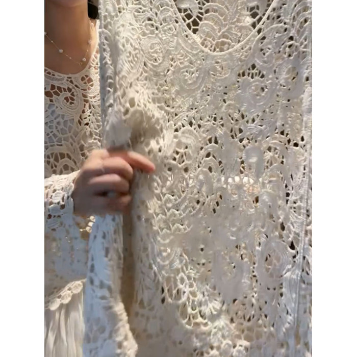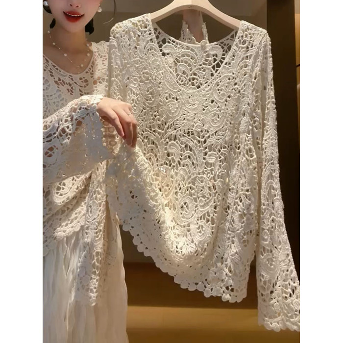 2025年秋新款精緻氣質顯瘦法式復古漂亮針織寬鬆小衆勾花鏤空上衣