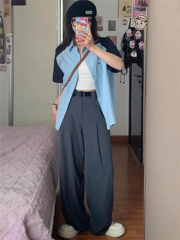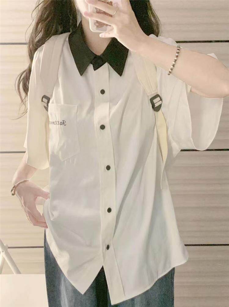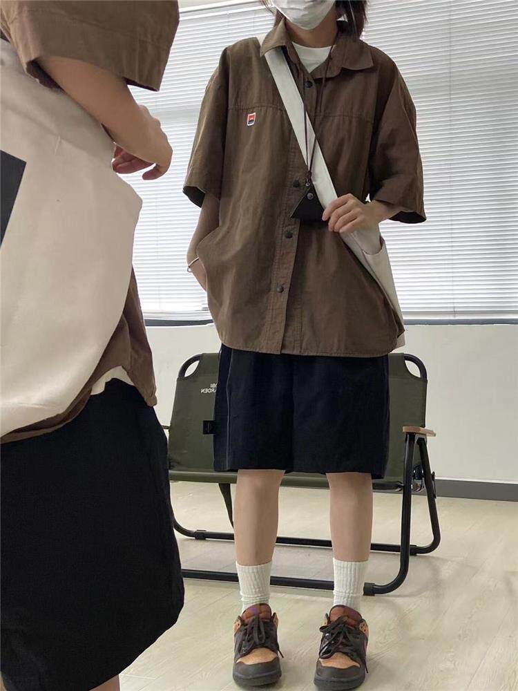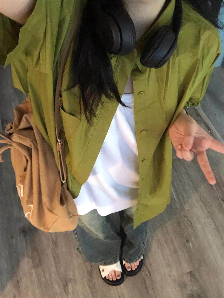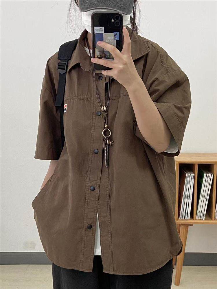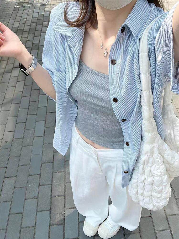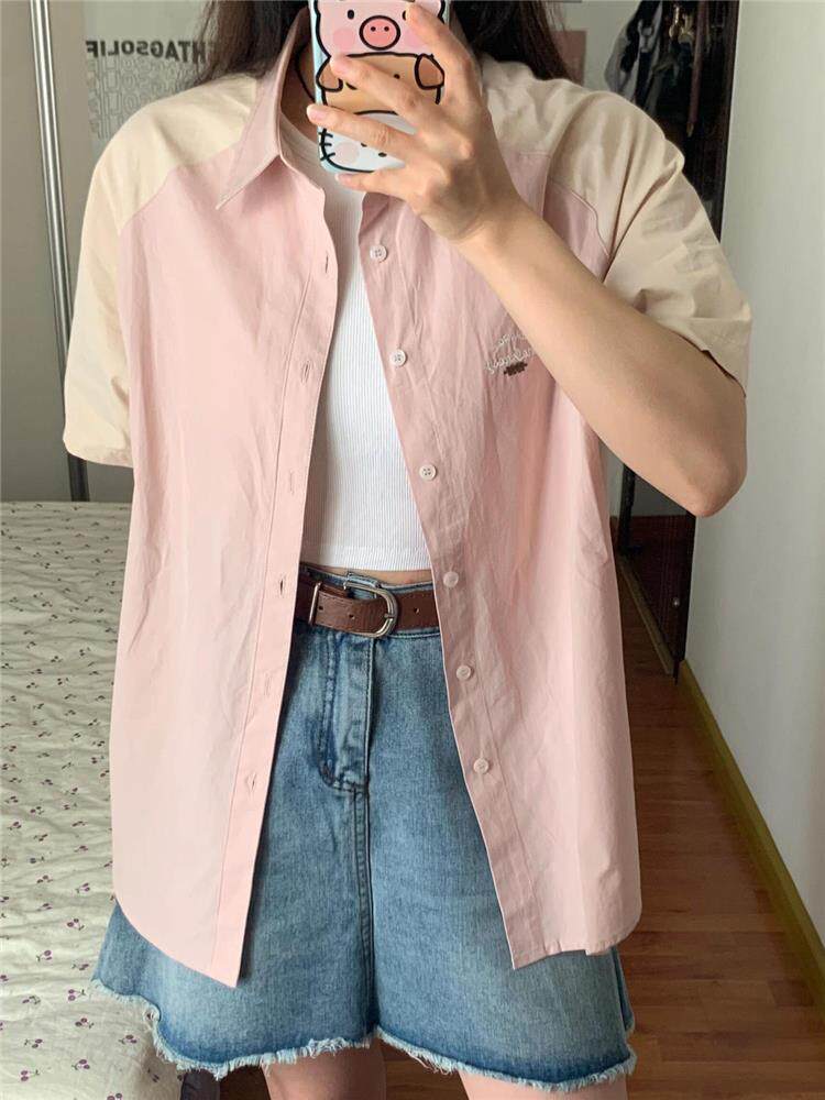 森系藍色短袖襯衫女小個子2025夏季新款上衣寬鬆遮肉百搭襯衣外穿