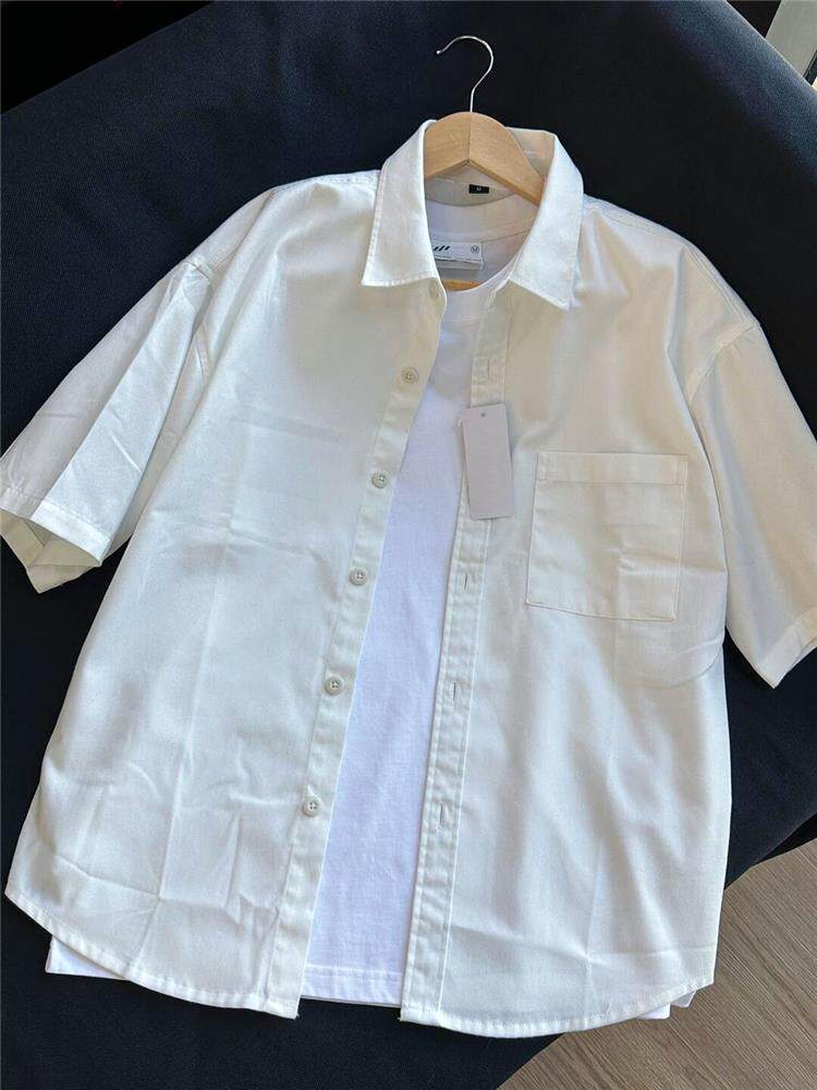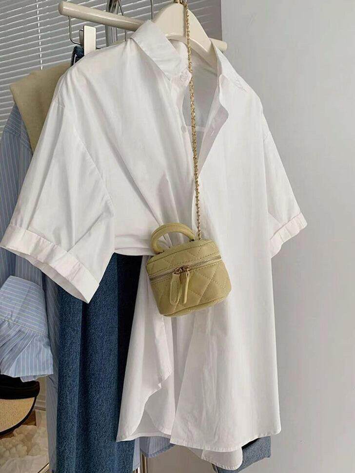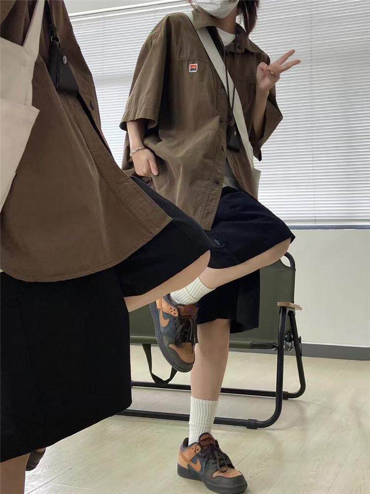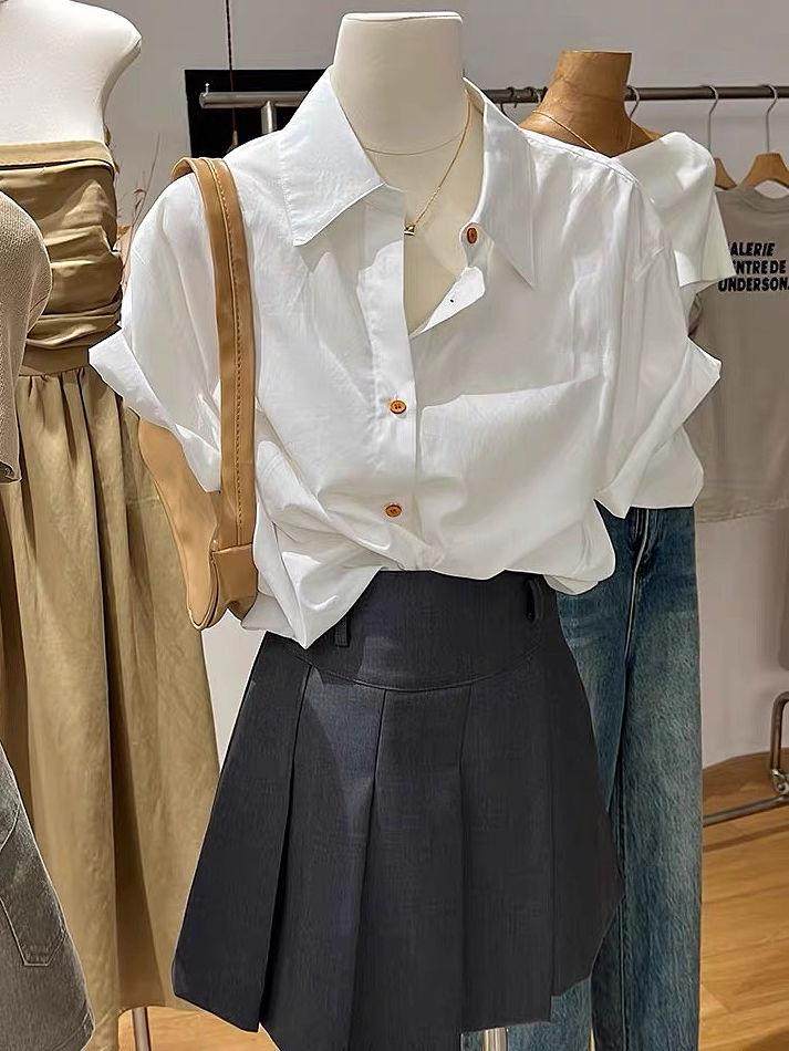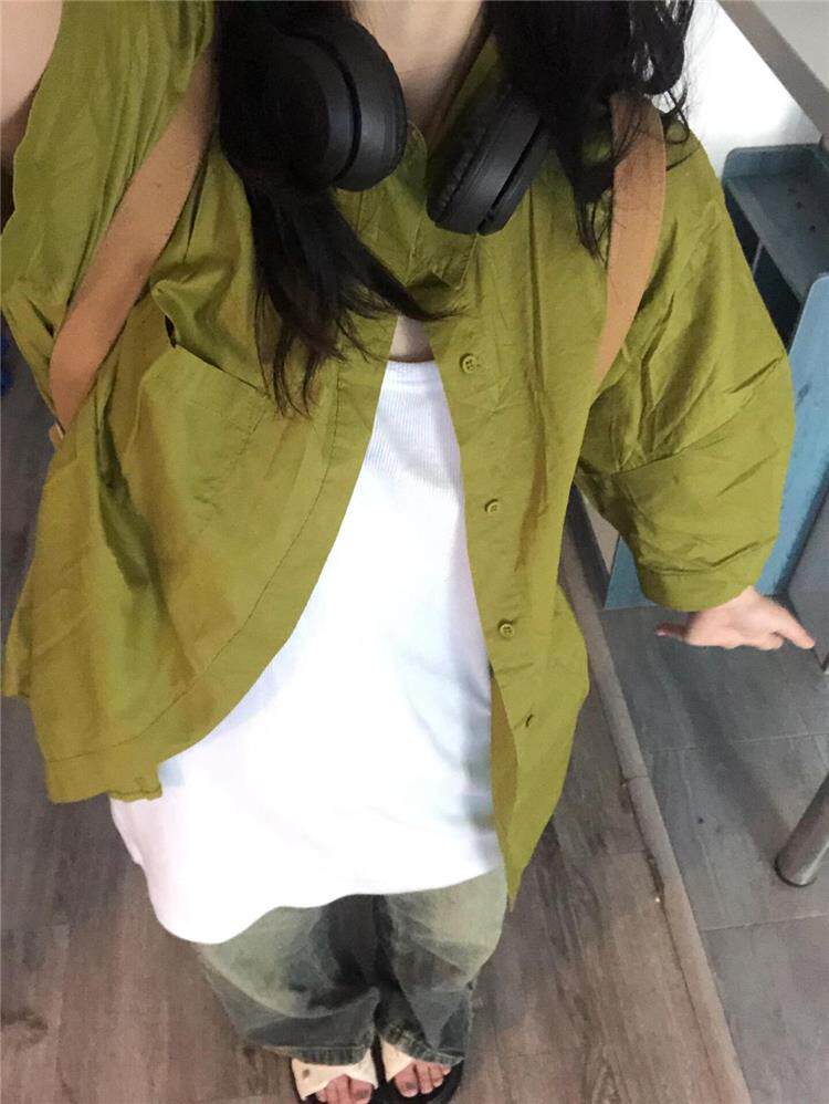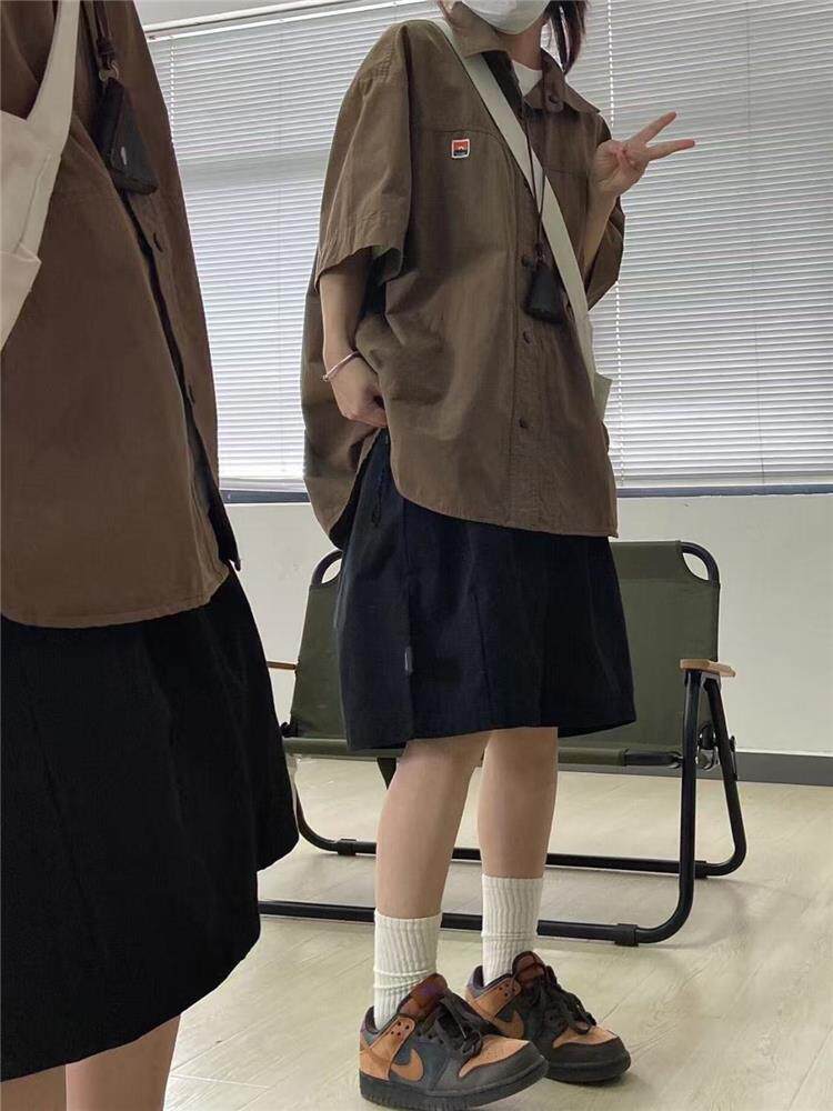 森系藍色短袖襯衫女小個子2025夏季新款上衣寬鬆遮肉百搭襯衣外穿