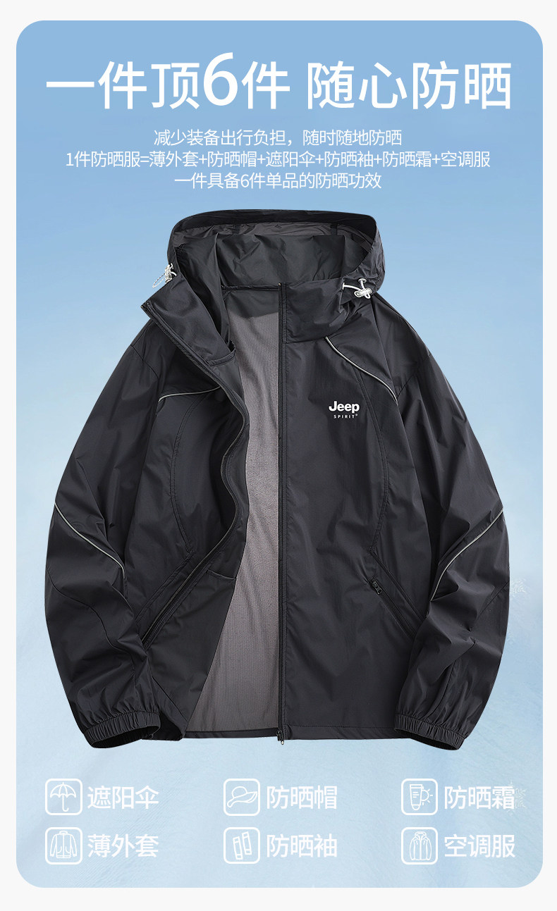 JEEP防曬衣女款夏季2025新款戶外防紫外線冰絲寬鬆薄款防曬服外套