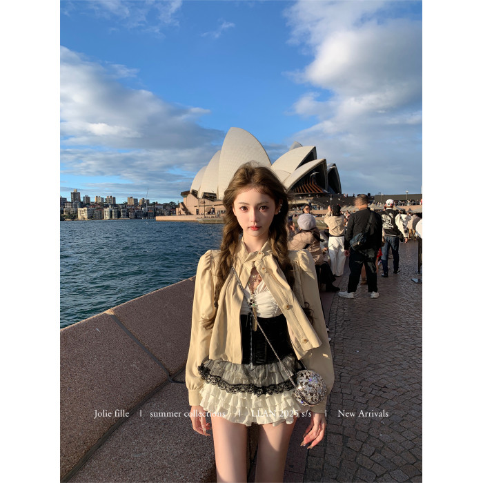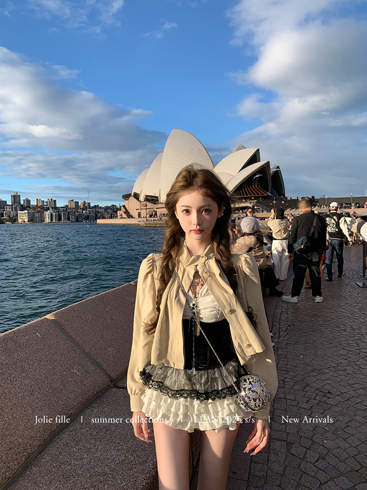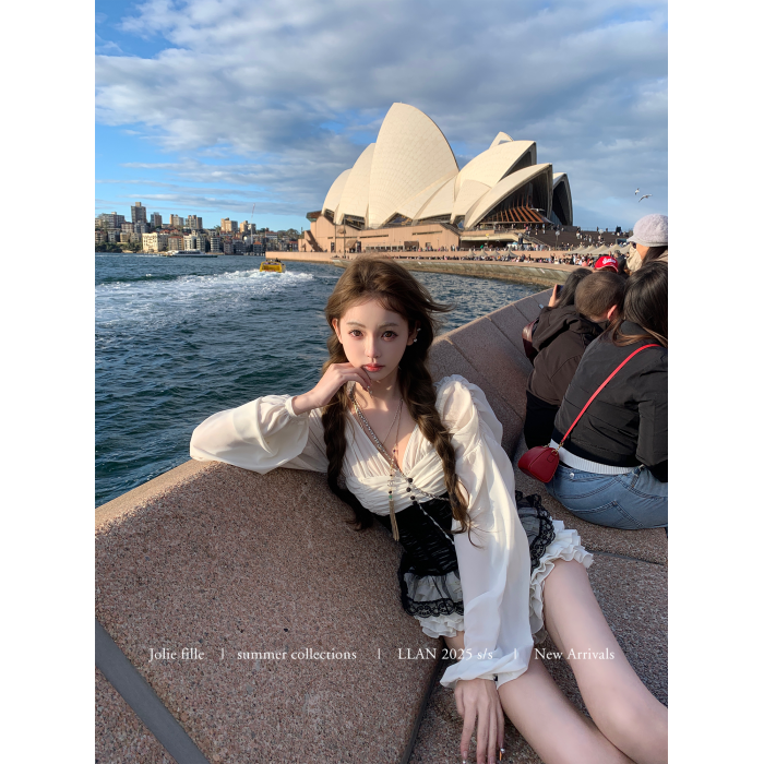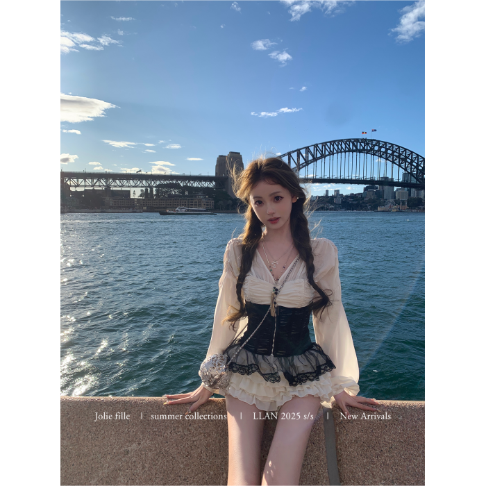 你的懶懶llan【拜佔庭】宮廷風性感V領上衣+半裙+魚骨腰封套裝女
