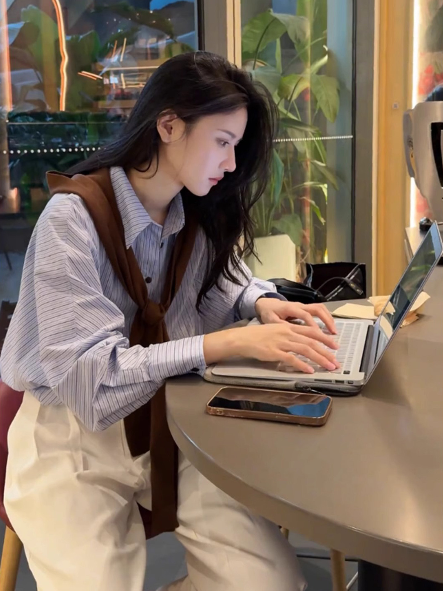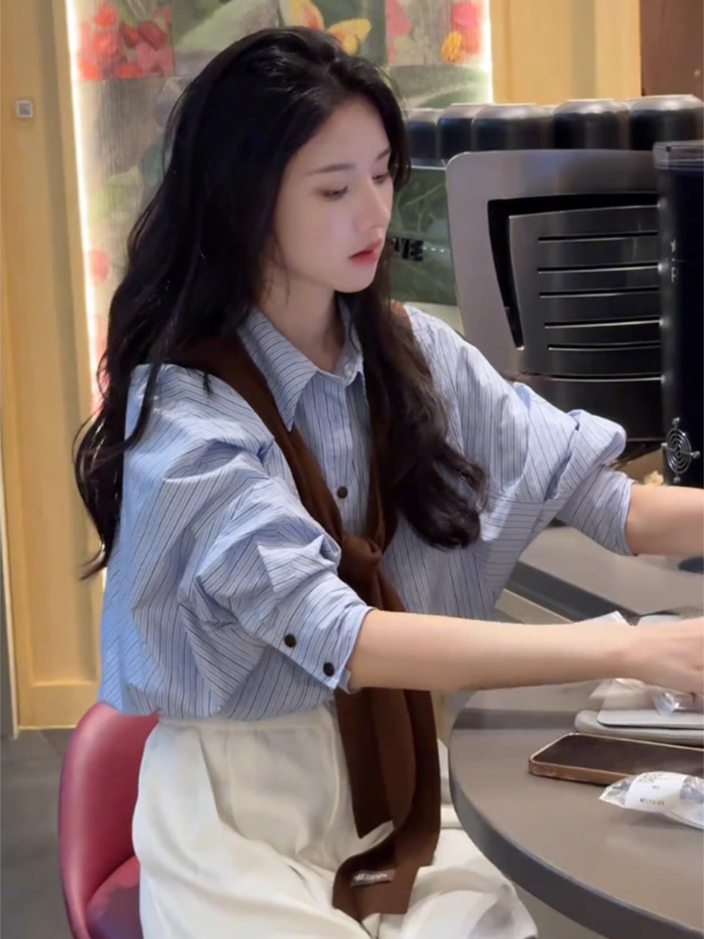 藍色條紋襯衫女春秋2025新款寬鬆小個子內搭曡穿襯衣職業長袖上衣