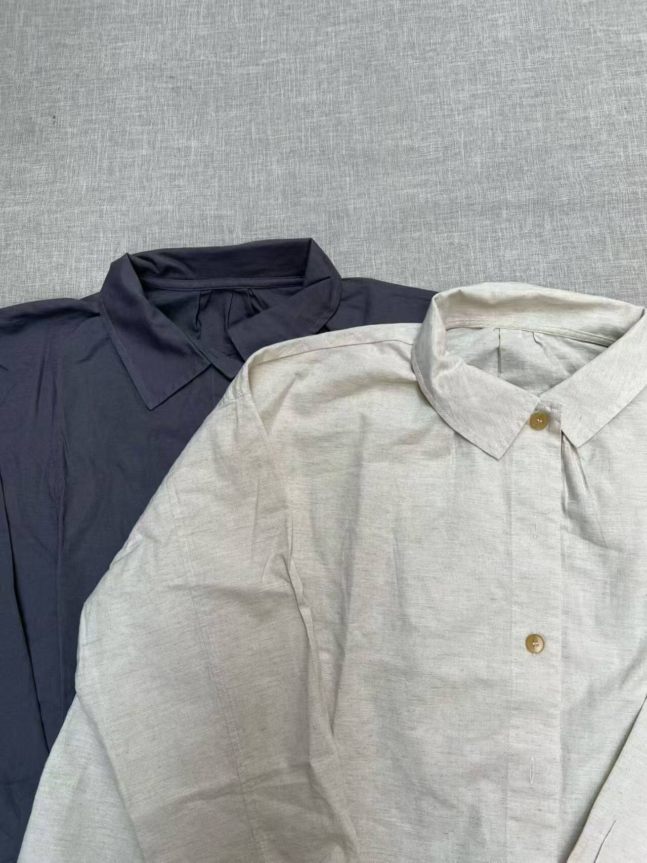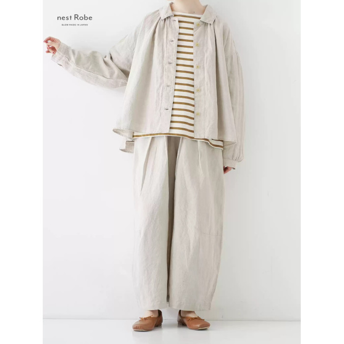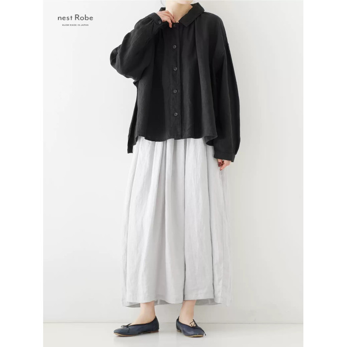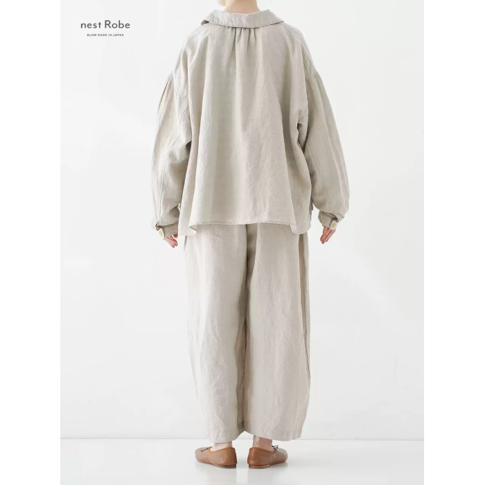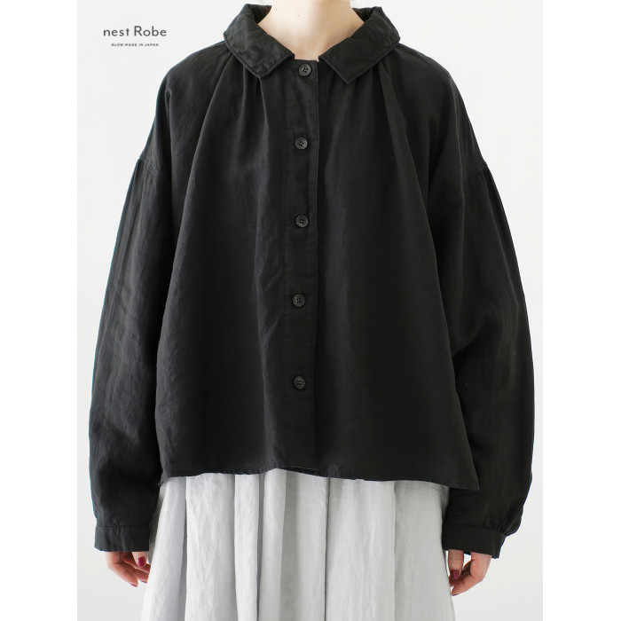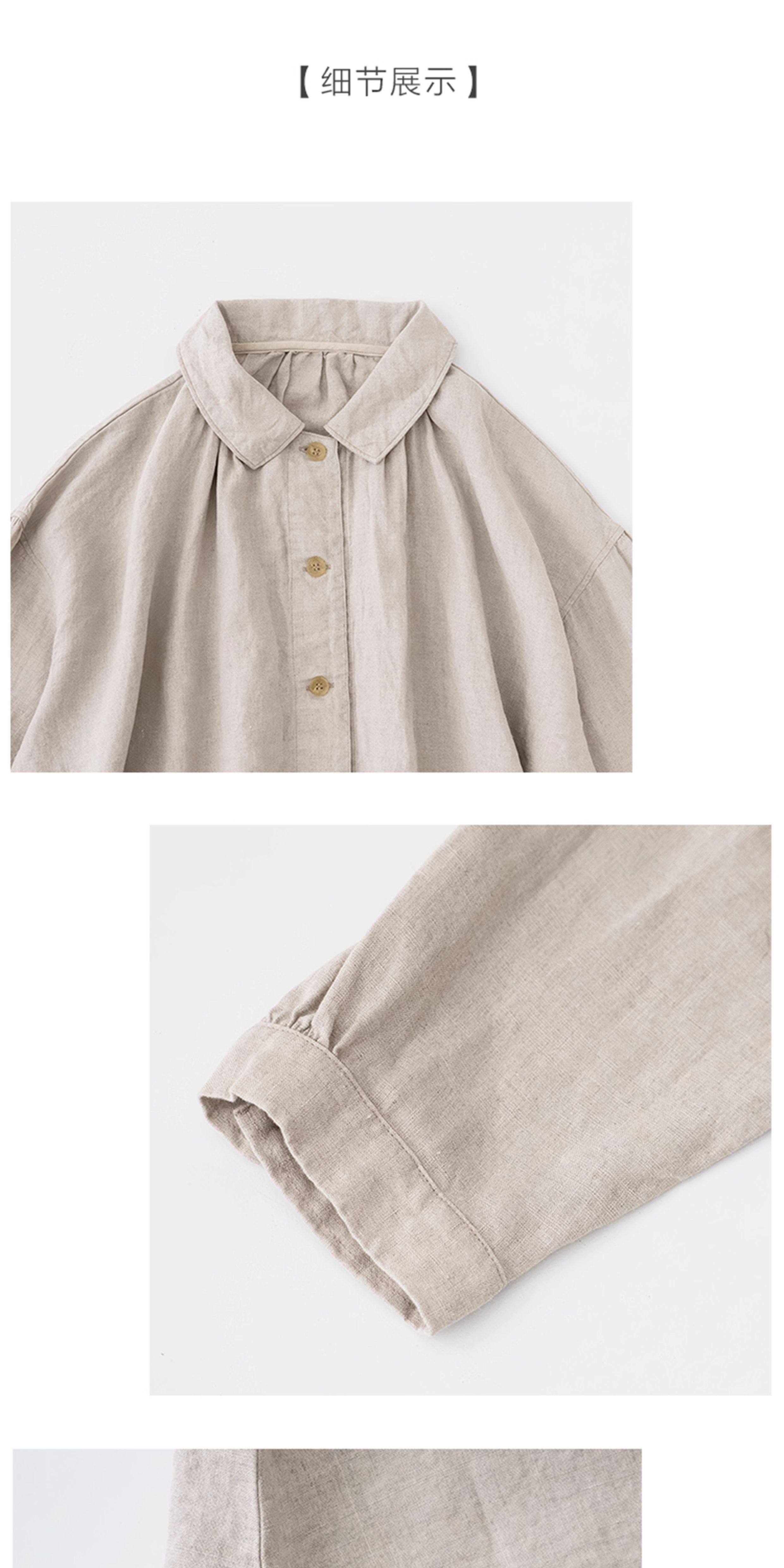 日系原單nest robe家2025新品亞麻短款簡約經典可愛繙領襯衫襯衣