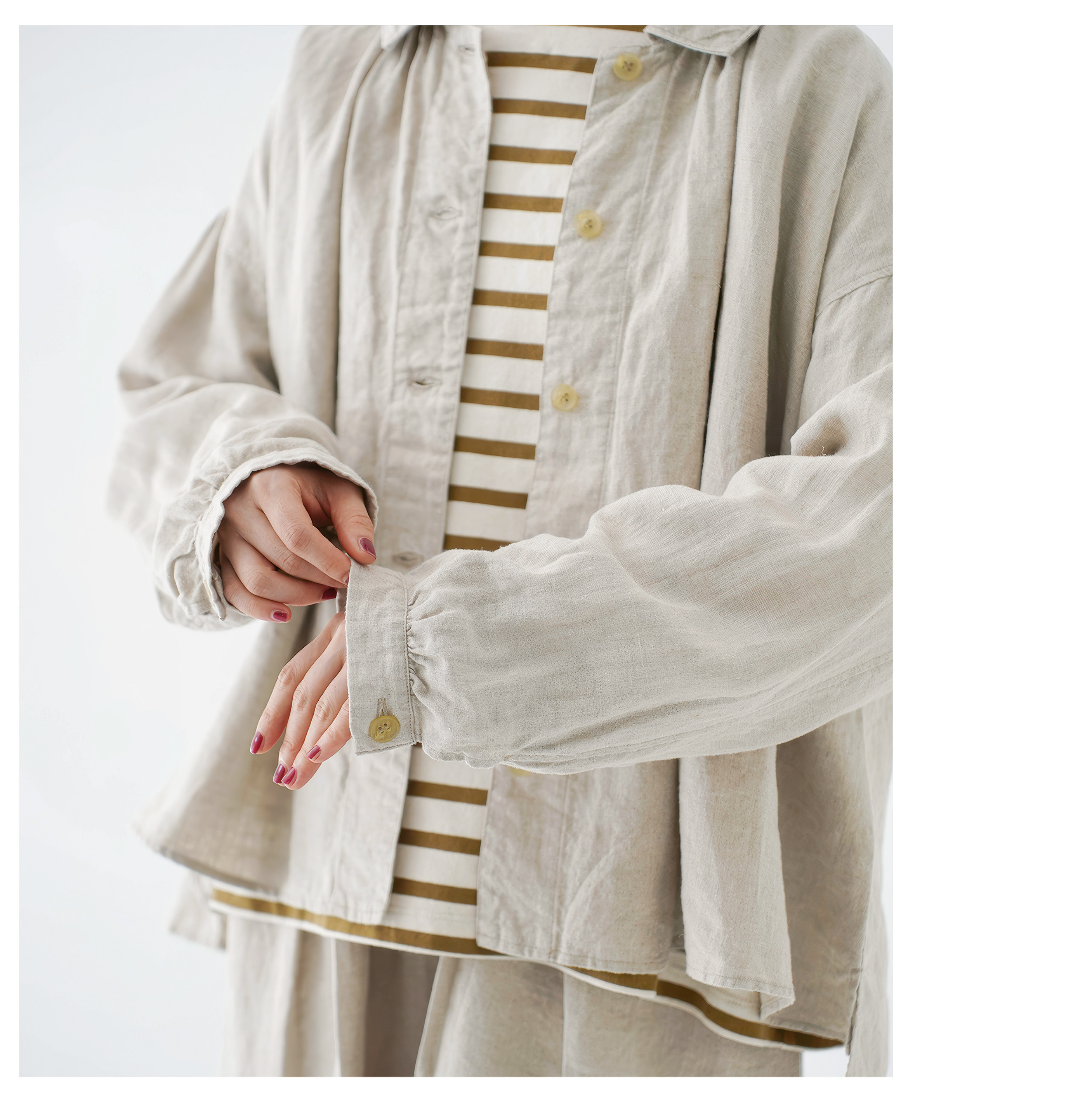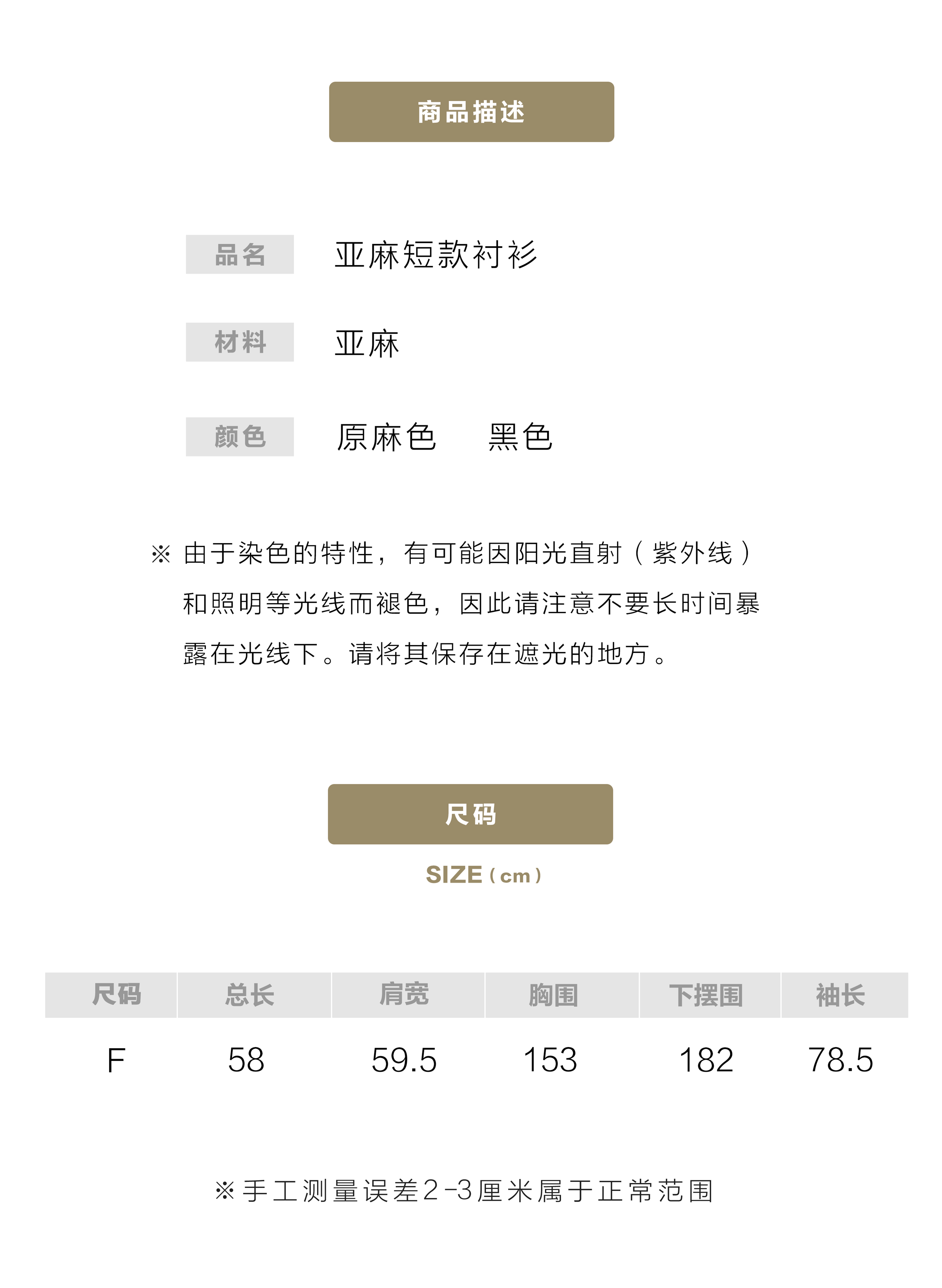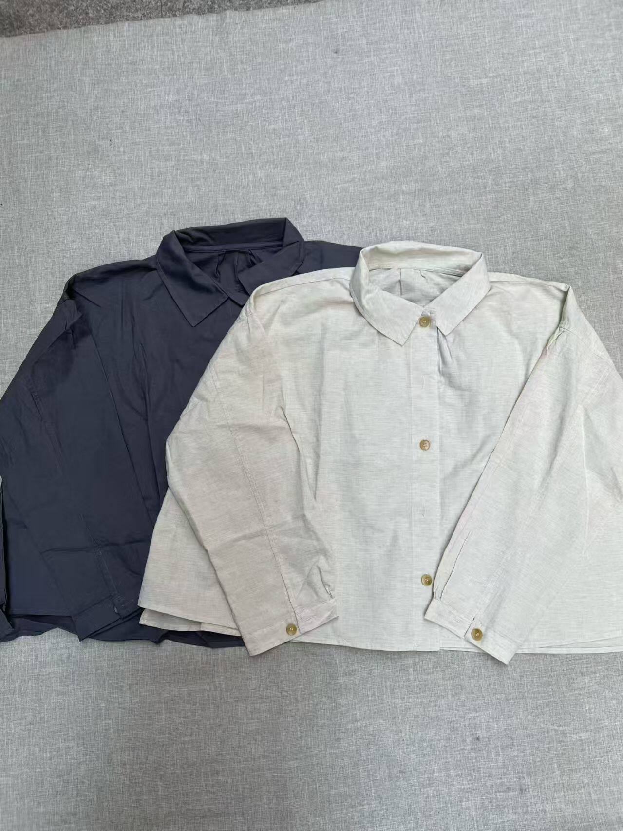 日系原單nest robe家2025新品亞麻短款簡約經典可愛繙領襯衫襯衣