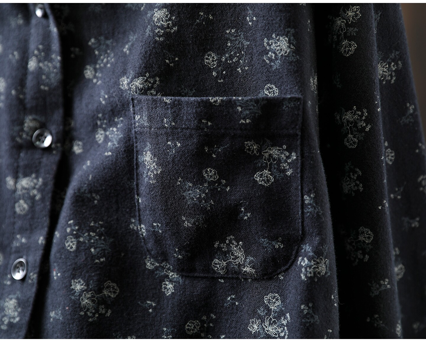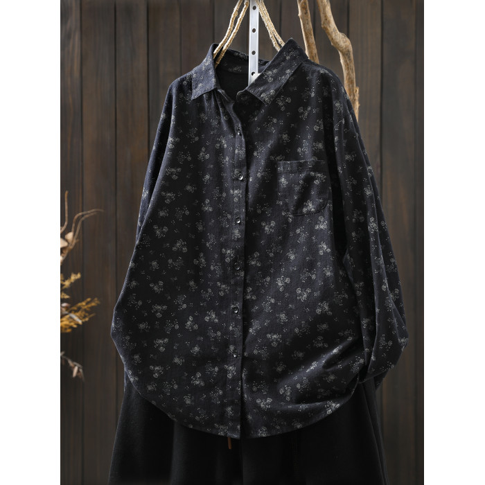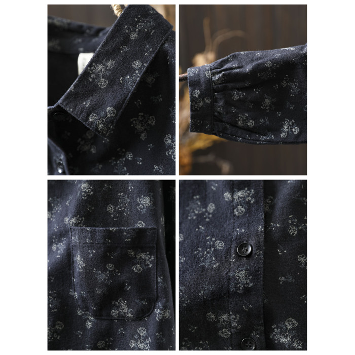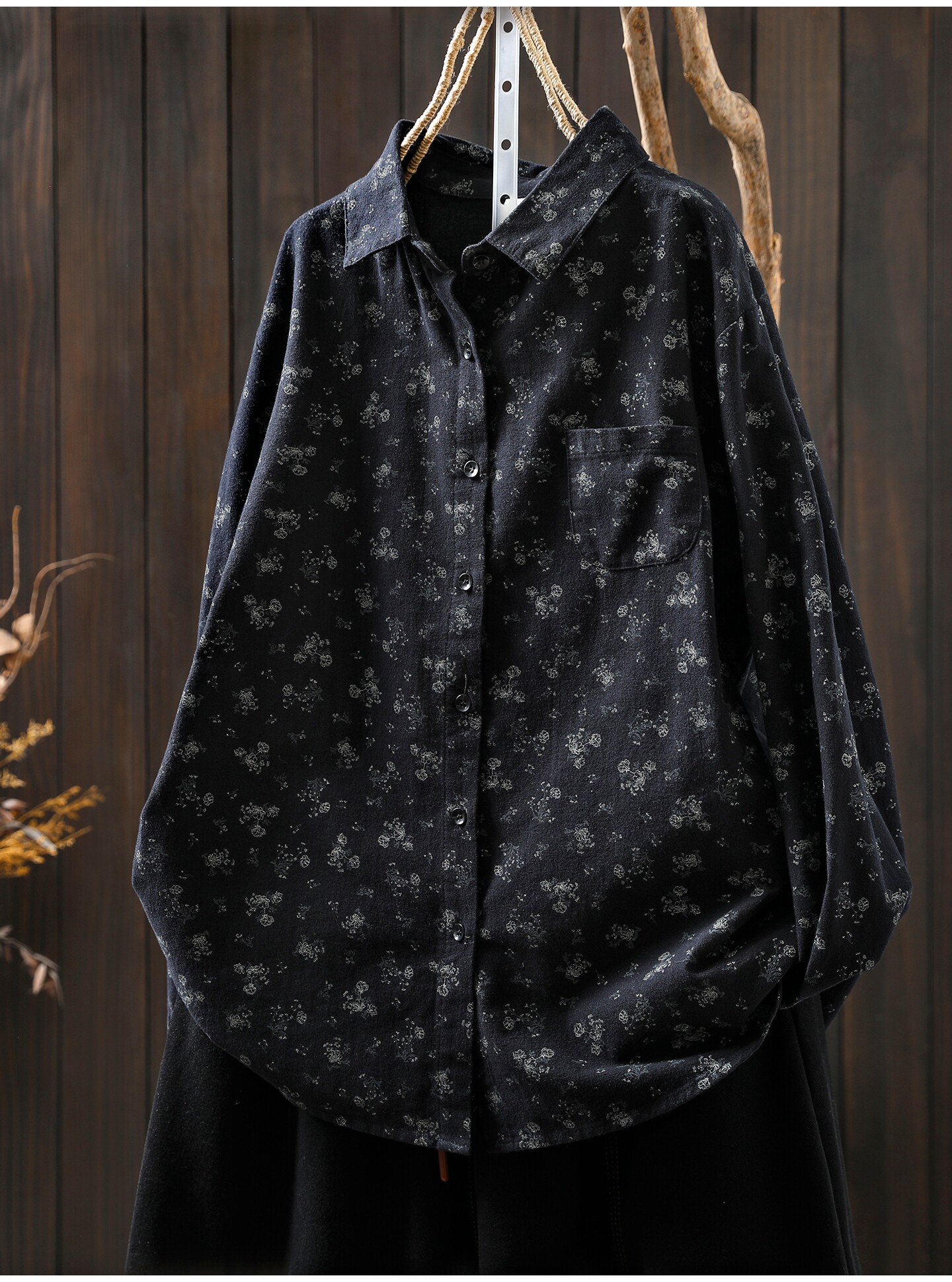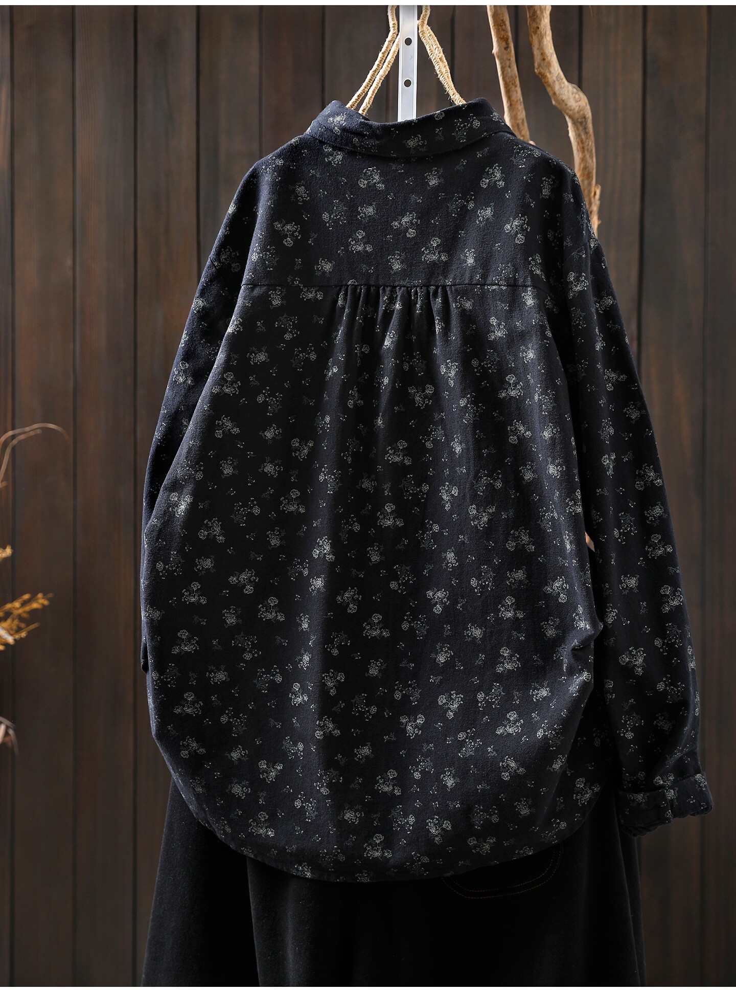 碎花襯衫女款2025新款春秋黑色純棉印花胖mm時尚寬鬆顯瘦文藝襯衣