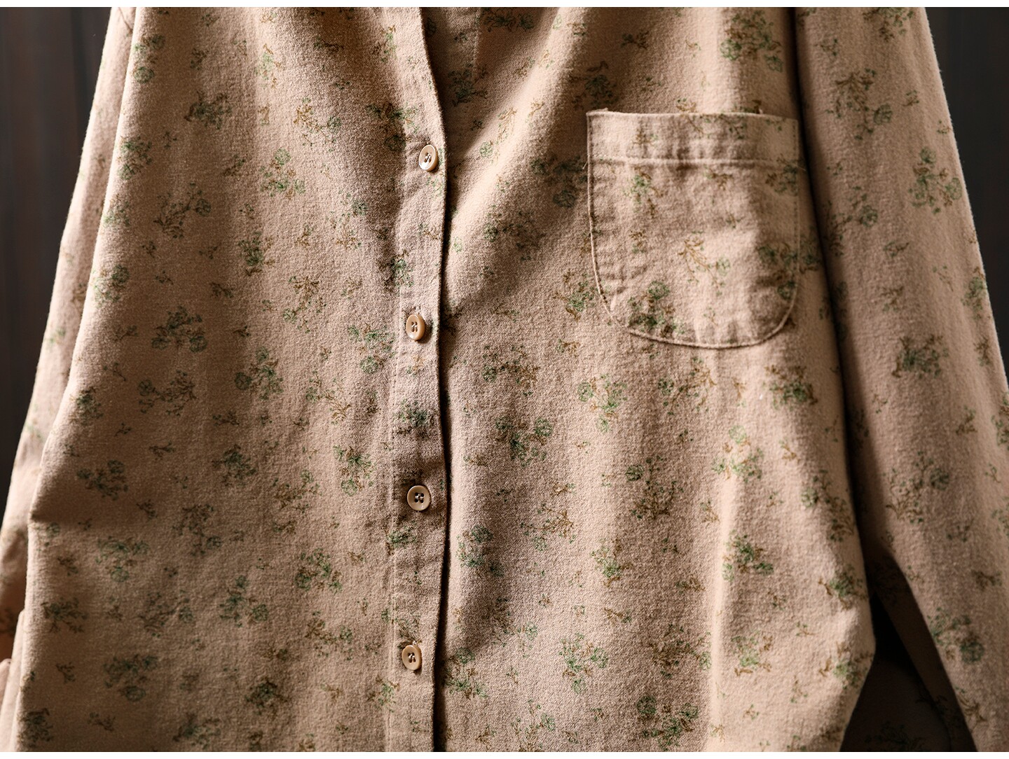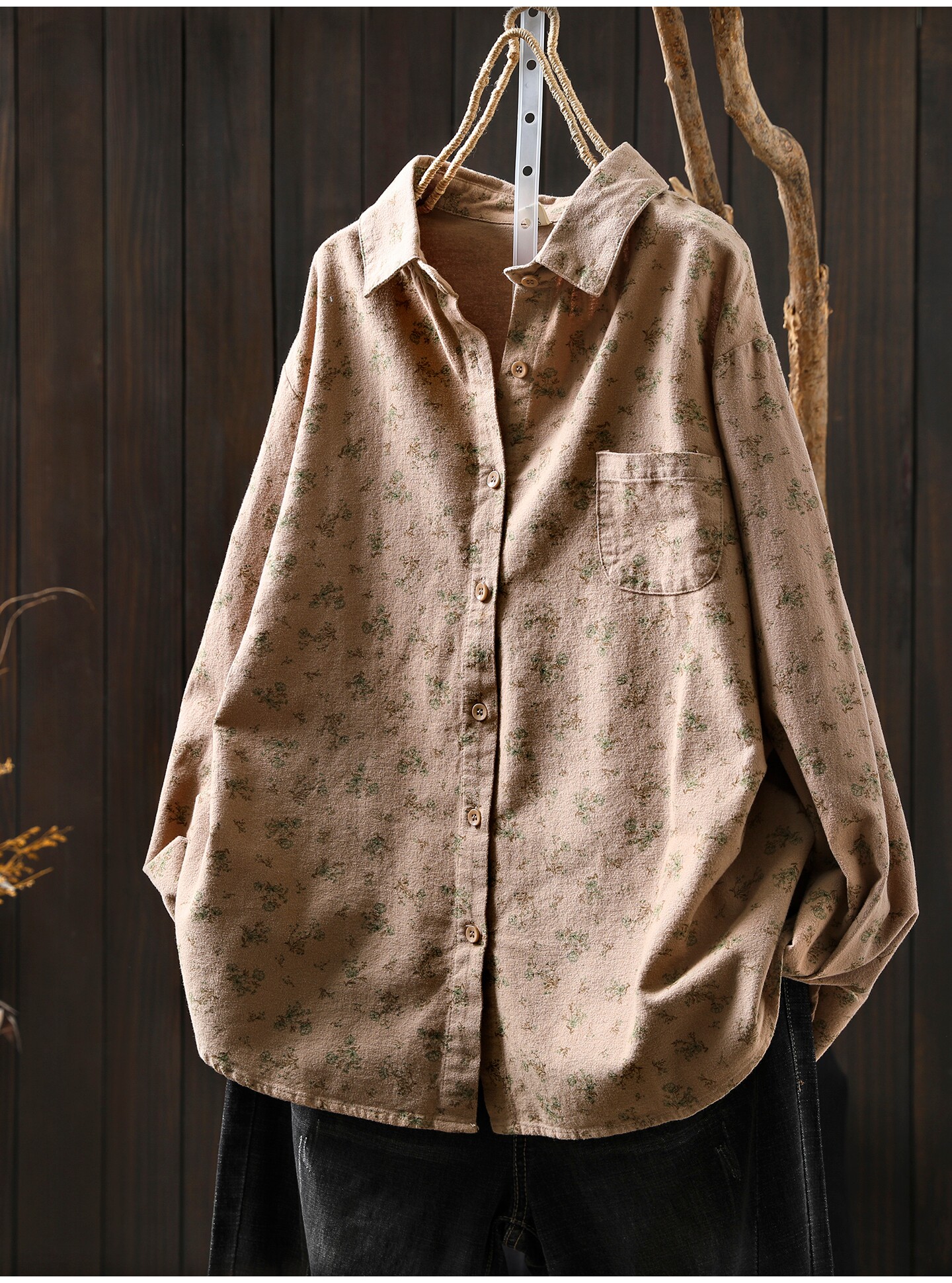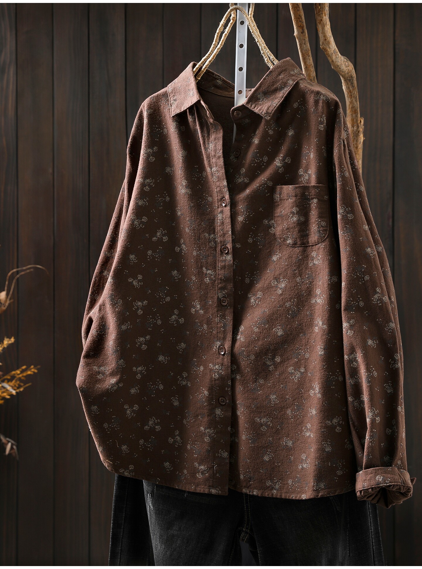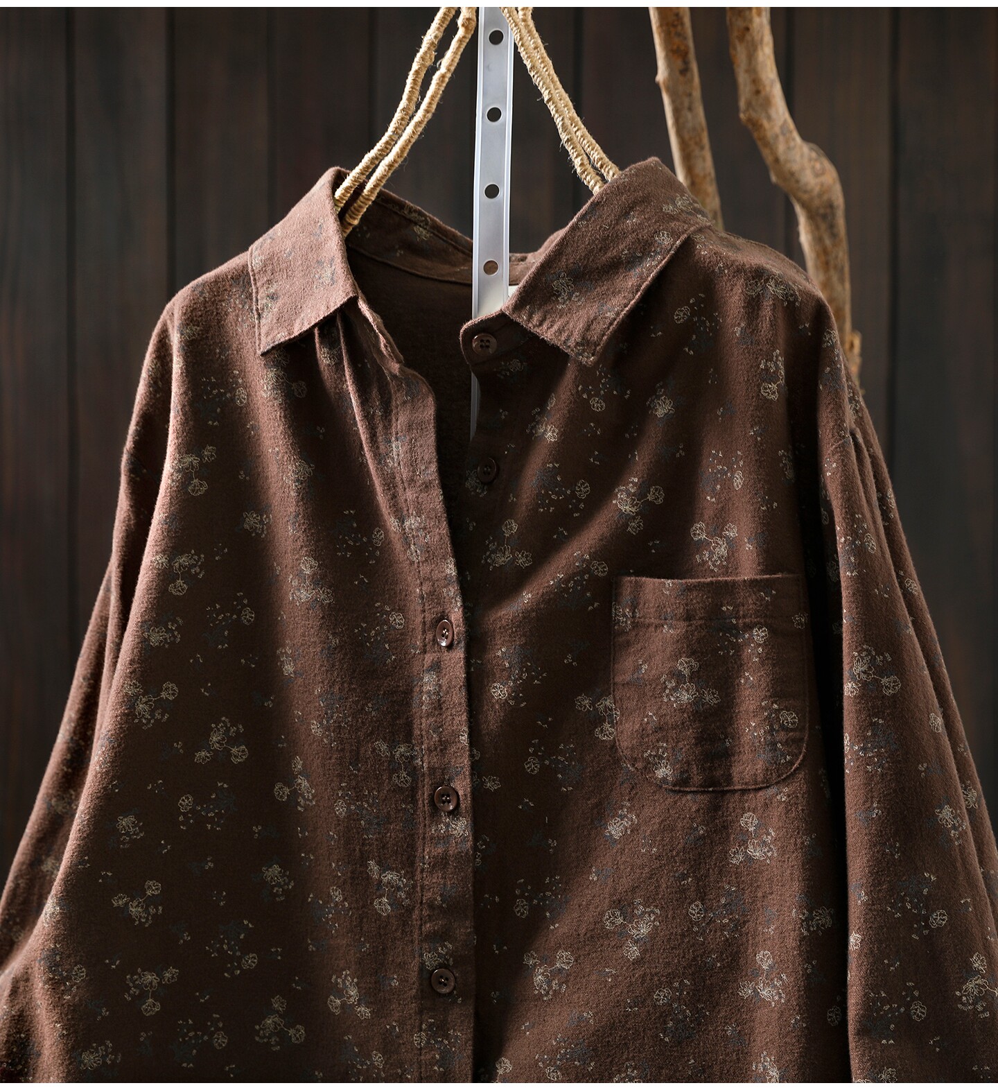 碎花襯衫女款2025新款春秋黑色純棉印花胖mm時尚寬鬆顯瘦文藝襯衣