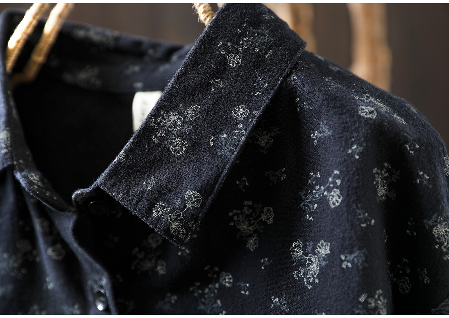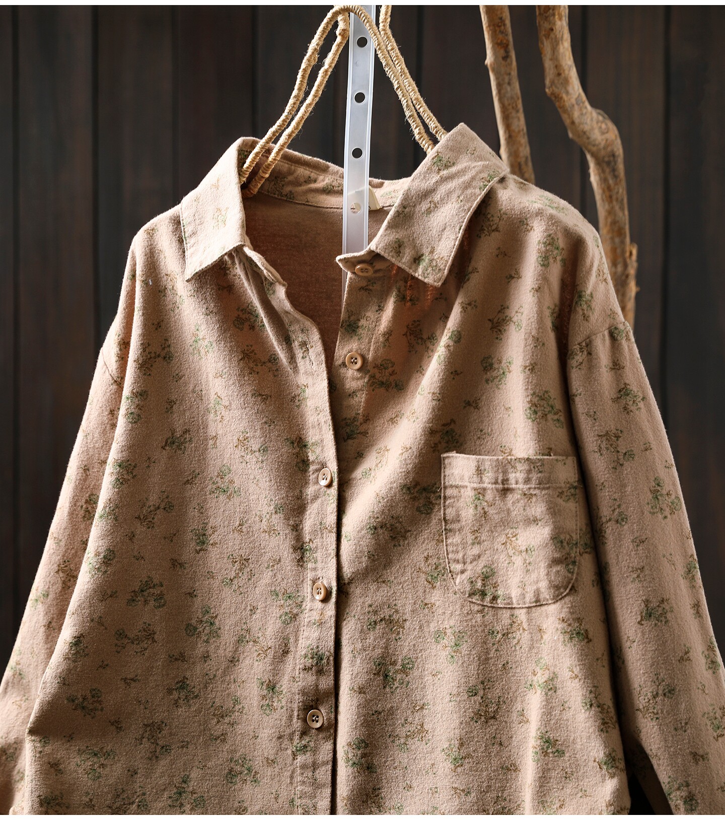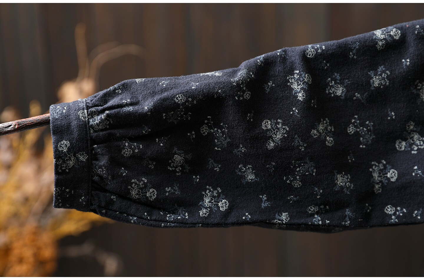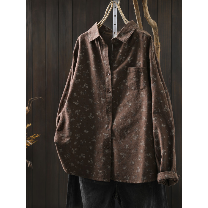 碎花襯衫女款2025新款春秋黑色純棉印花胖mm時尚寬鬆顯瘦文藝襯衣