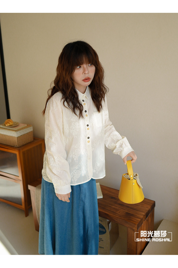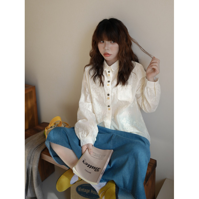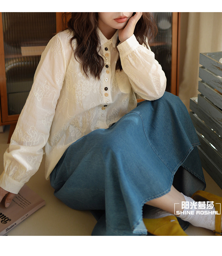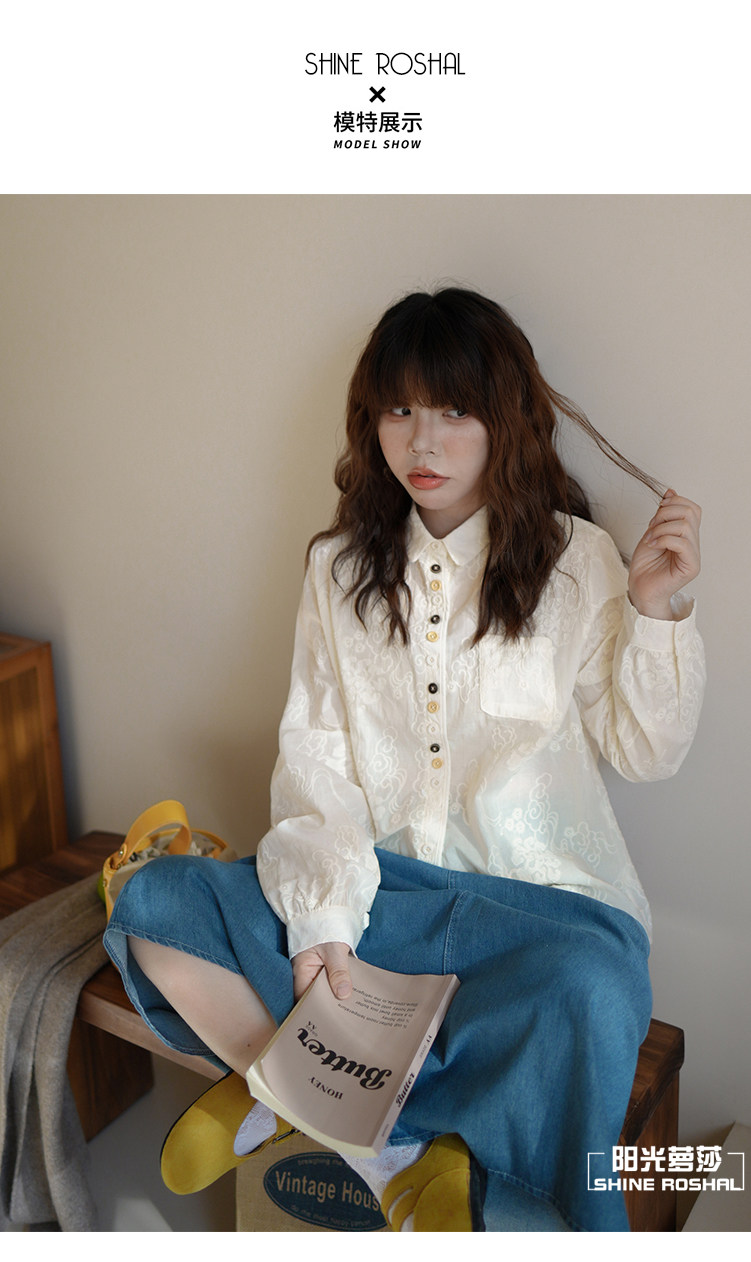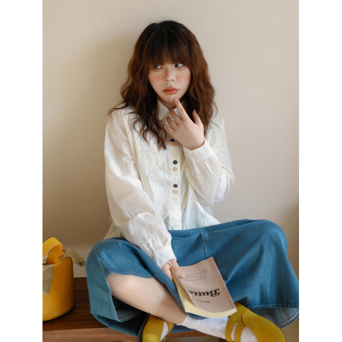 設計感法式純色繙領蕾絲長袖襯衫女春季新款高級感洋氣減齡上衣