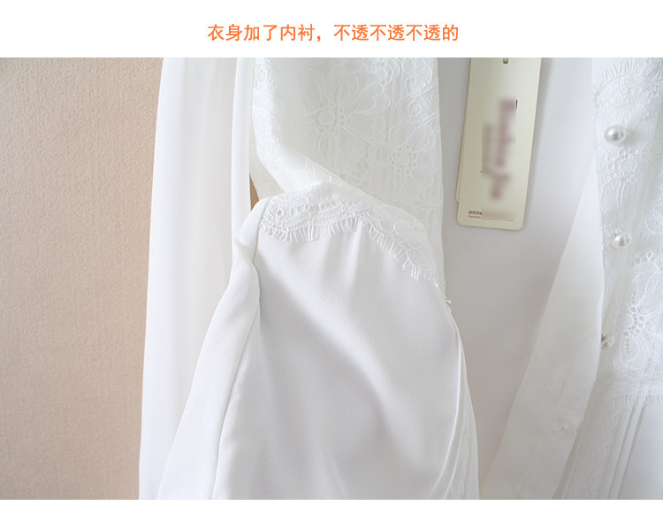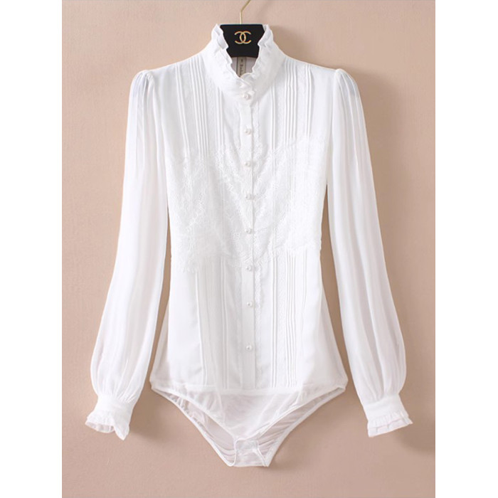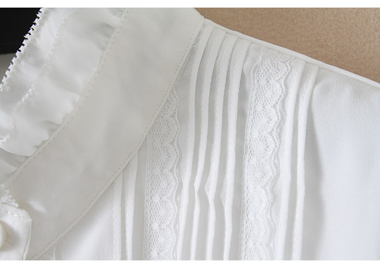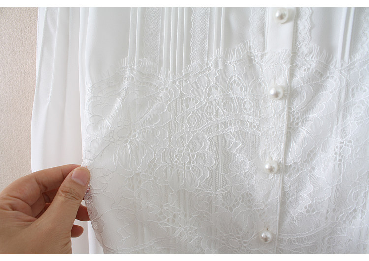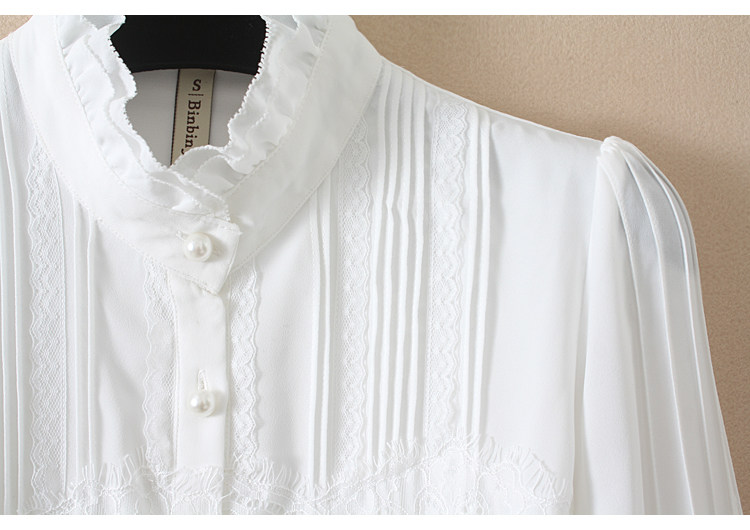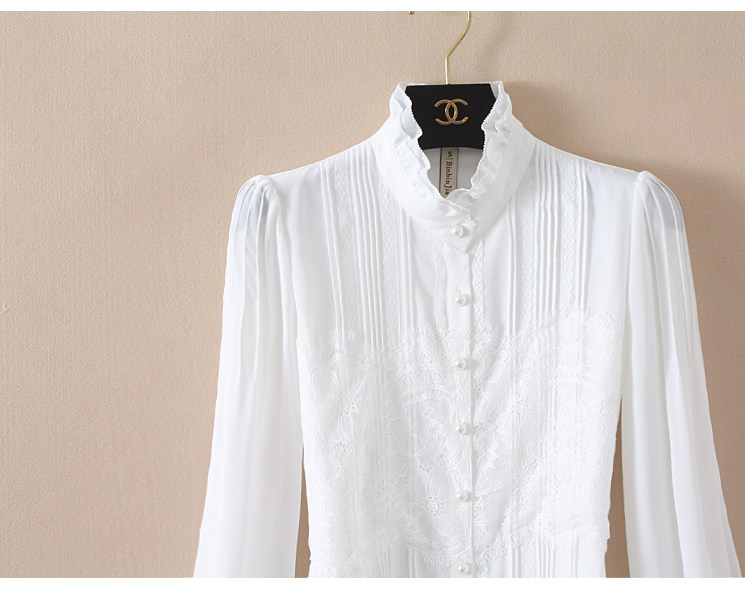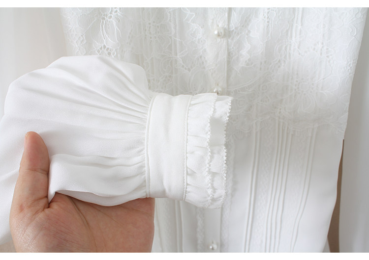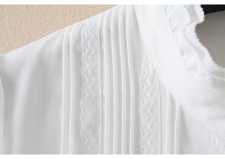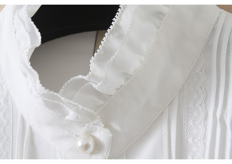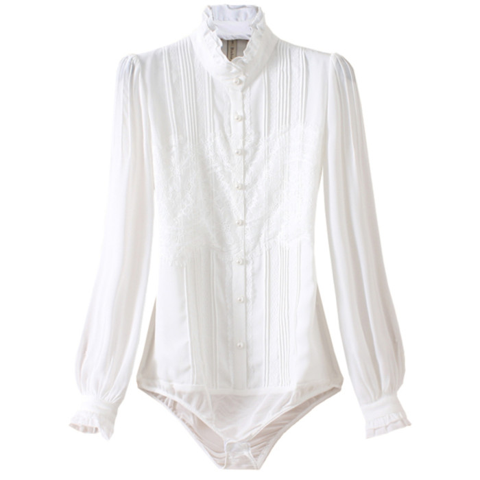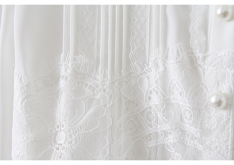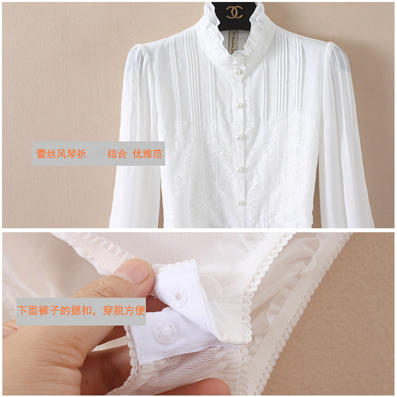 優雅名媛高級飄逸雪紡襯衫女蕾絲花邊木耳領小衆連體襯衣白色新款