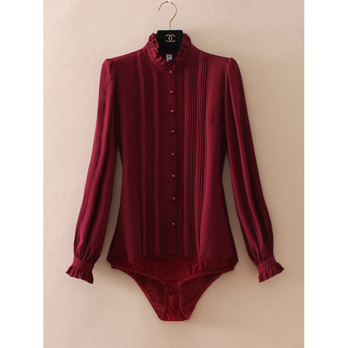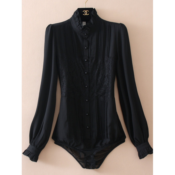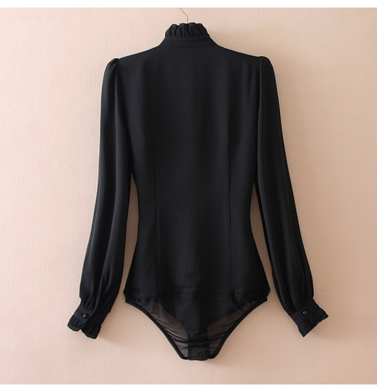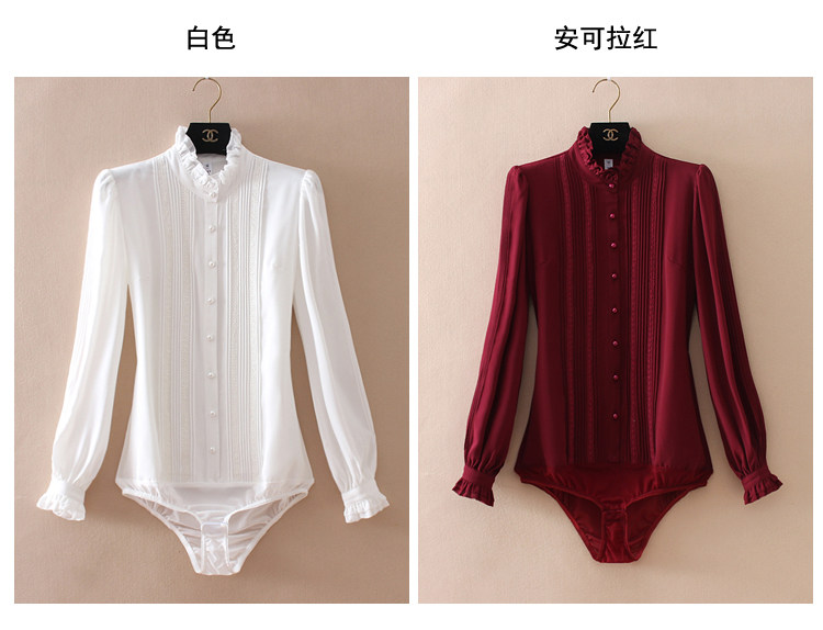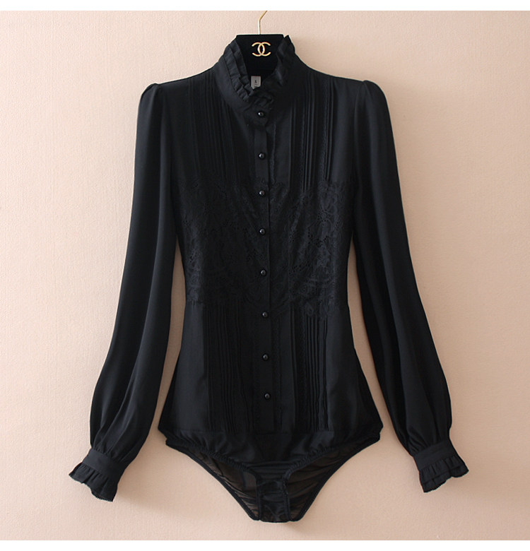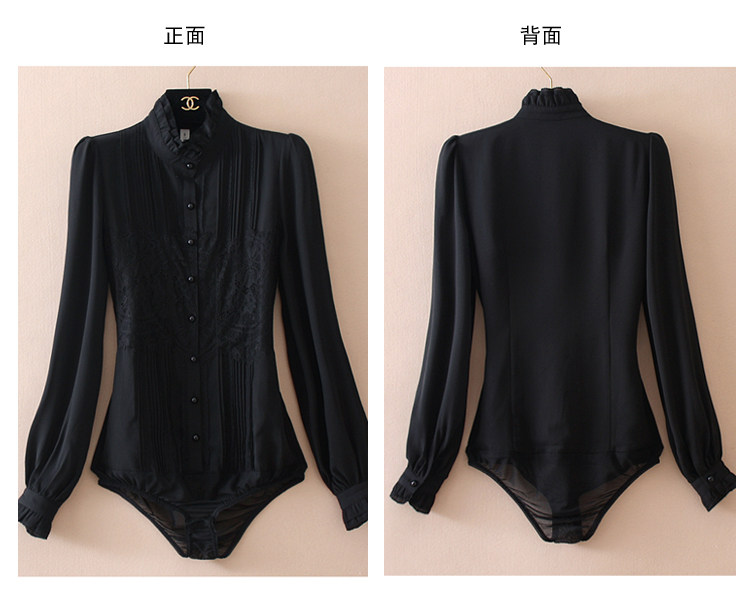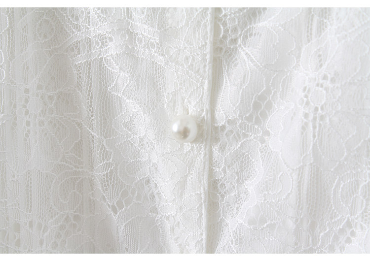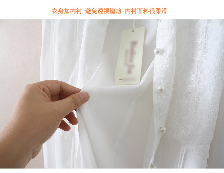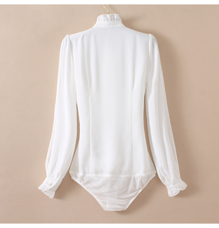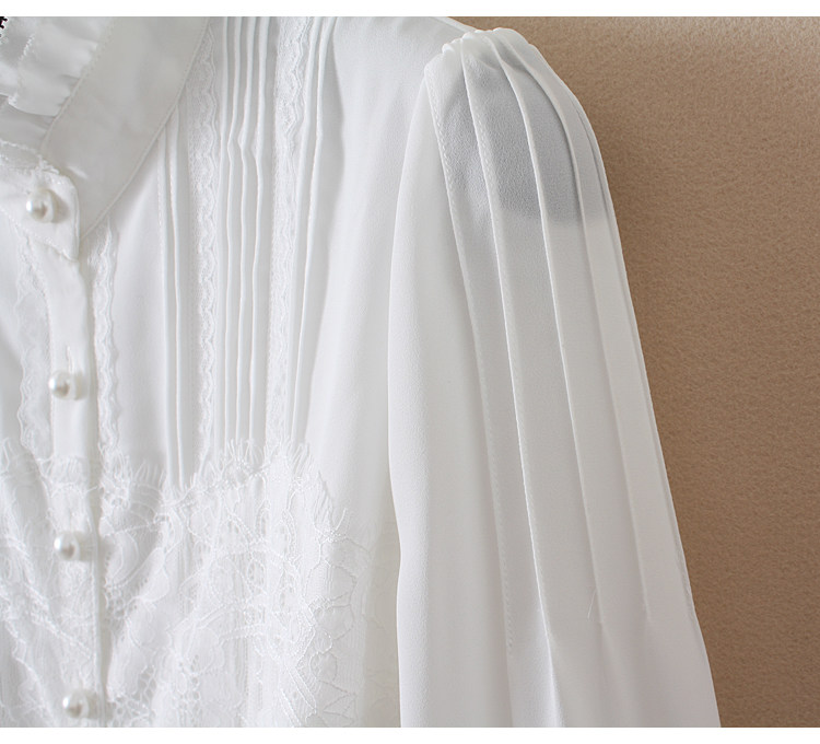 優雅名媛高級飄逸雪紡襯衫女蕾絲花邊木耳領小衆連體襯衣白色新款