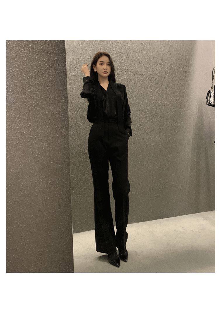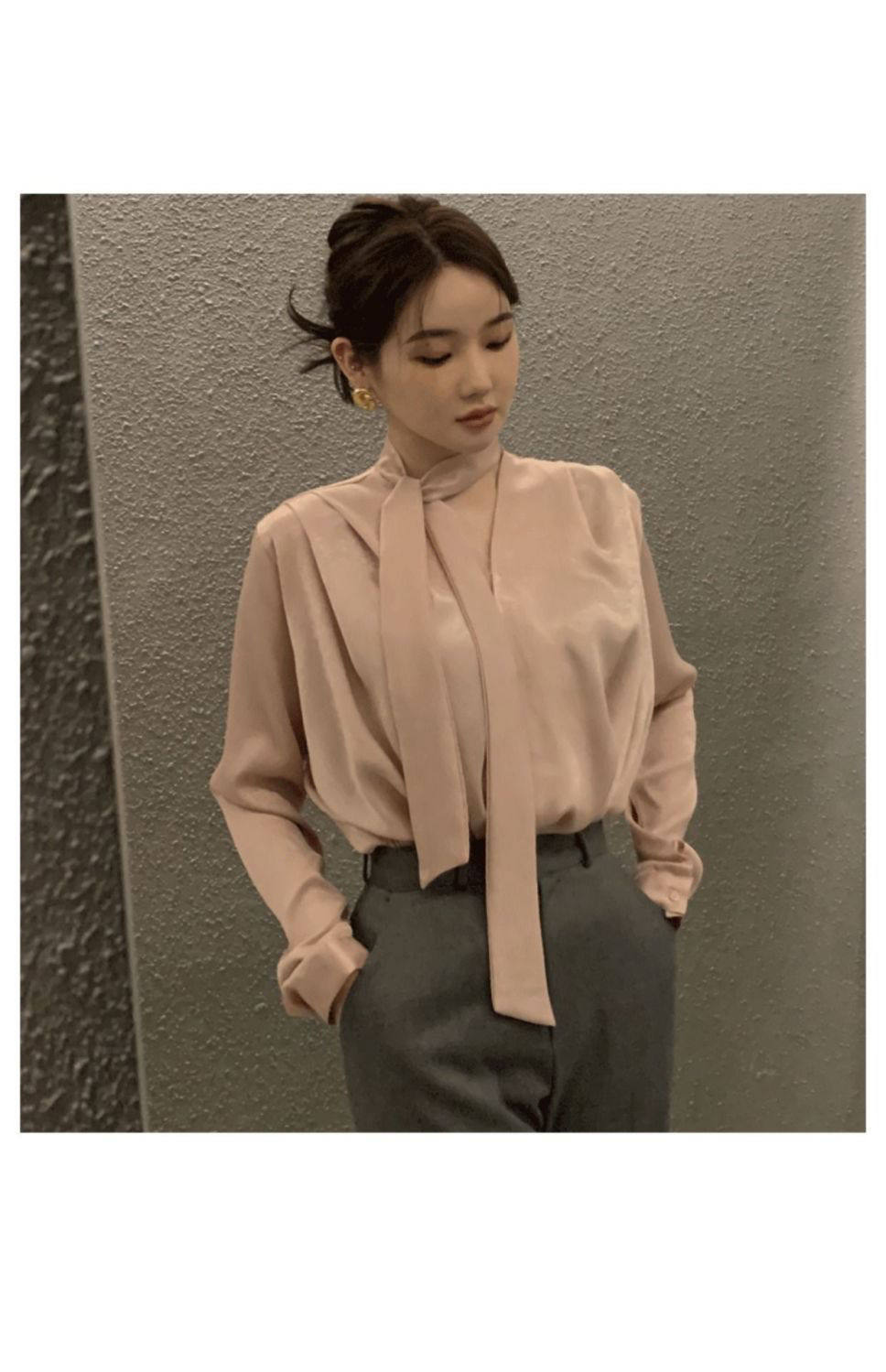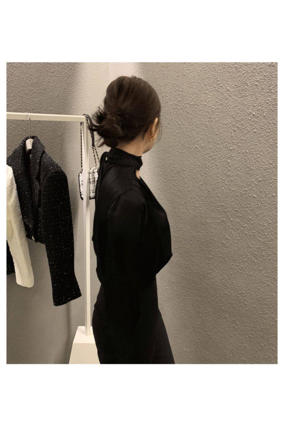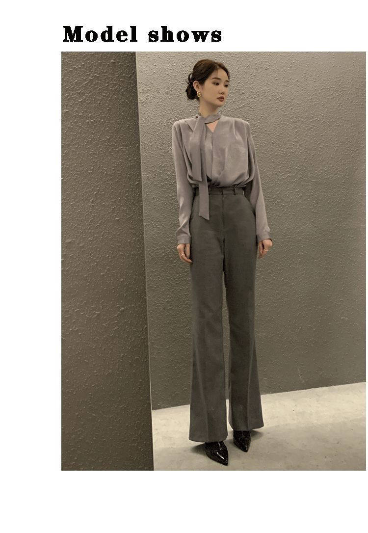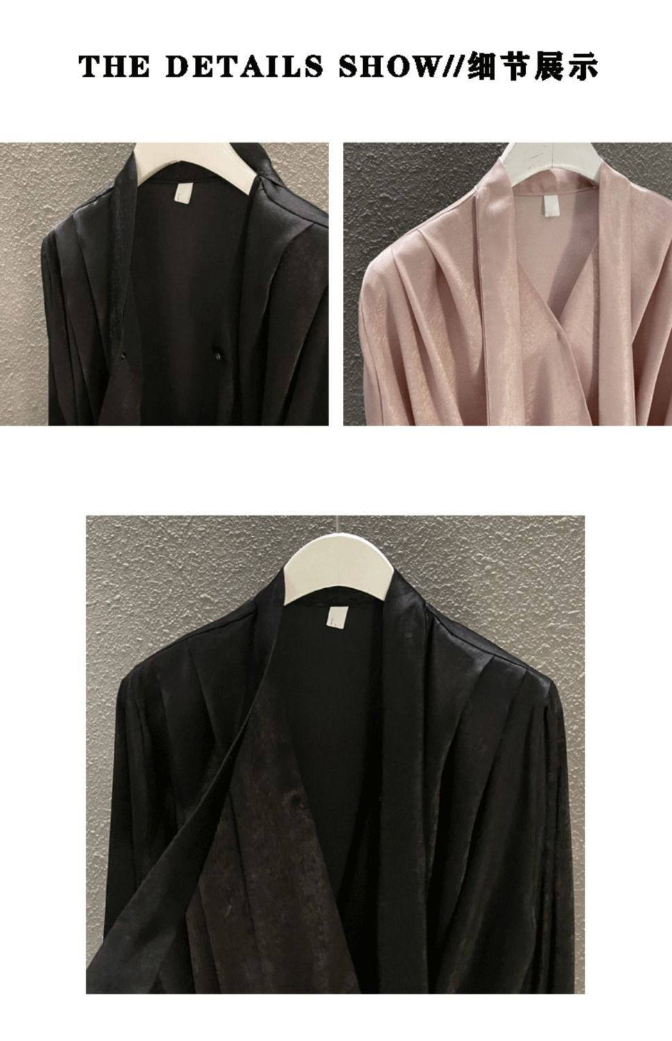 雪紡緞面系帶掛脖V領襯衫女春秋季新款高級感輕熟風小衫長袖上衣