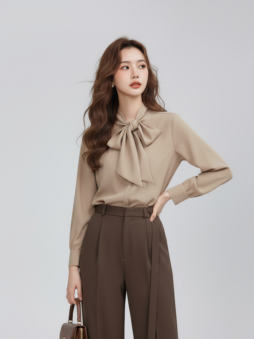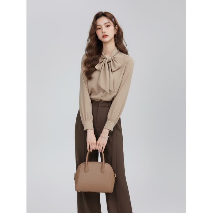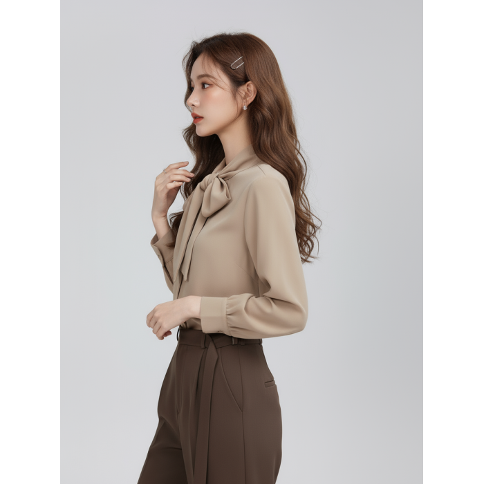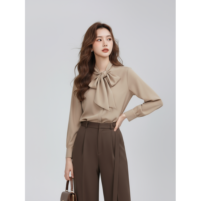 秋冬新款復古浪漫蝴蝶結襯衫女中淑韓版優雅氣質長袖輕熟雪紡上衣