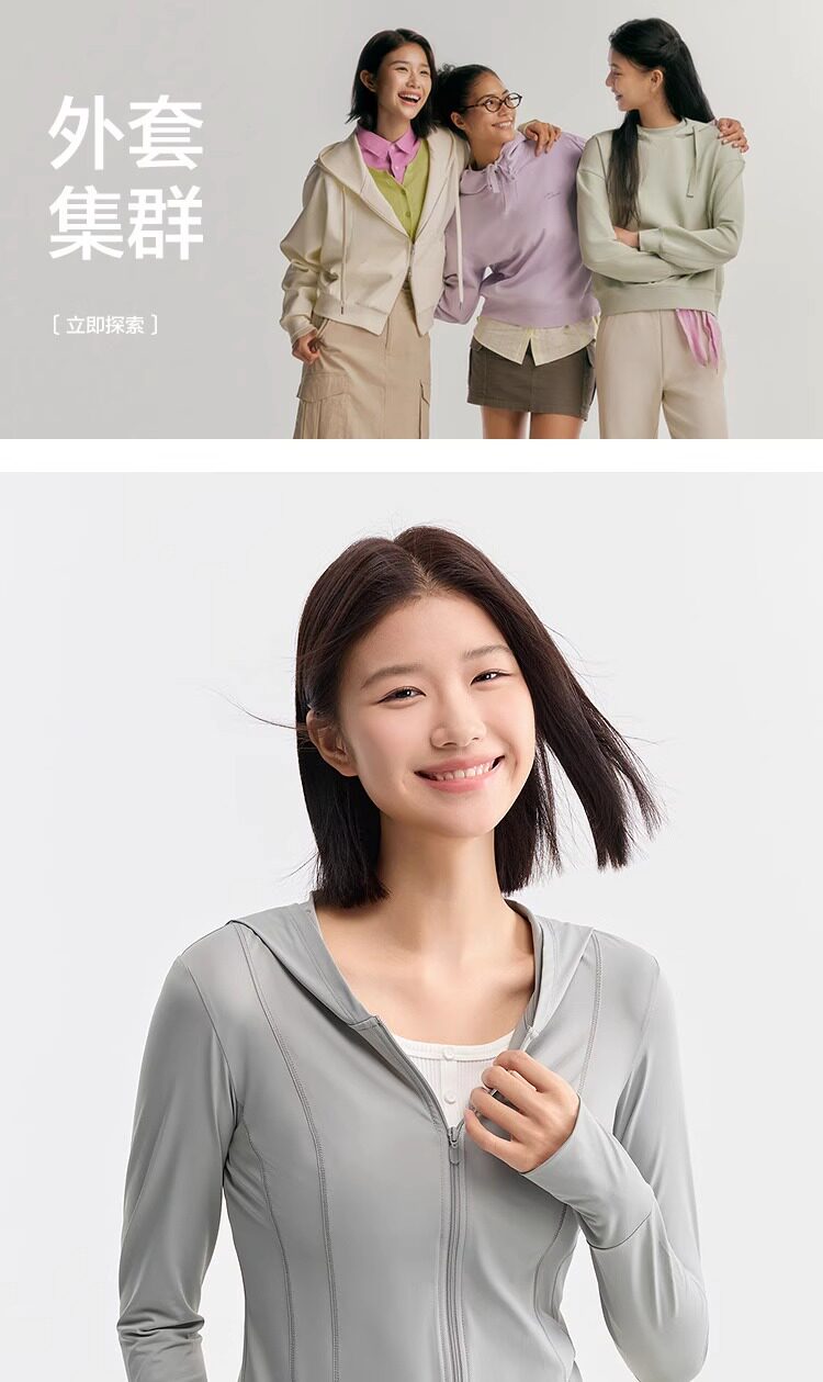商場同款森馬外套女短款連帽修身小個子衣服夏季魚骨防曬涼感夾克