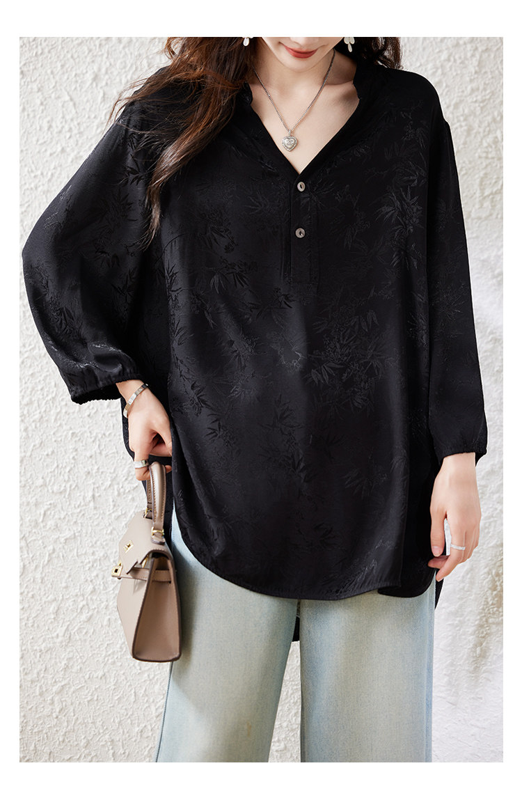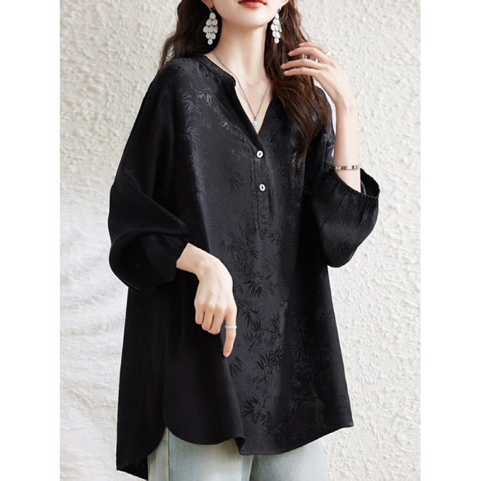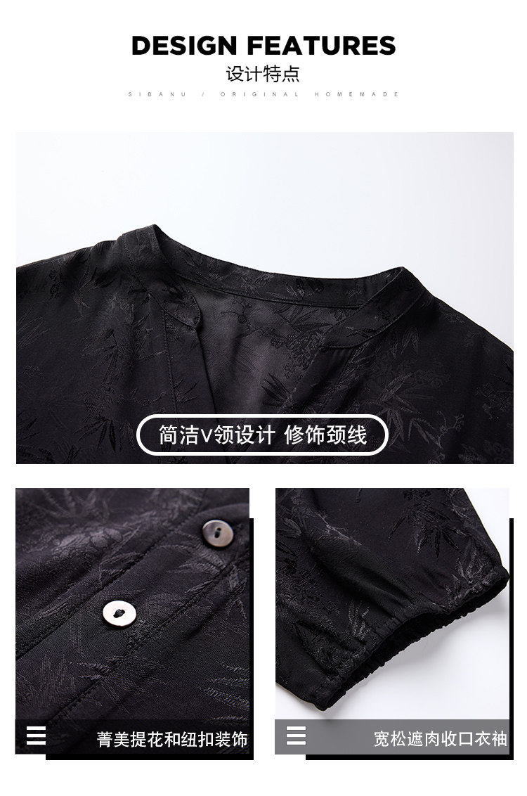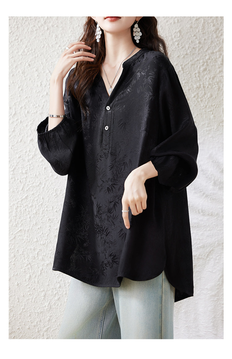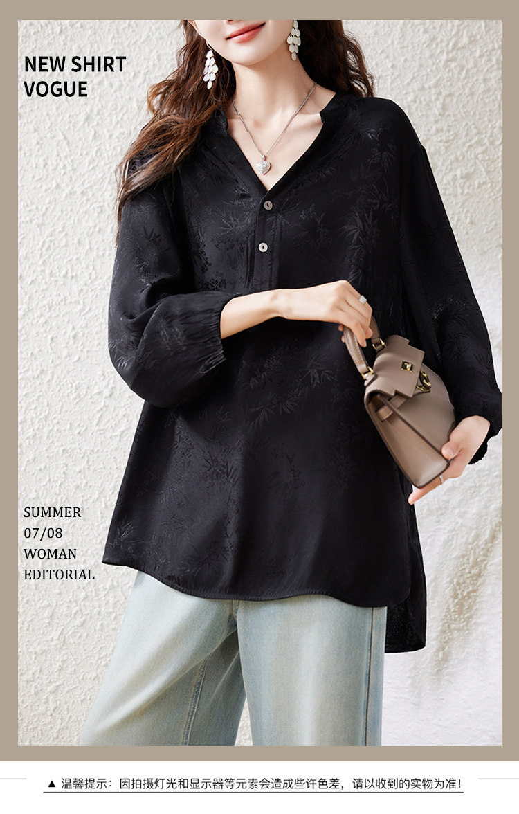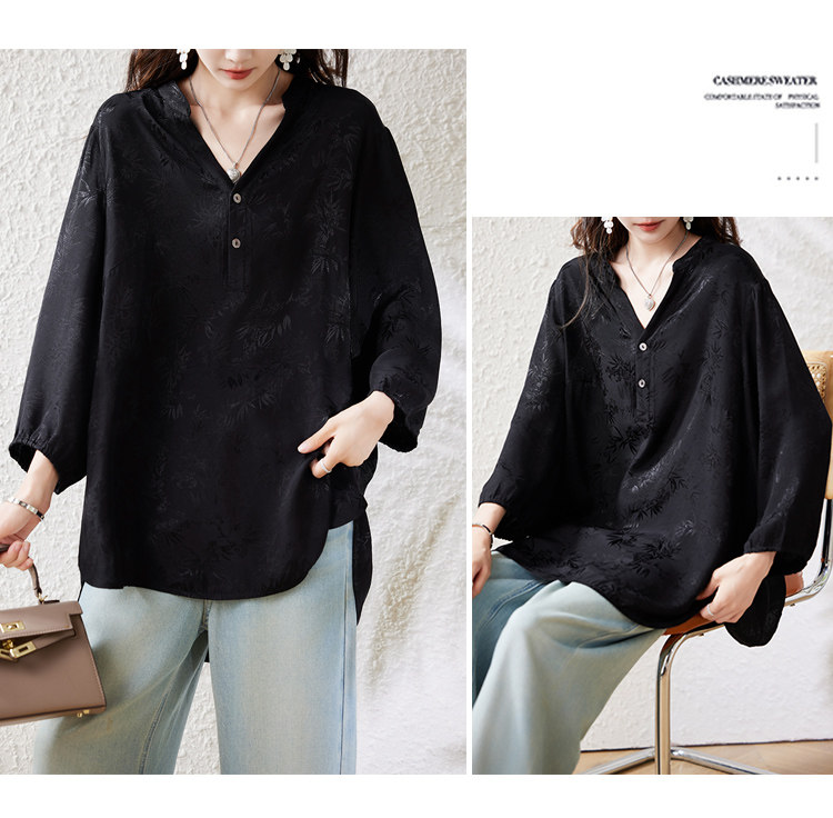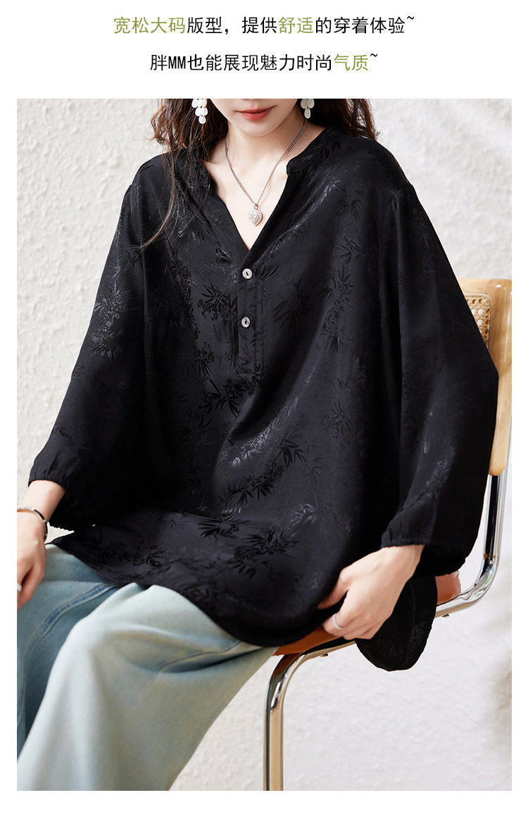 九月墨陌新中式國風襯衫女2025春季新款大碼寬鬆遮肚氣質V領上衣