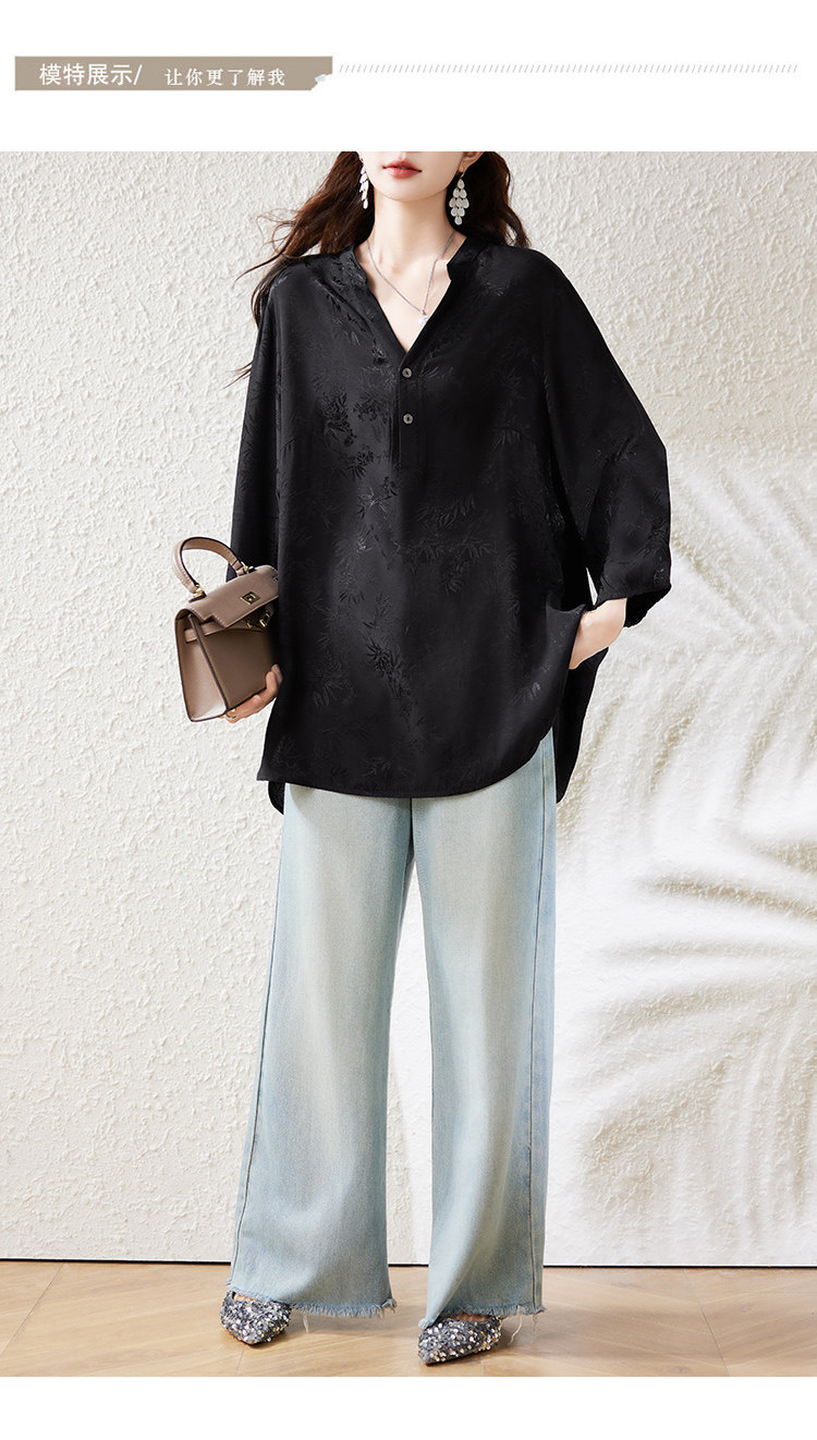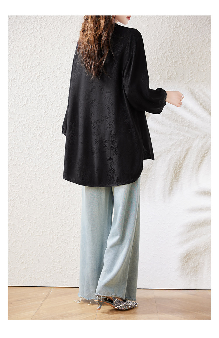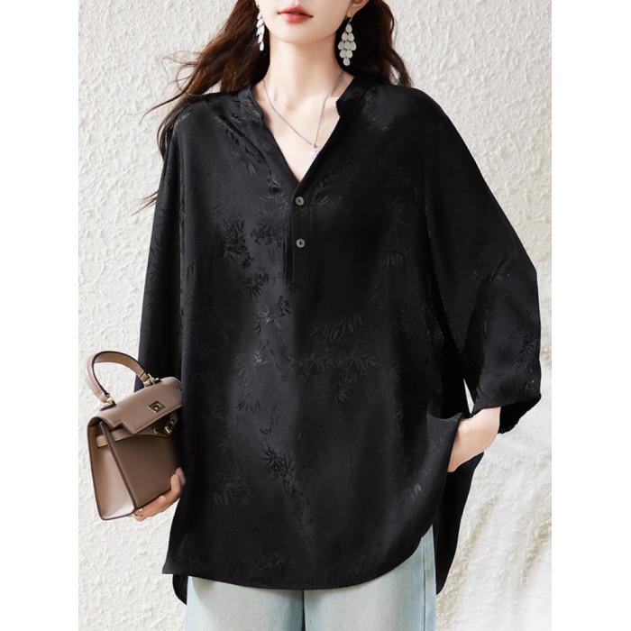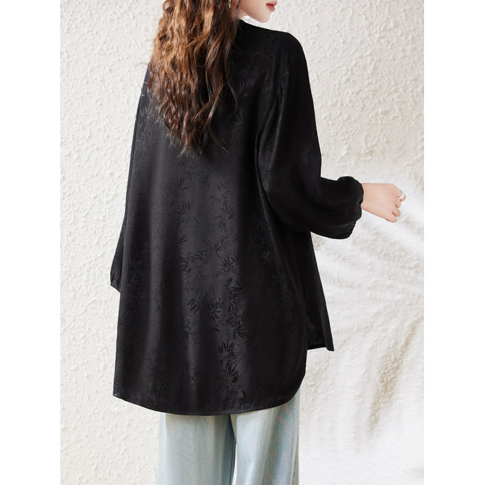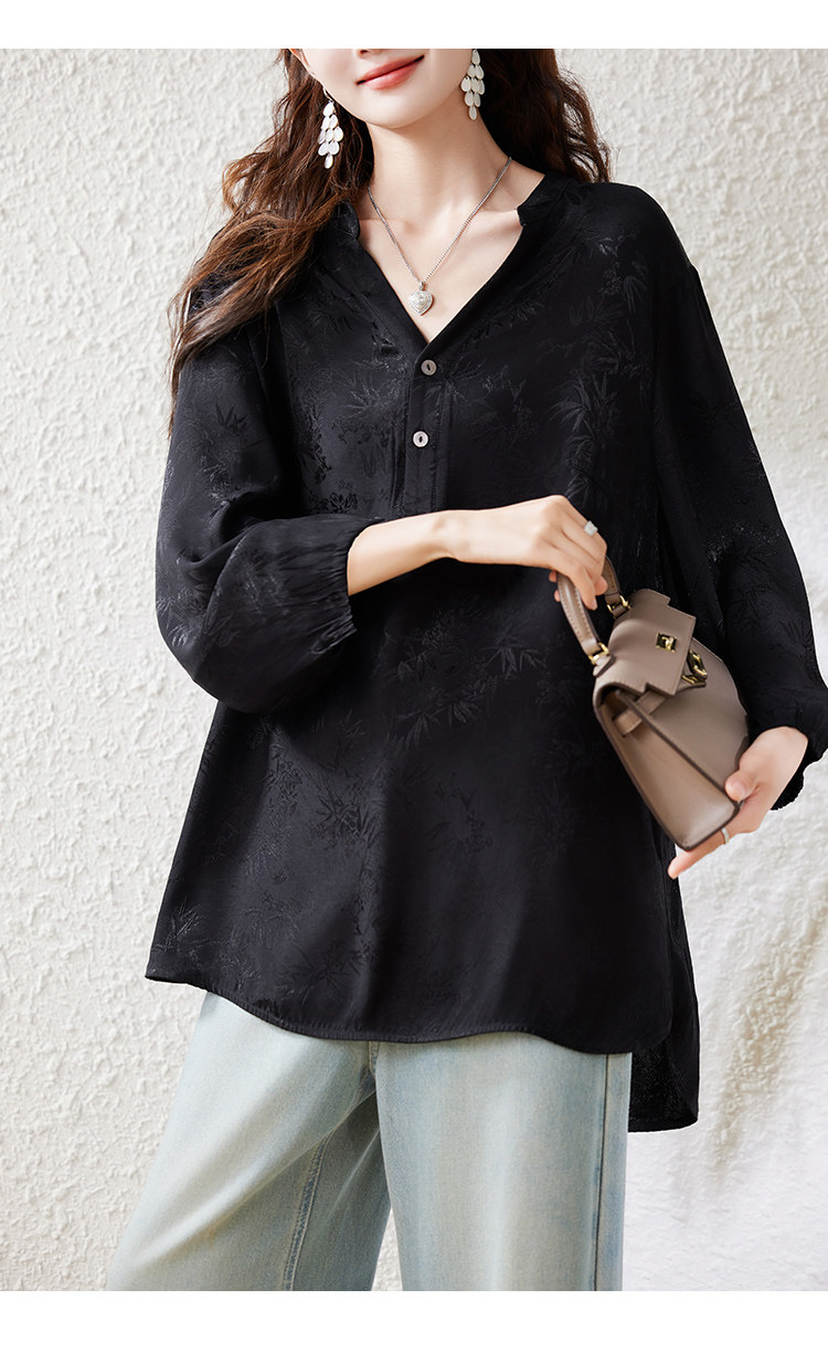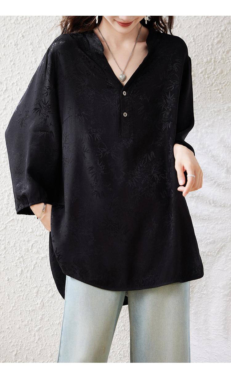 九月墨陌新中式國風襯衫女2025春季新款大碼寬鬆遮肚氣質V領上衣