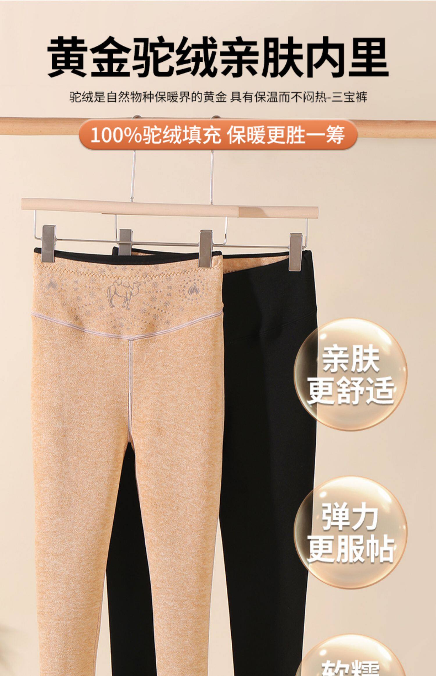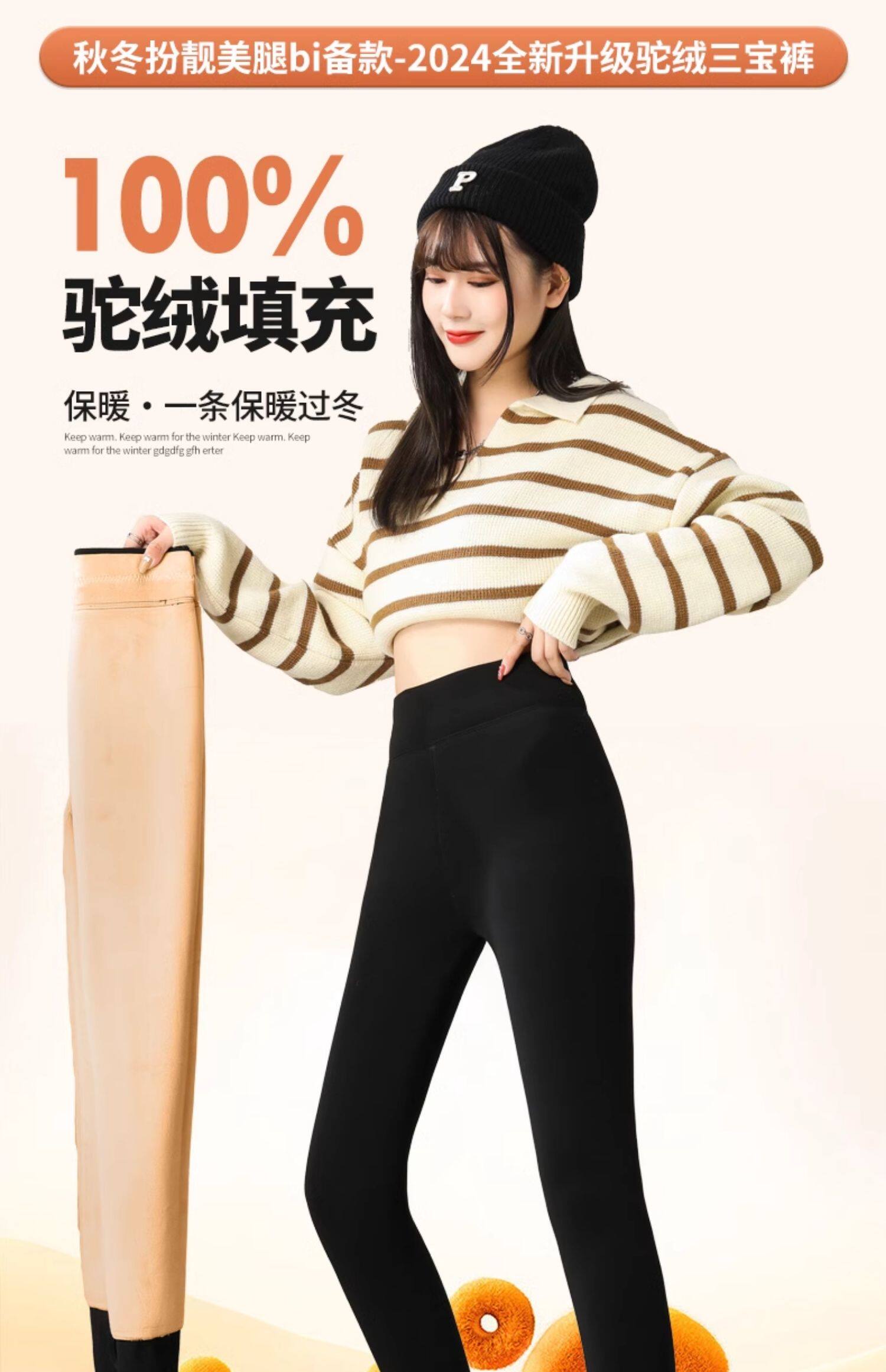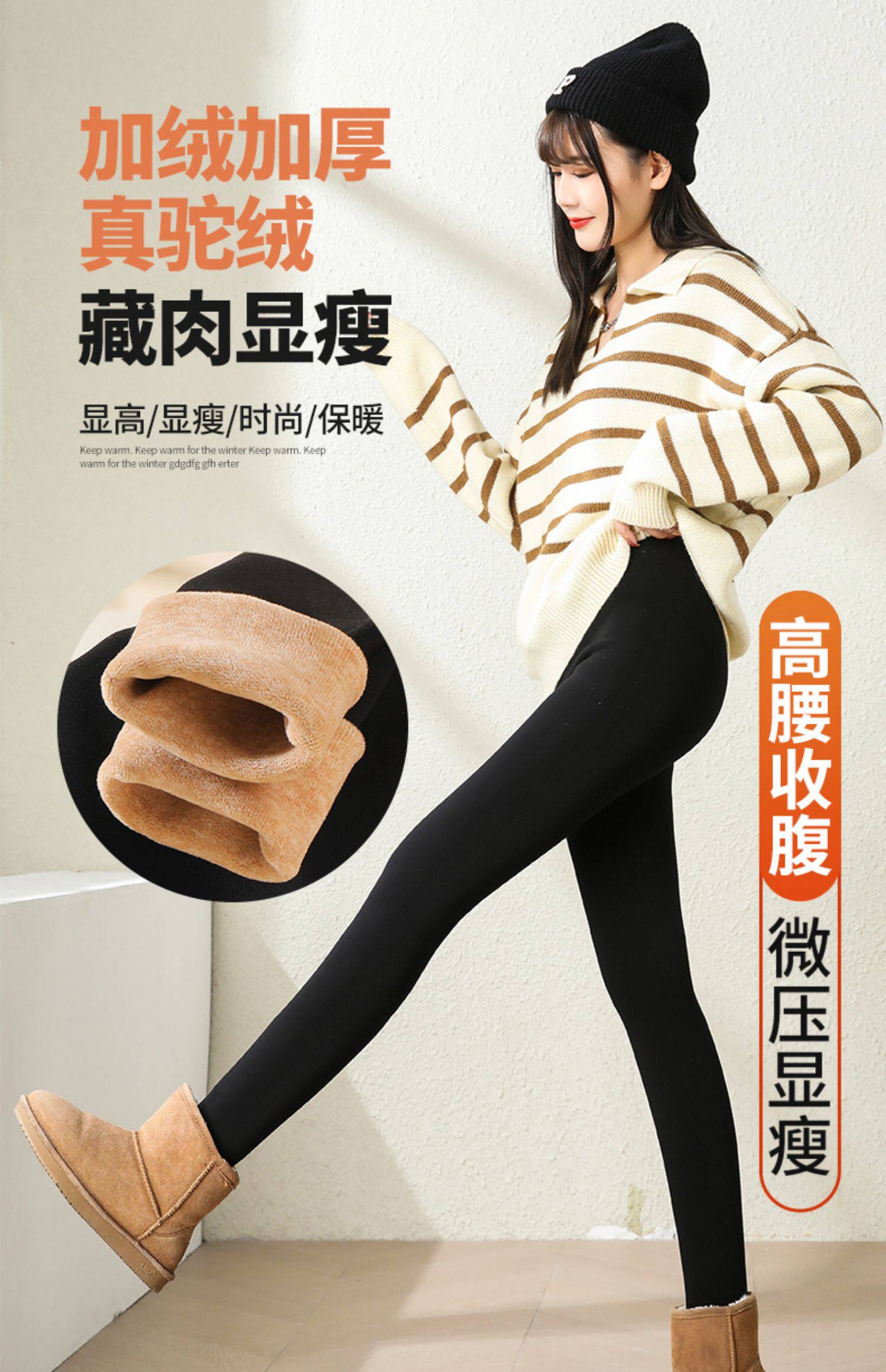 駝絨打底褲女秋冬加絨加厚高腰外穿彈力瘦腿踩腳一體褲棉抗寒保暖