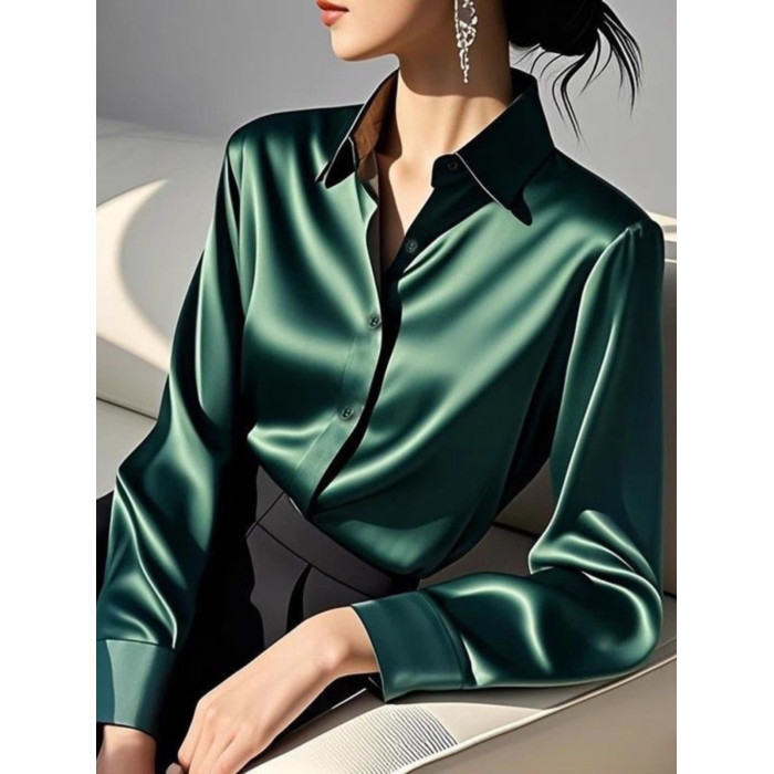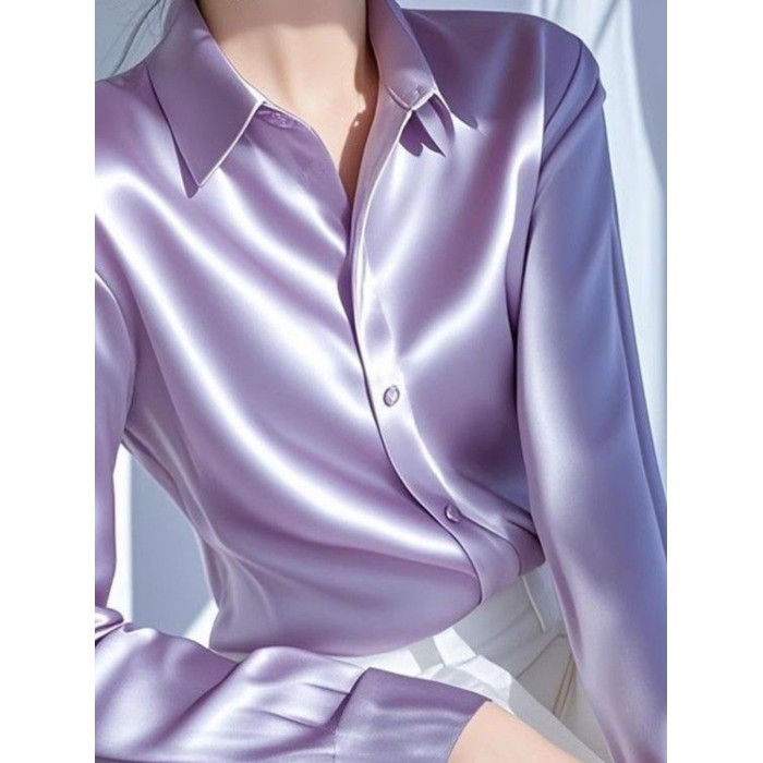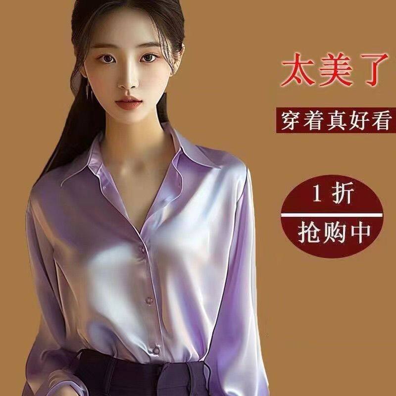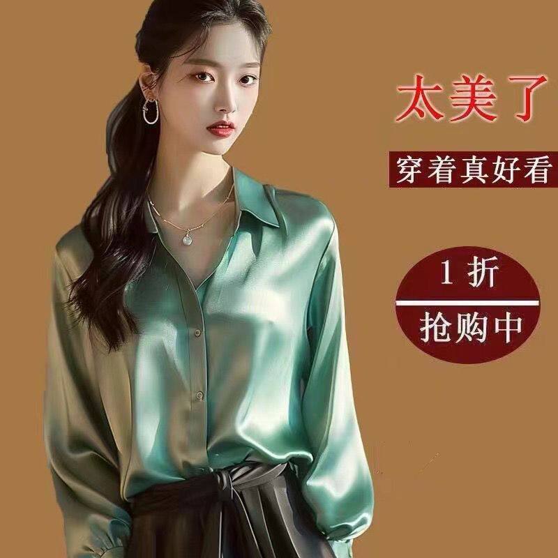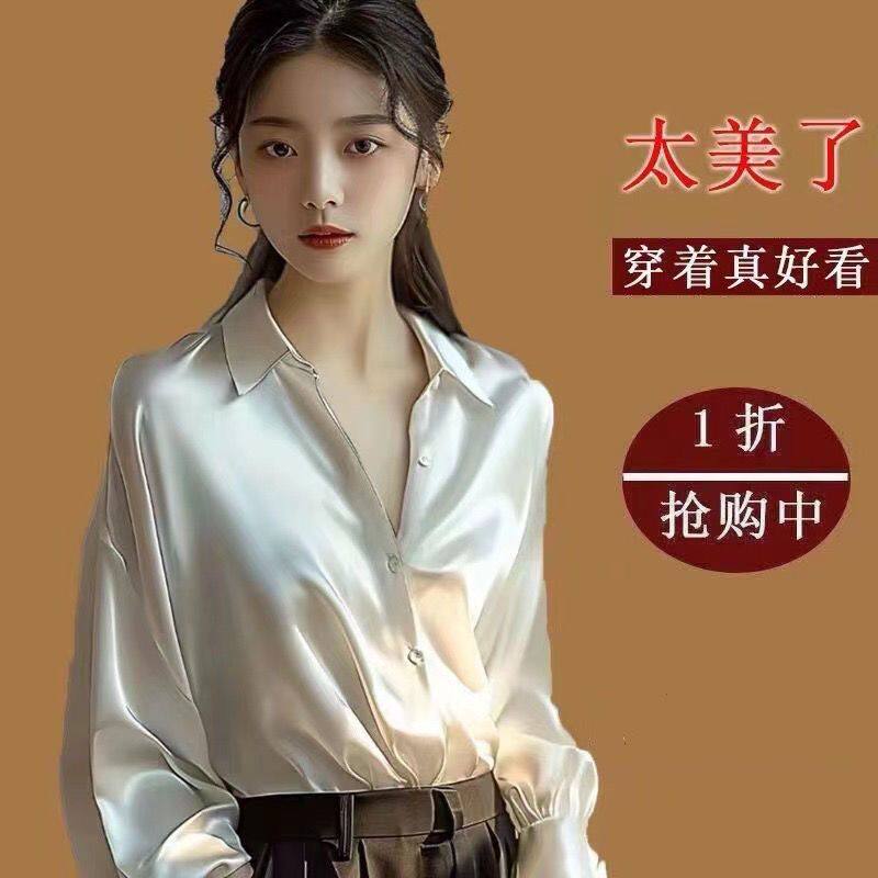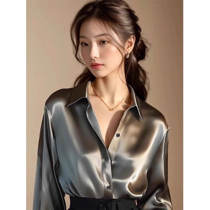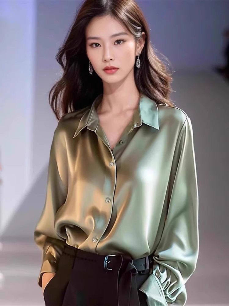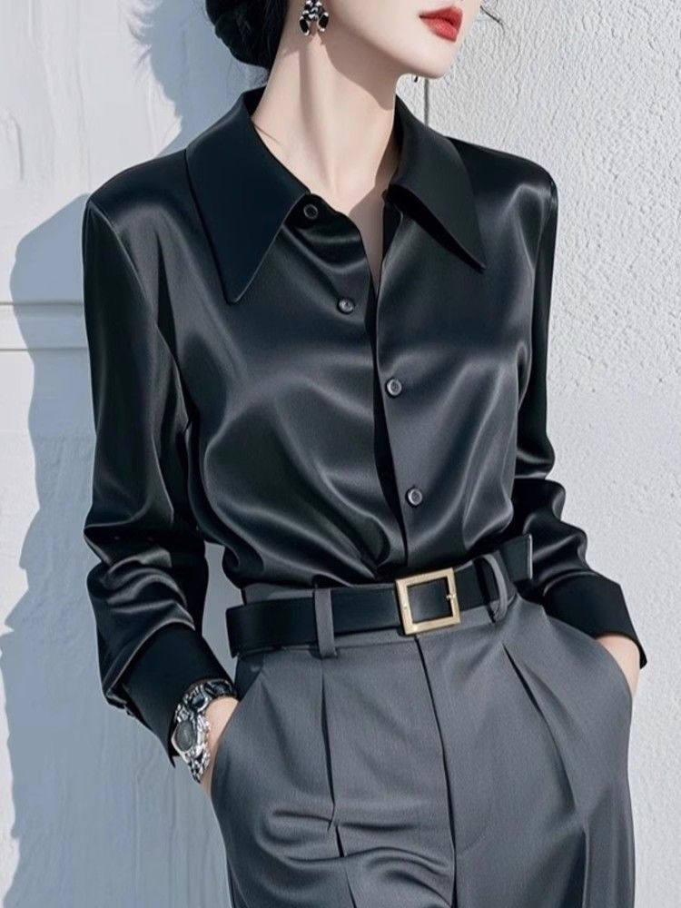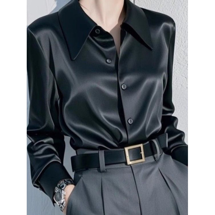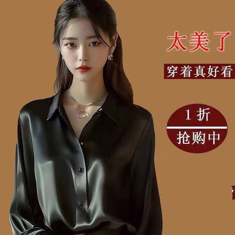 高級感氣質繙領襯衫女長袖2025早春新款緞面職業上衣百搭顯瘦襯衣