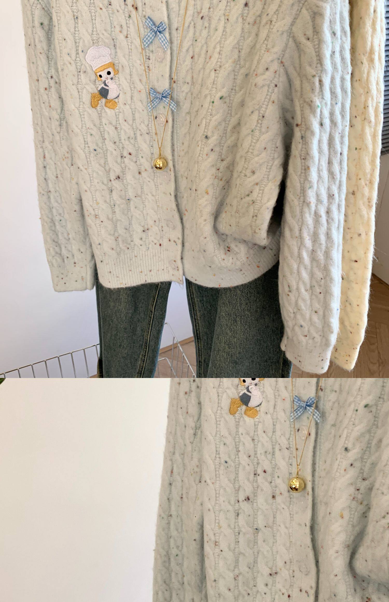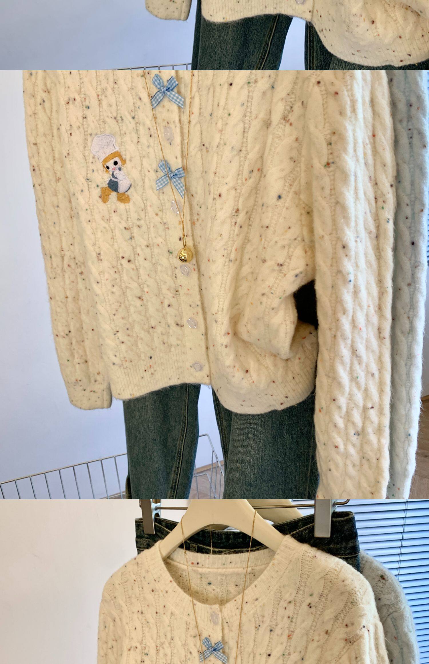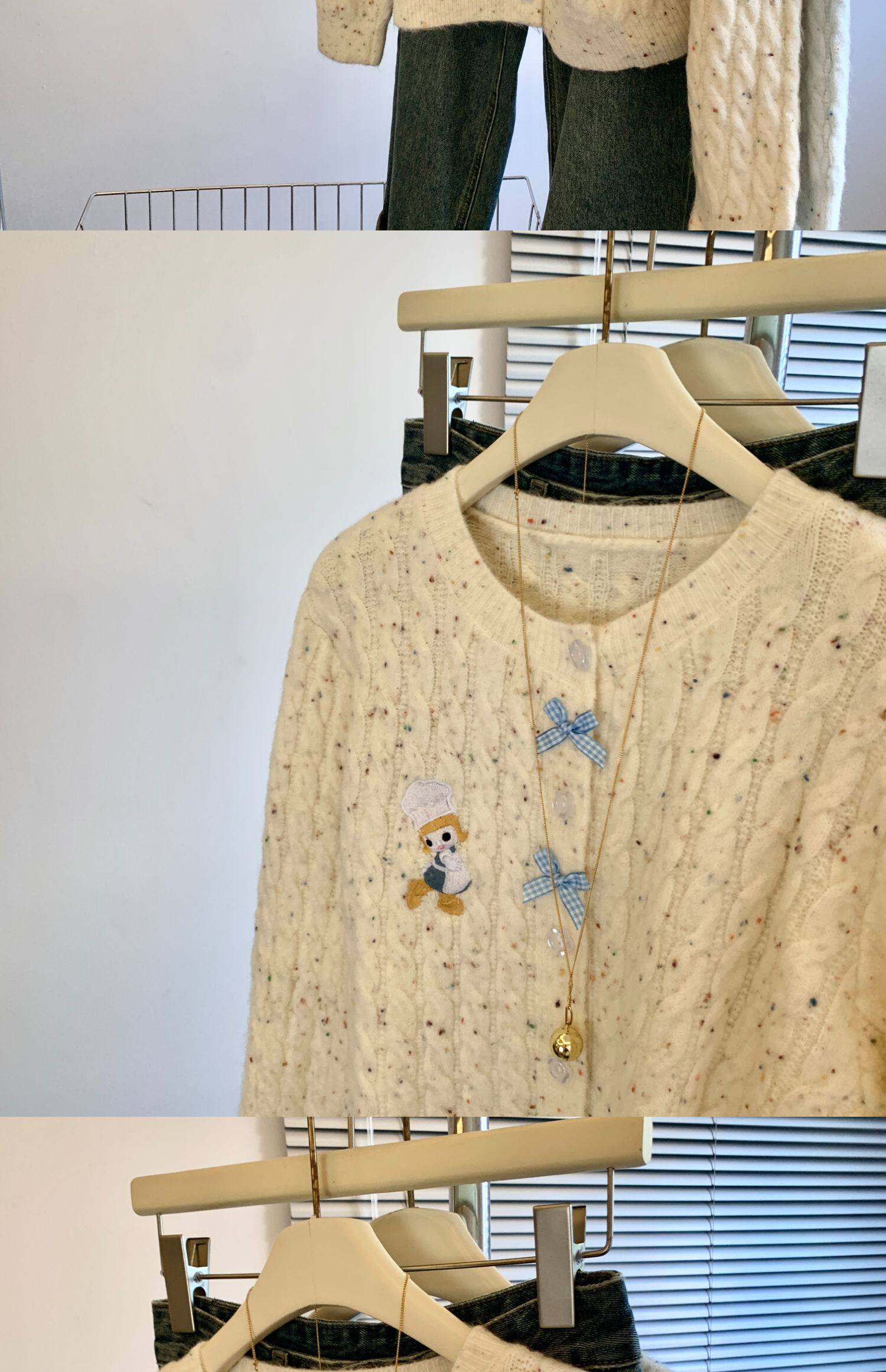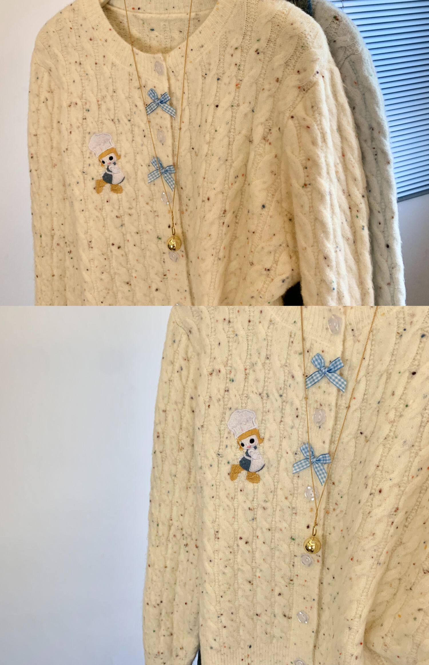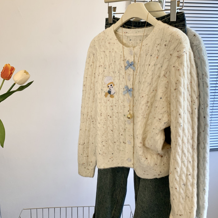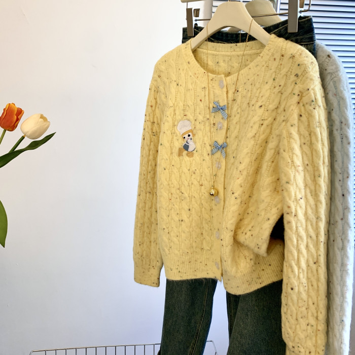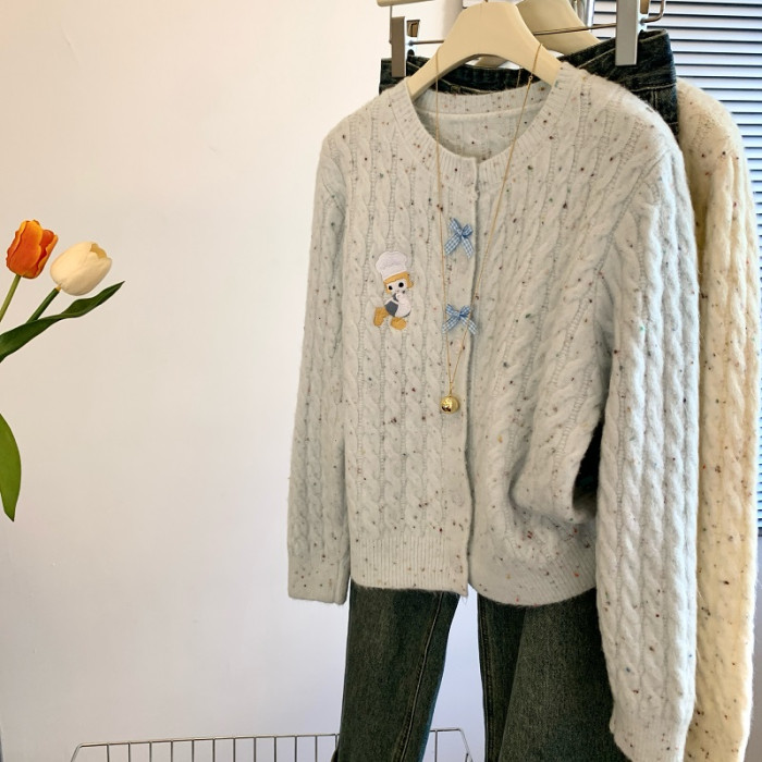 專櫃撤廻剪標韓系卡通刺綉毛衣開衫女秋冬新款奶fufu軟糯針織外套
