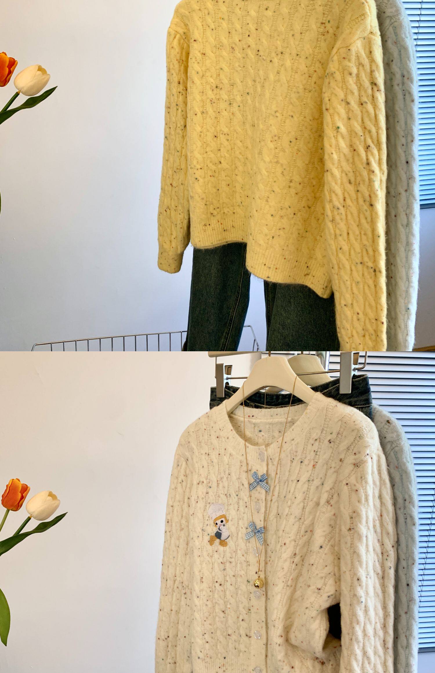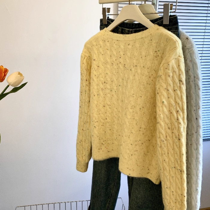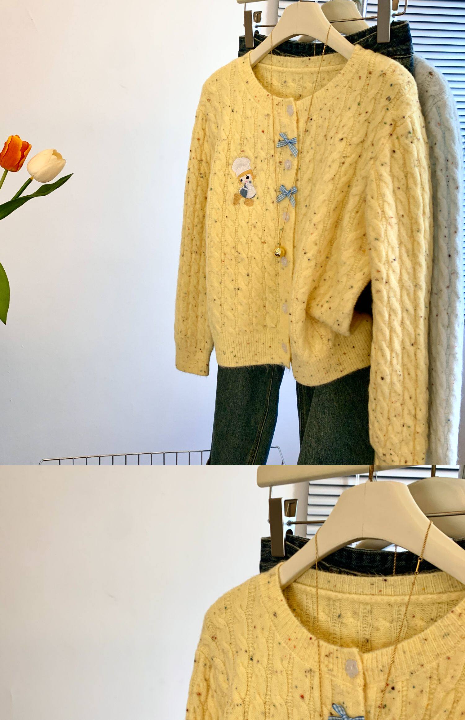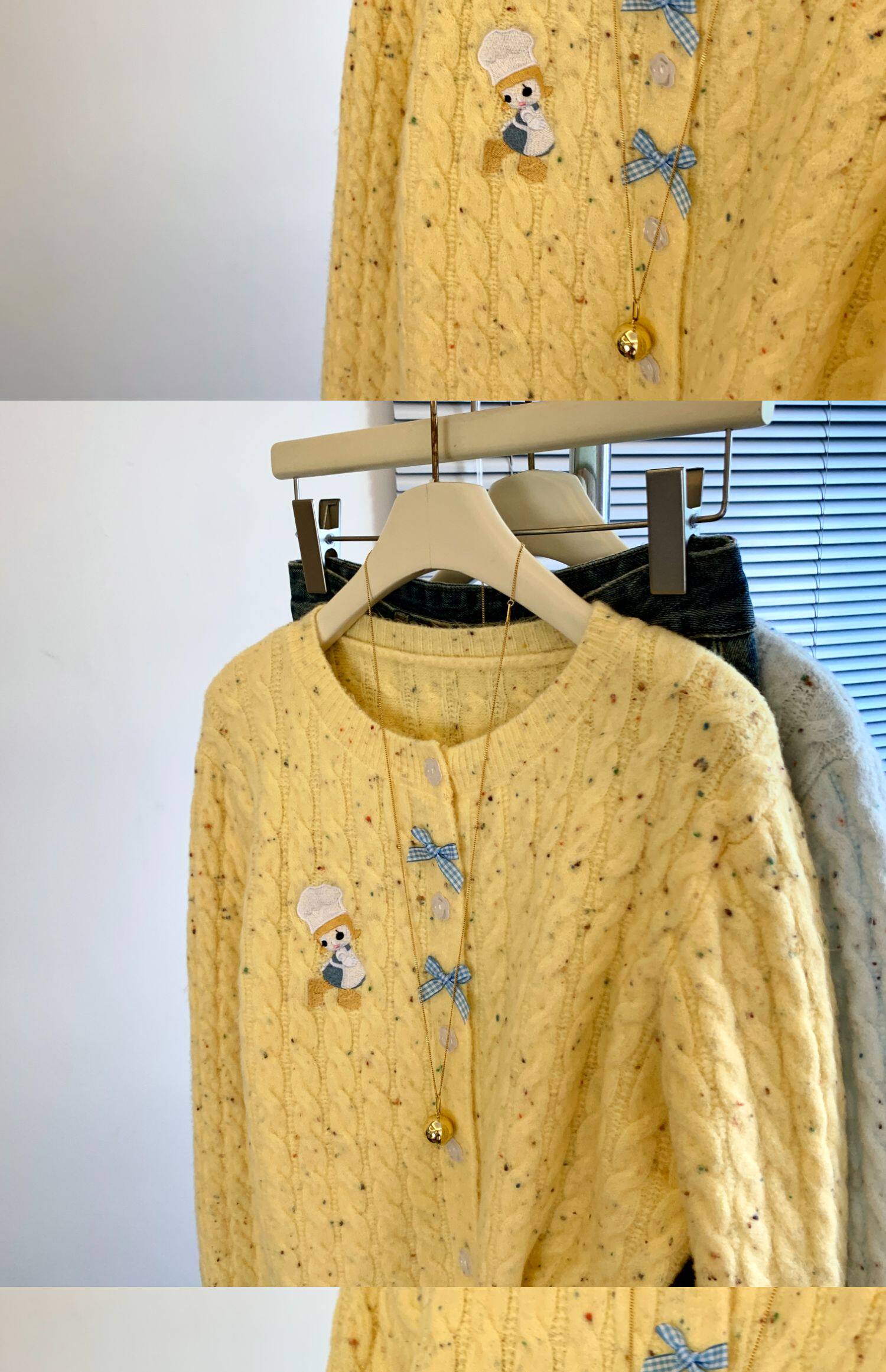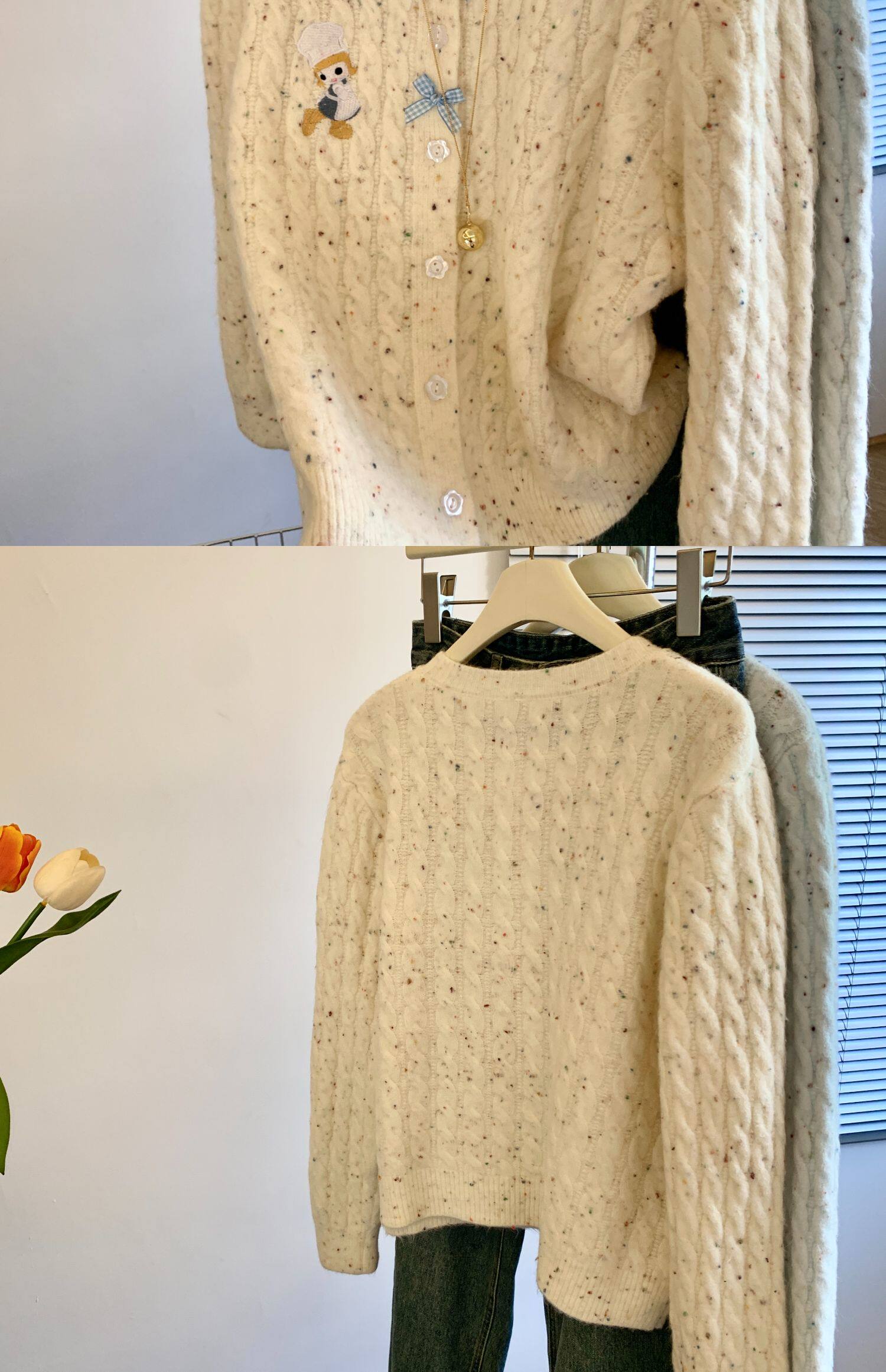 專櫃撤廻剪標韓系卡通刺綉毛衣開衫女秋冬新款奶fufu軟糯針織外套